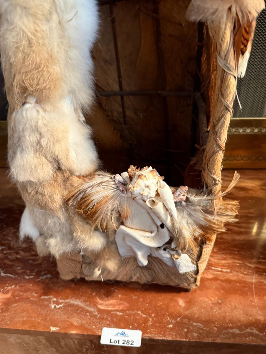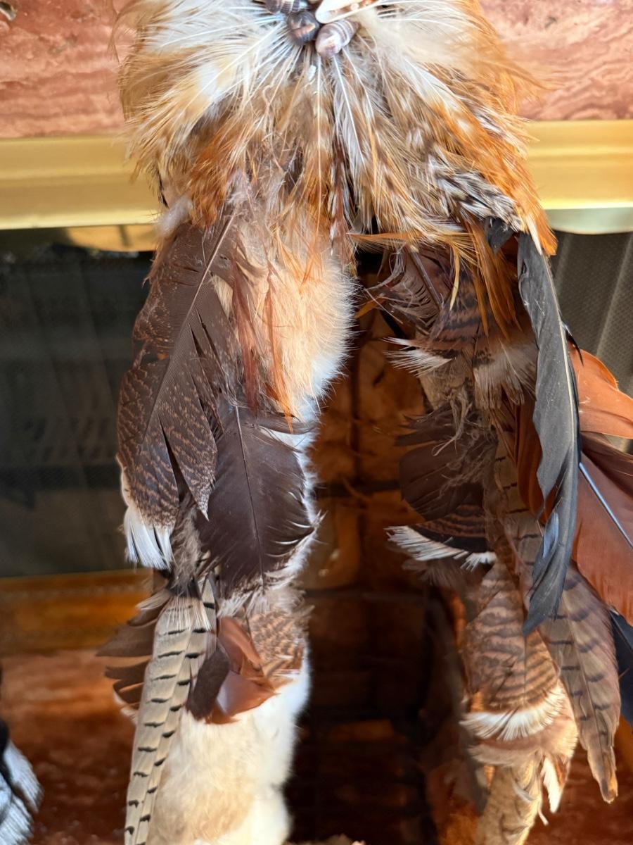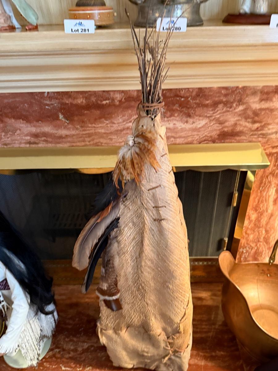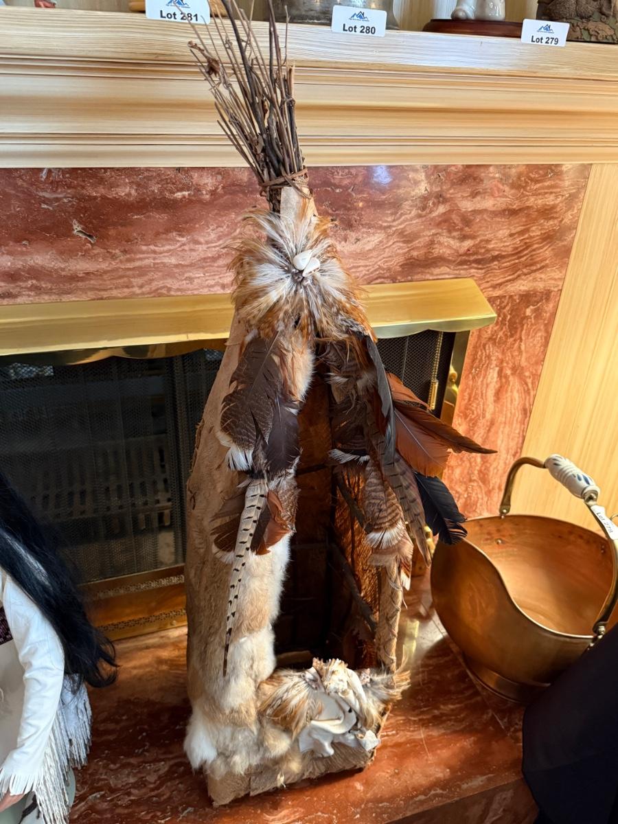 Native American hand made 44”t feather/shell TeePee