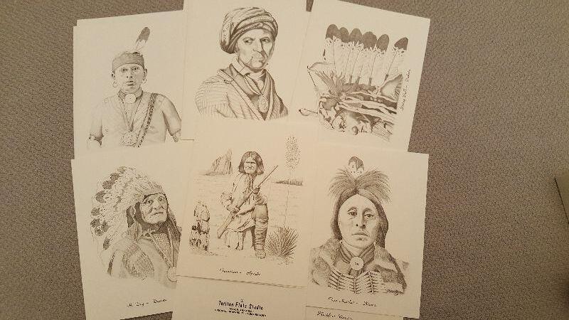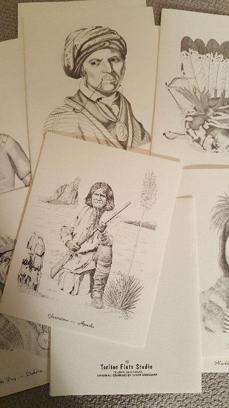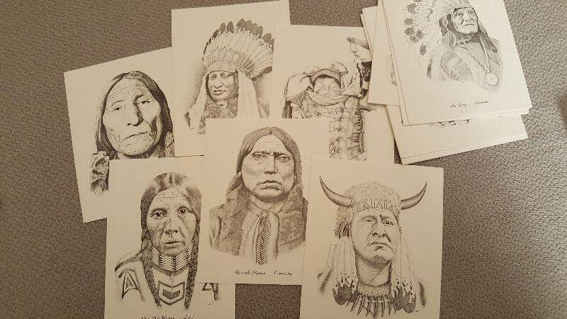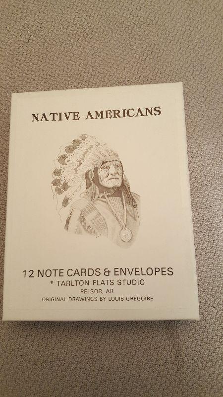 This lot is for a box of new Native American Note Cards and Envelopes. Ready for your quick thank you or how-you-beens. See photos for sketch designs. Donated by Kay Whitlock.
