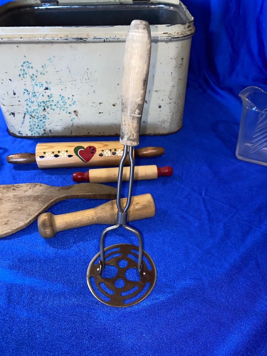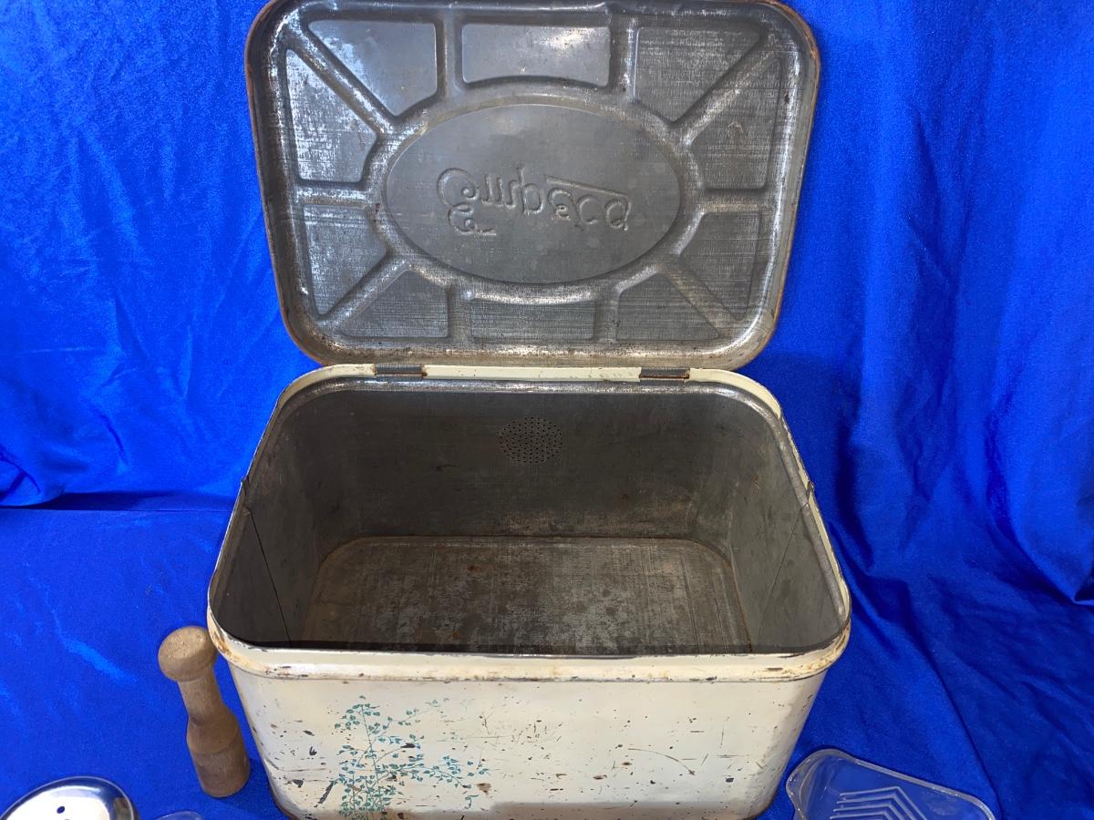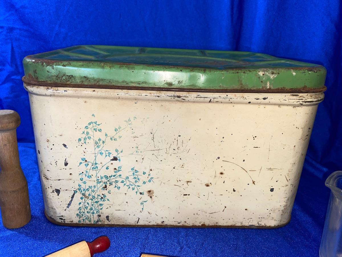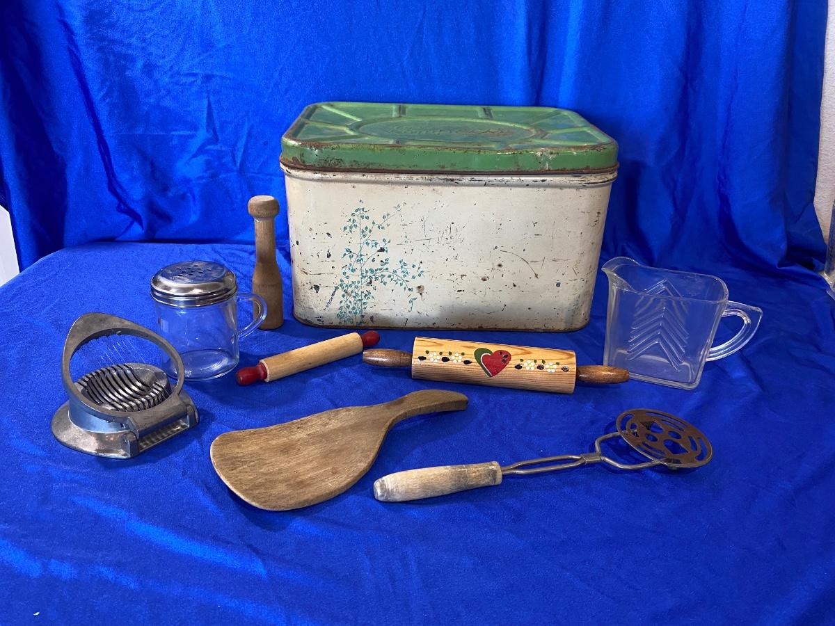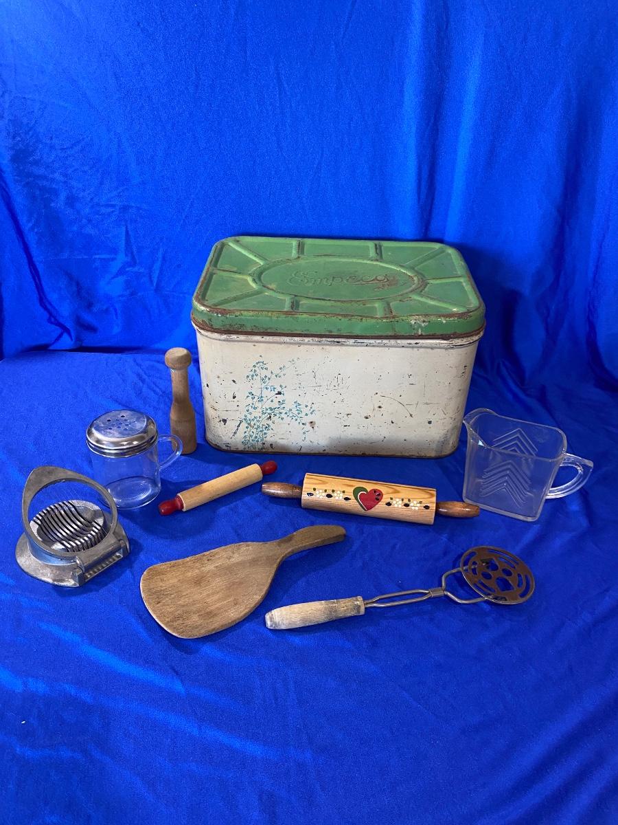 RETRO TIN BREAD BOX AND OTHER KITCHEN ITEMS