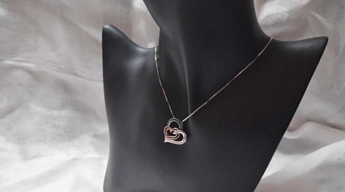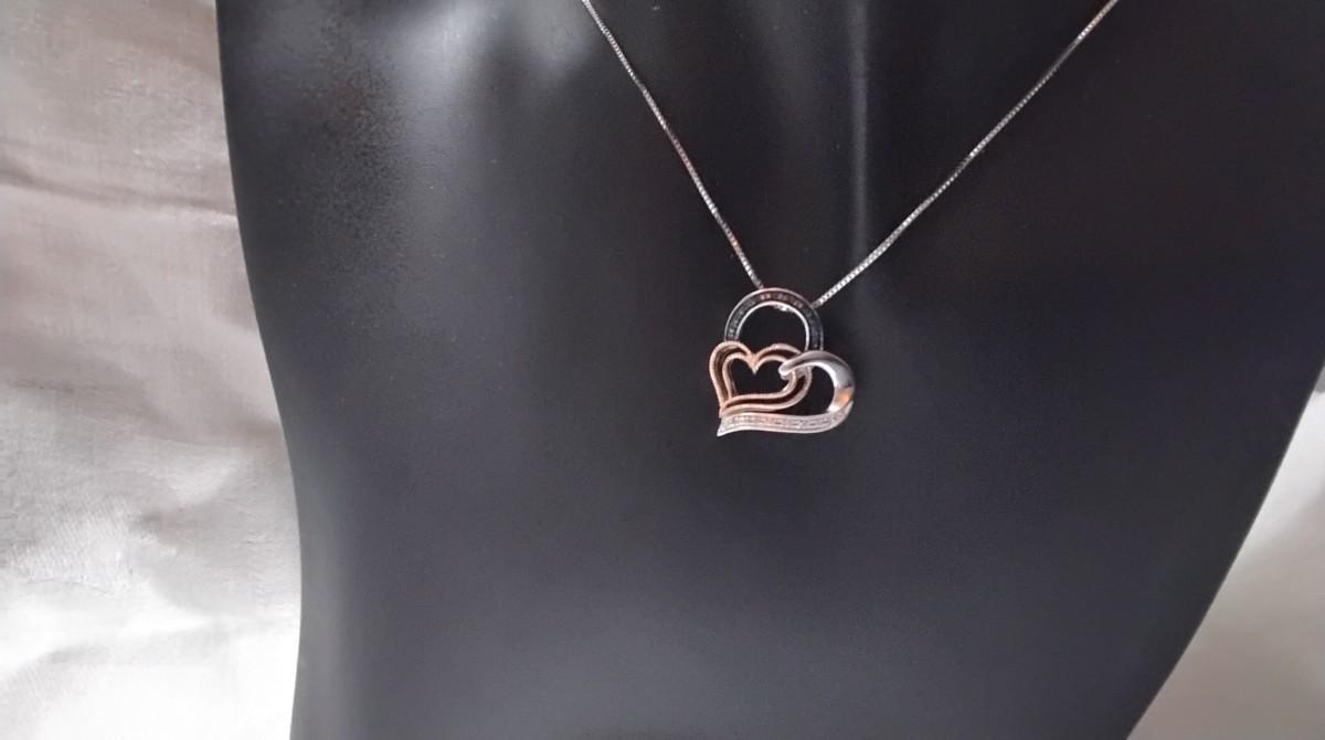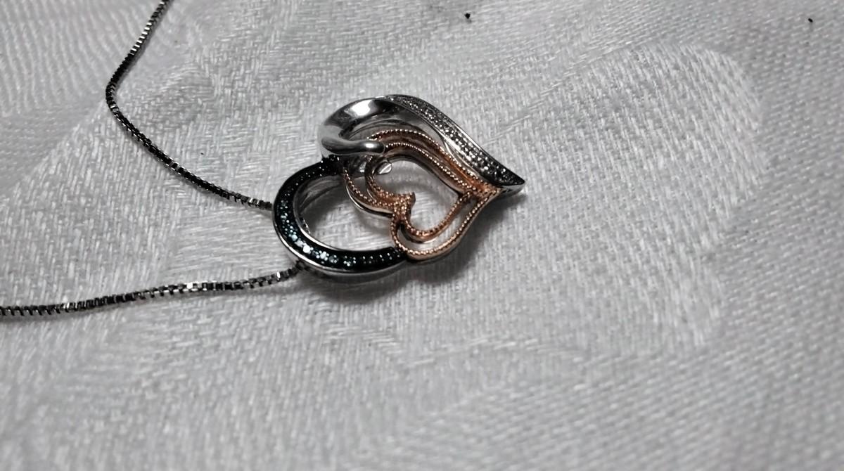 Gorgeous Blue And White Diamond 10kt Rose Gold and 925 18" Necklace