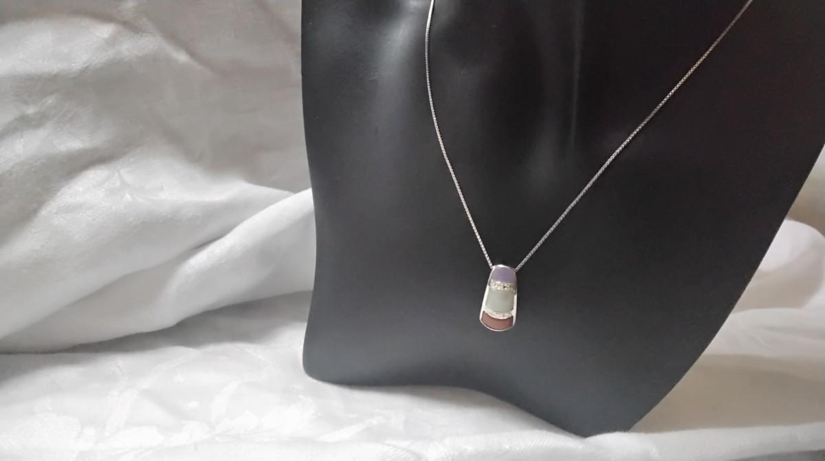 Beautiful Red, Lavender and Green Jade separated by beautiful diamonds