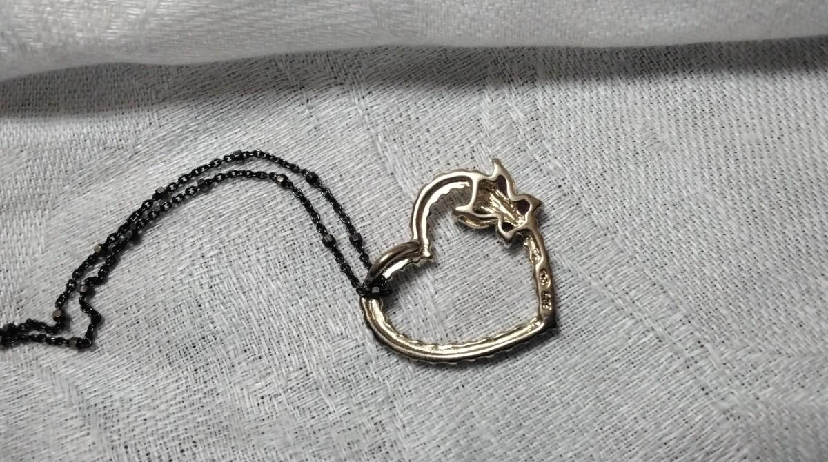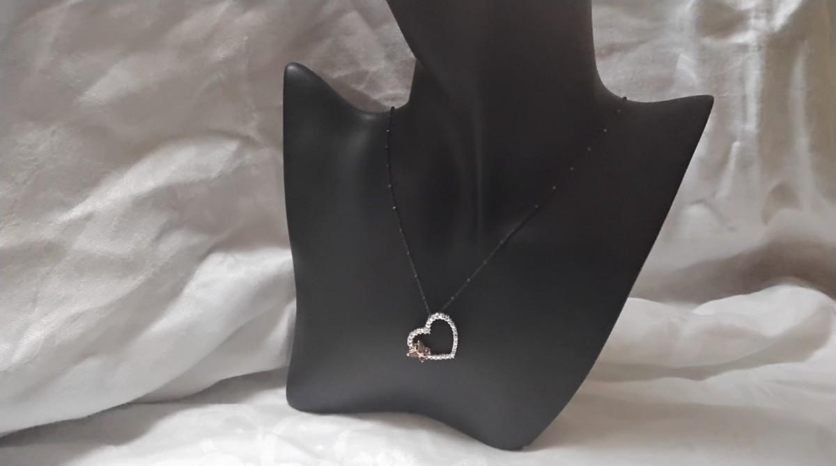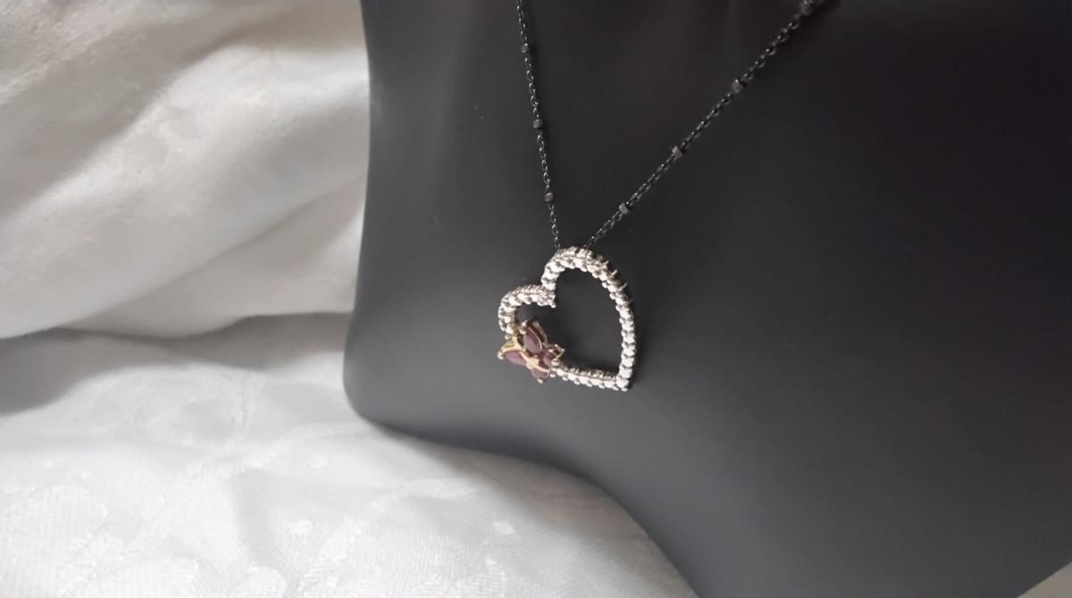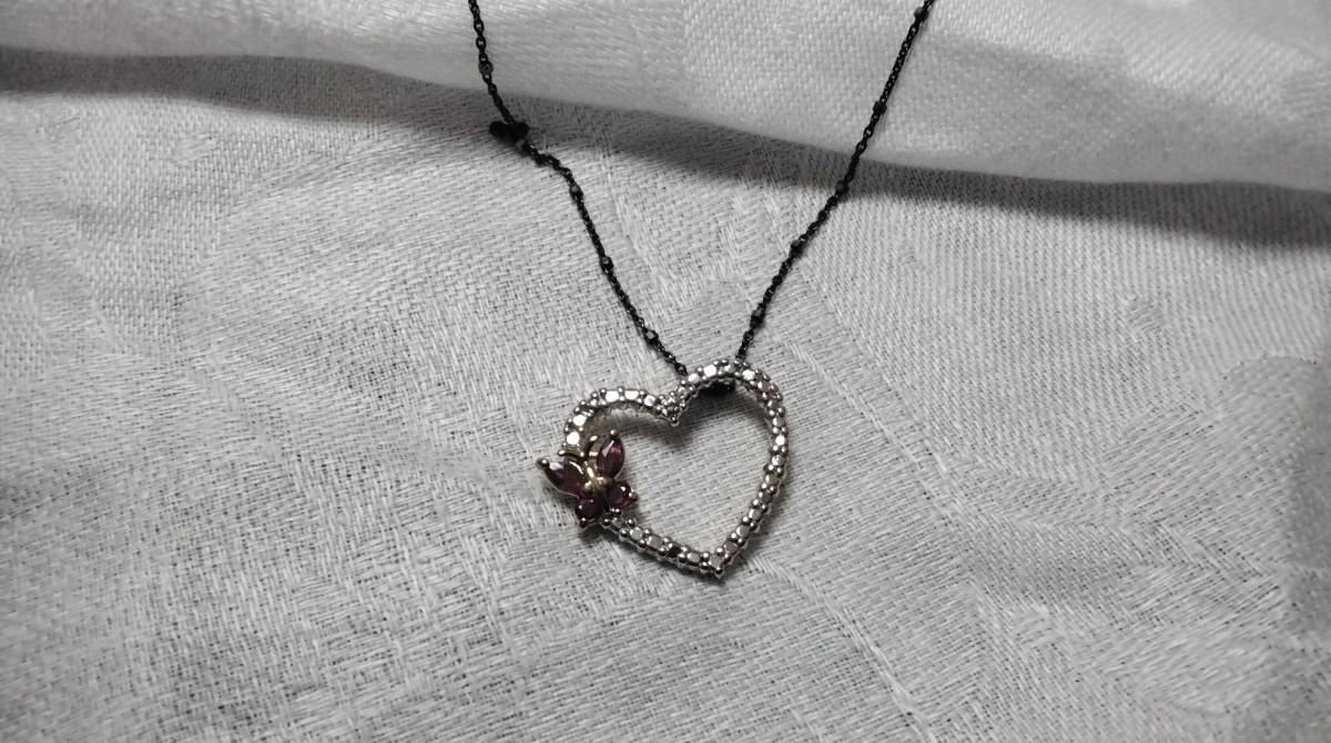 Gorgeous Ross Simons Ruby and Diamond Heart on Unique Black 925 Italian Necklace