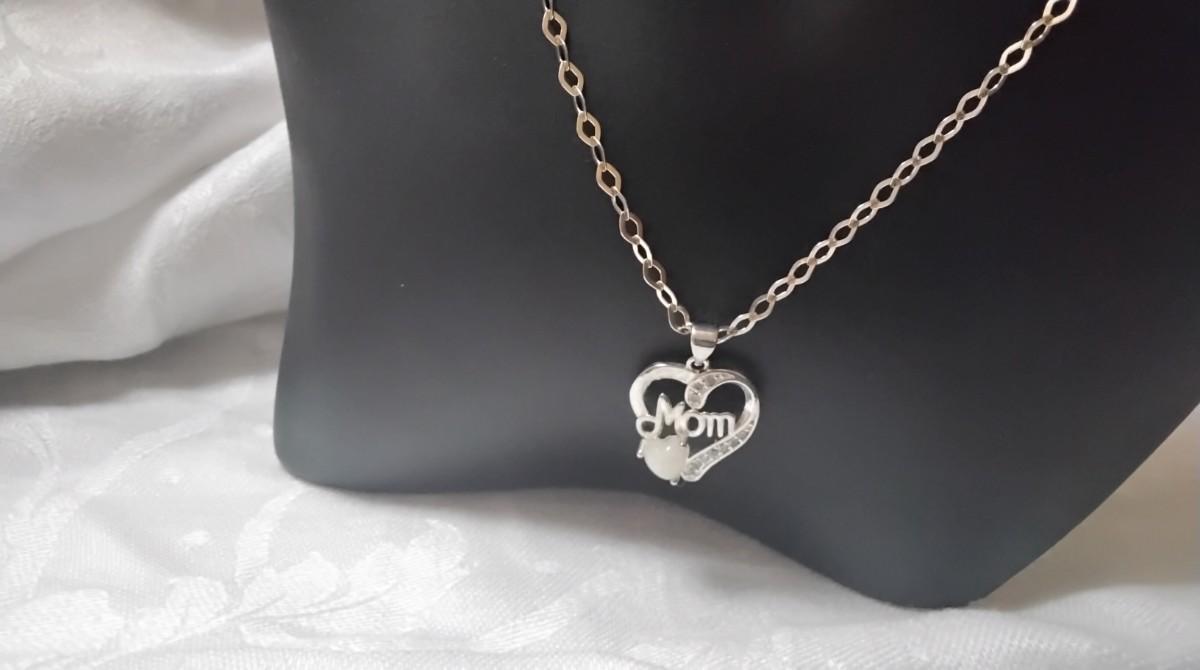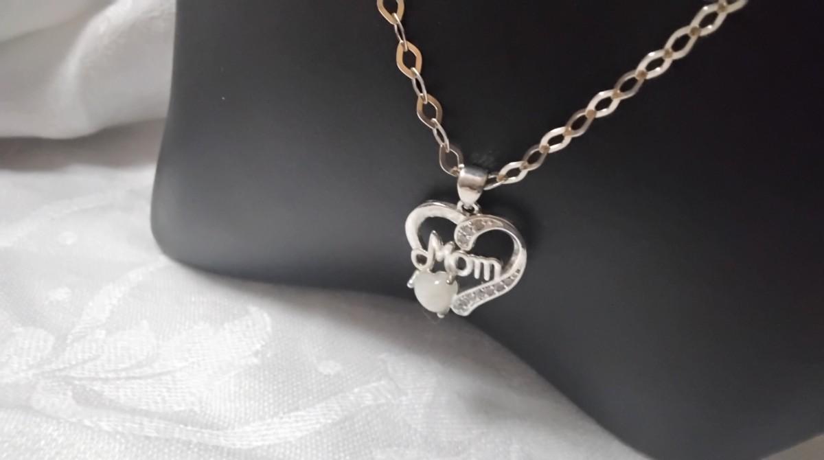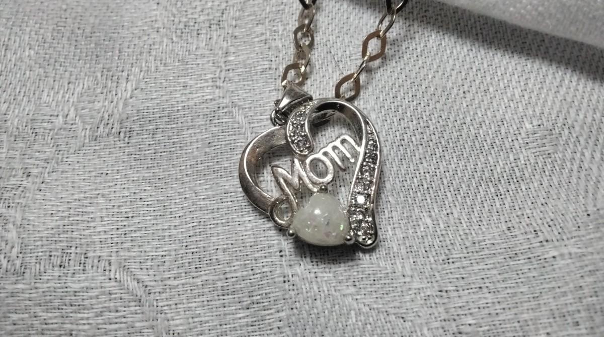 Unique Opal and Diamond Mom on 18" Italian 925 Necklace