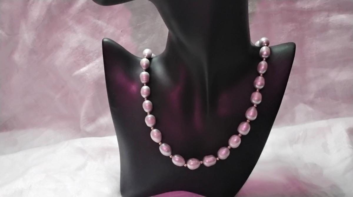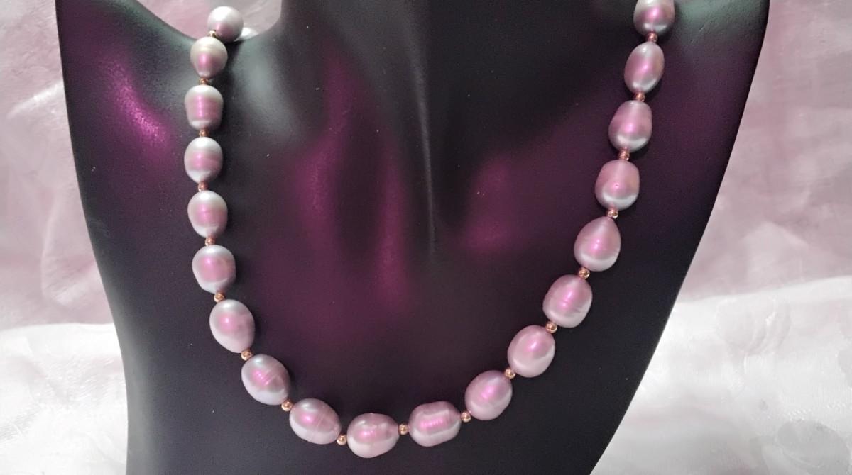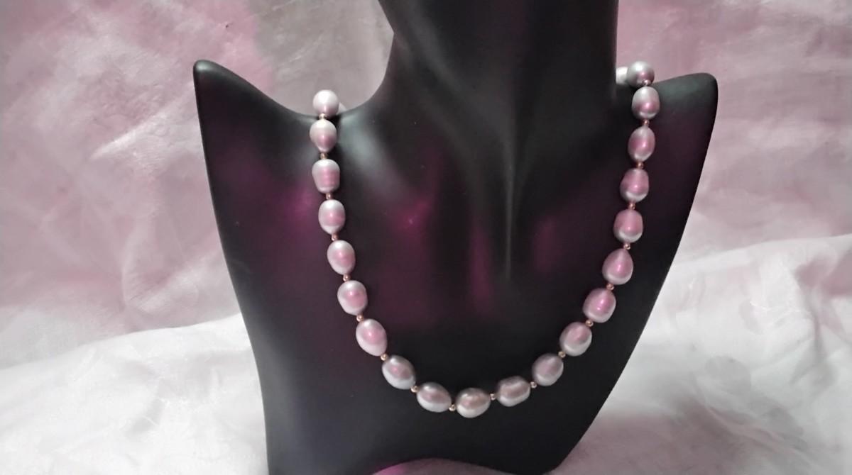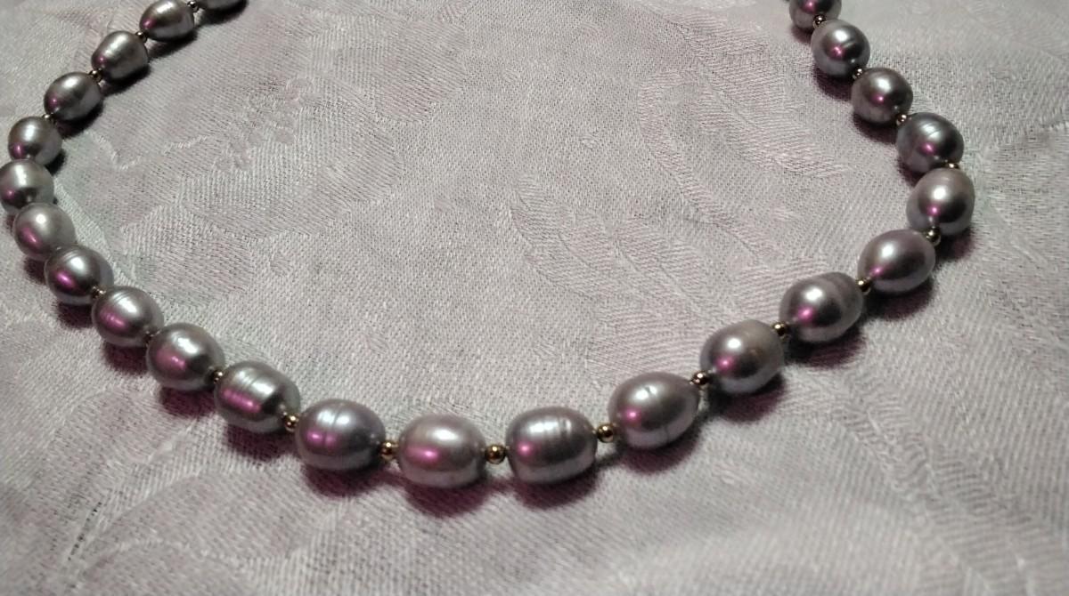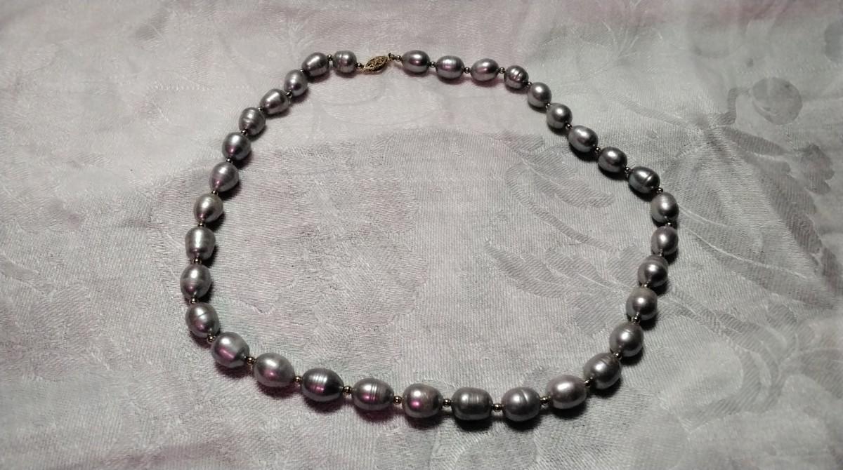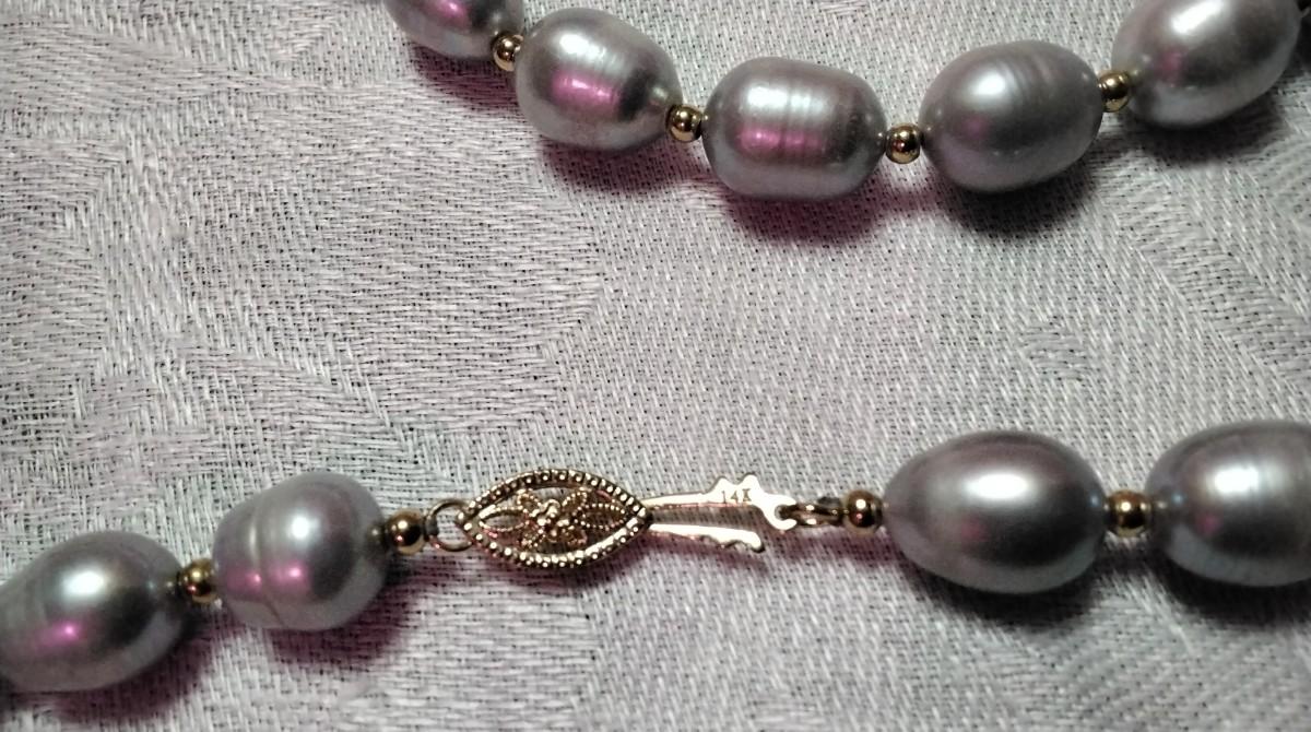 Stunning Silver Baroque Pearls 20" Necklace With 14K Beads and Clasp