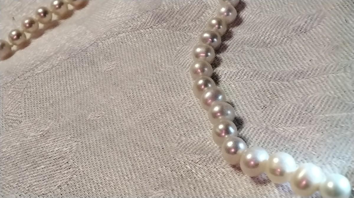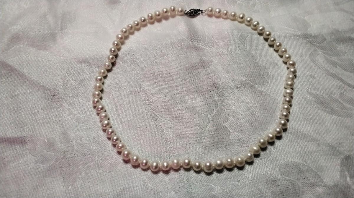 Very Nice Sheen White 7mm 16" Necklace With 16" Necklace 14 GF Clasp
