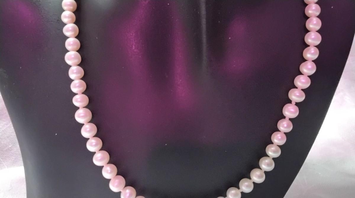Beautiful new necklace professionally knotted on double silk strands.