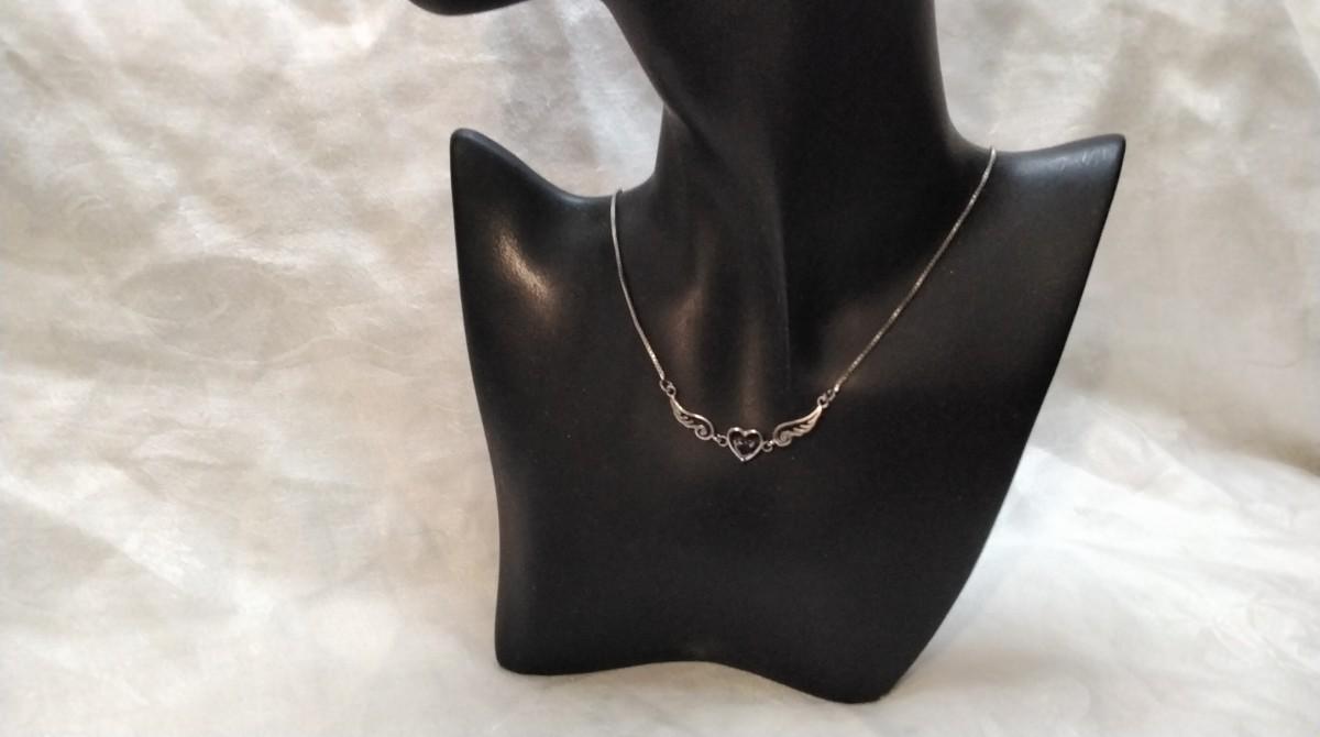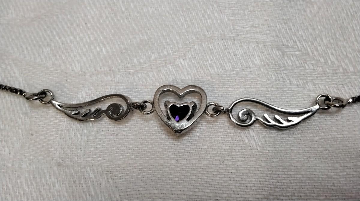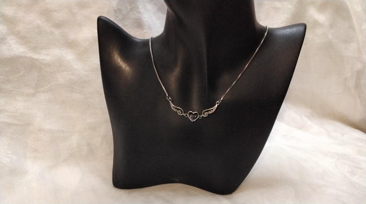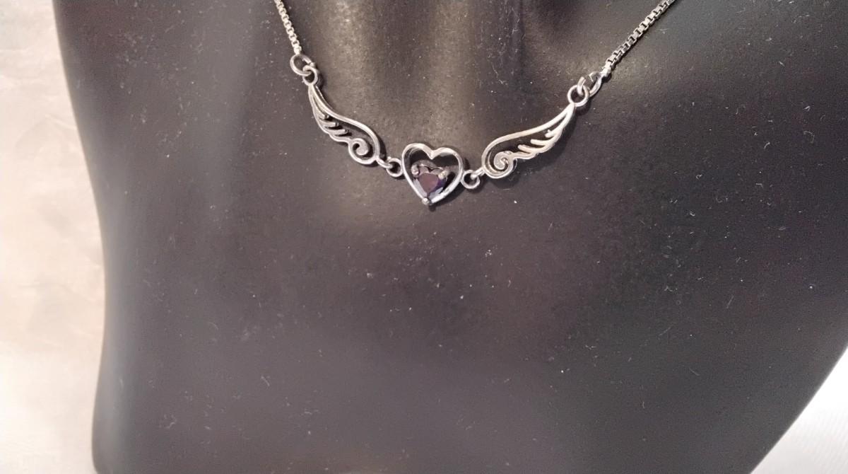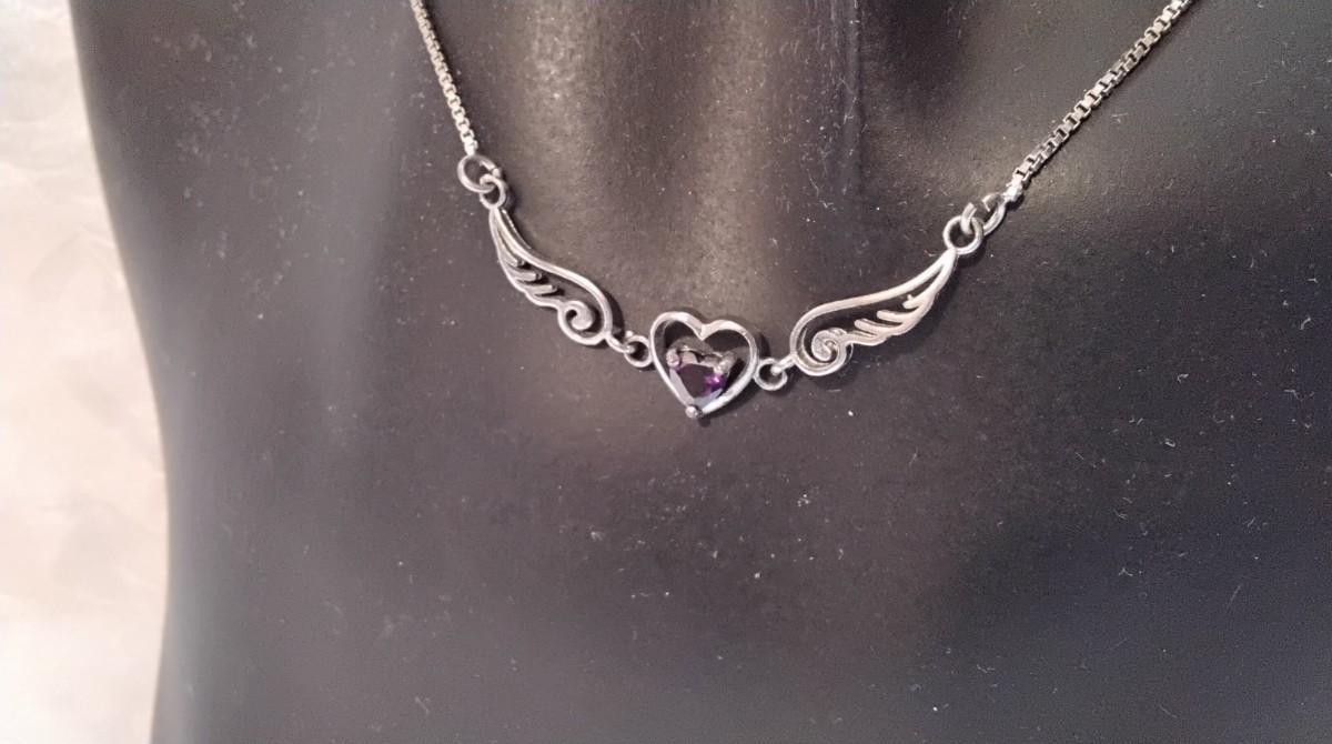 Unique Amethyst Heart With Wings 17" 925 Necklace