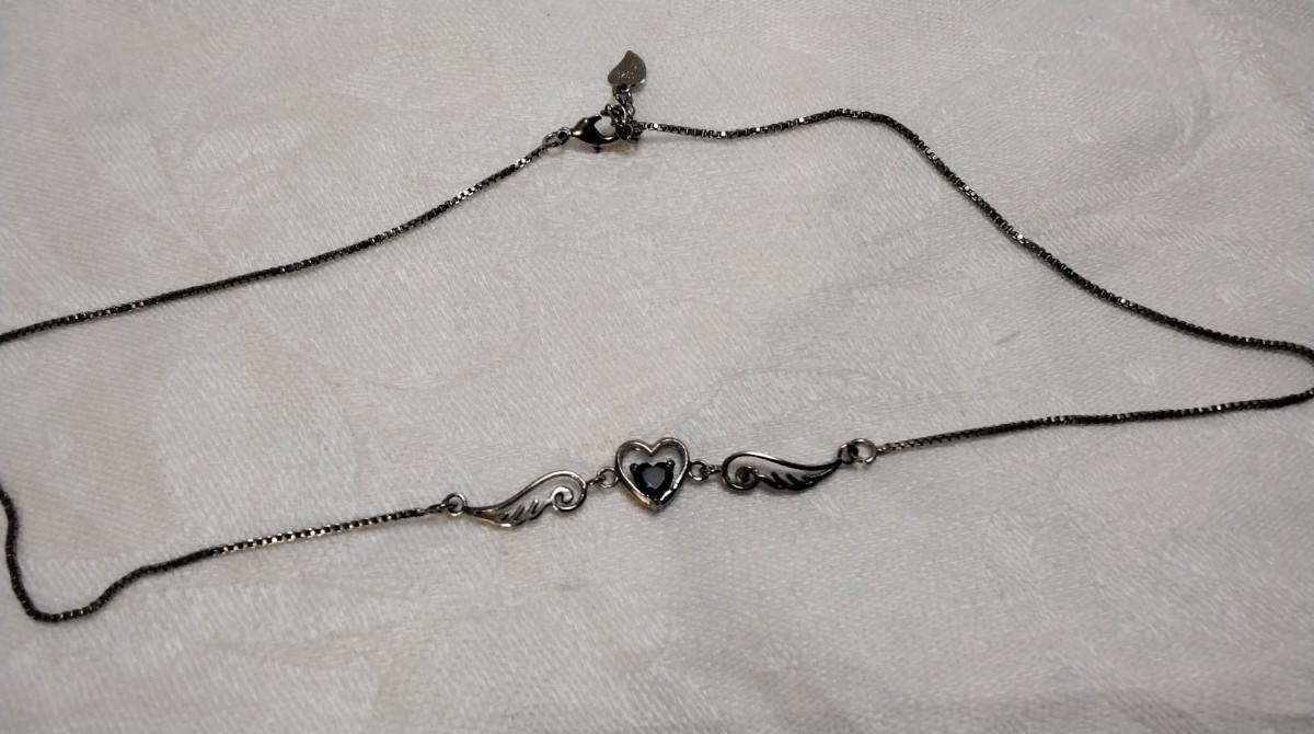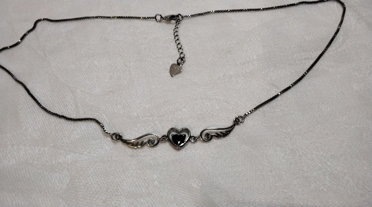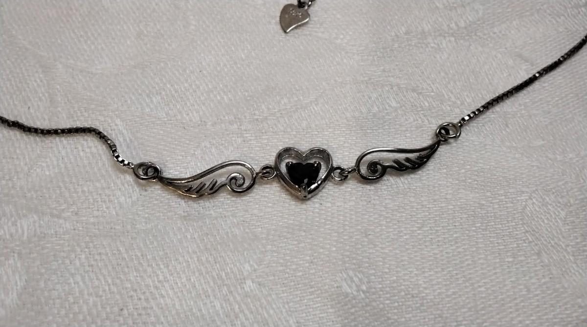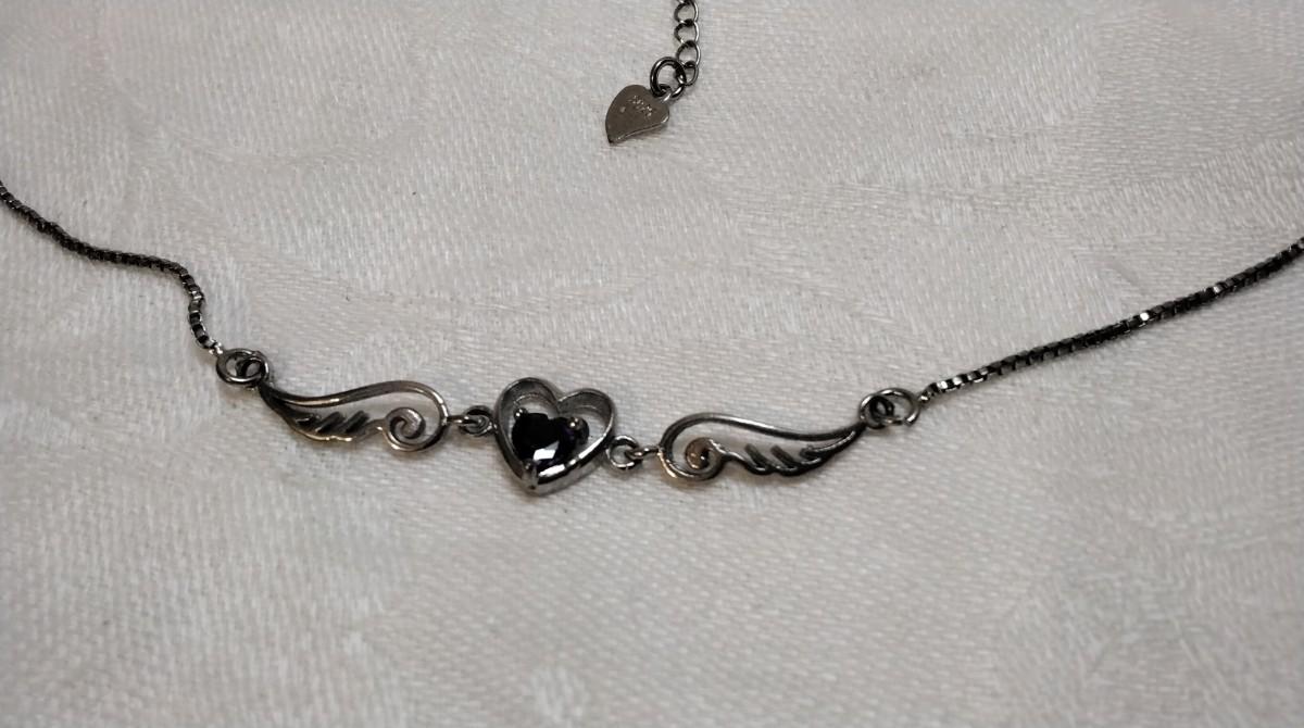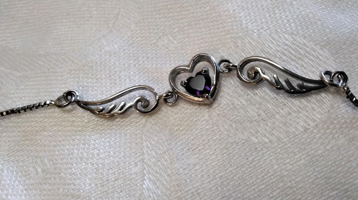 Unique Amethyst Heart With Wings 17" 925 Necklace