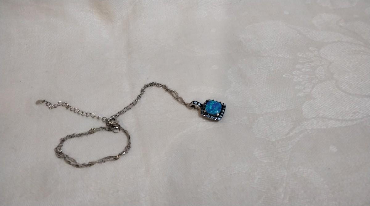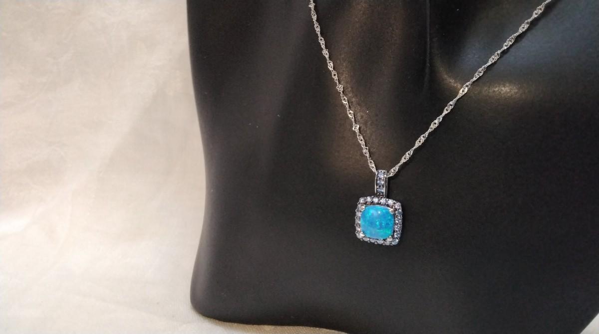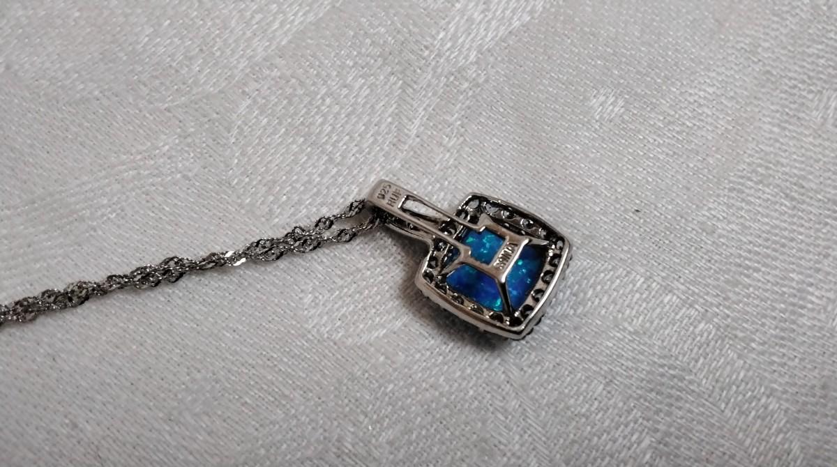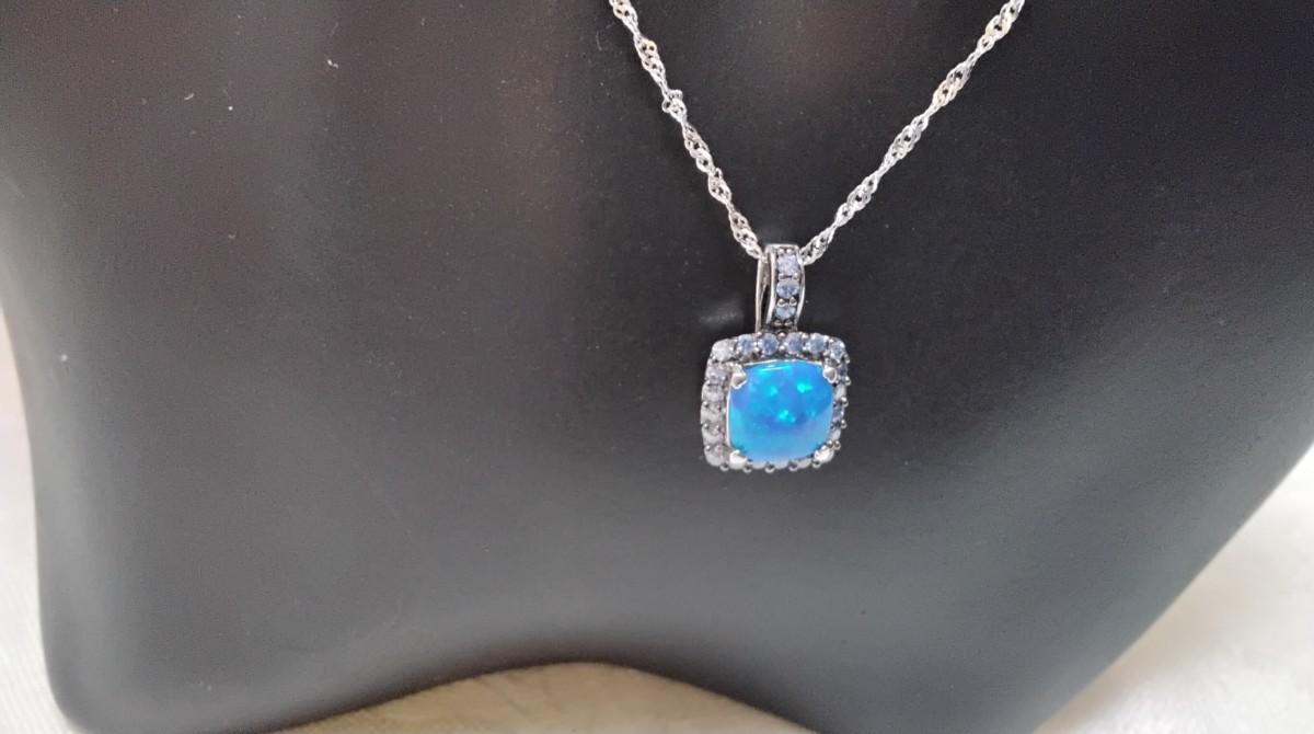 Blue Fire Opal With Swarovski crystals 18" 925 Necklace
