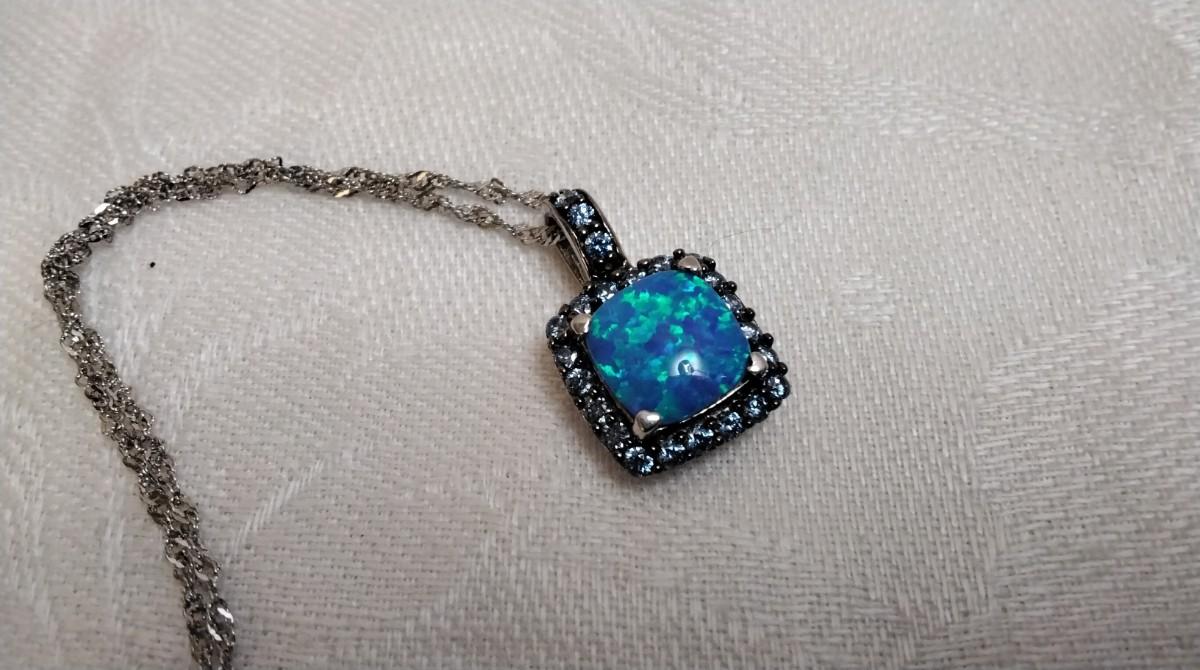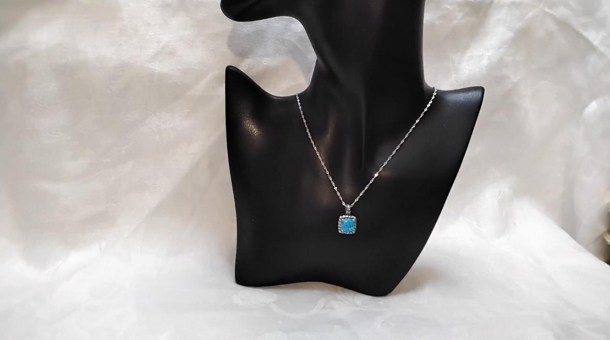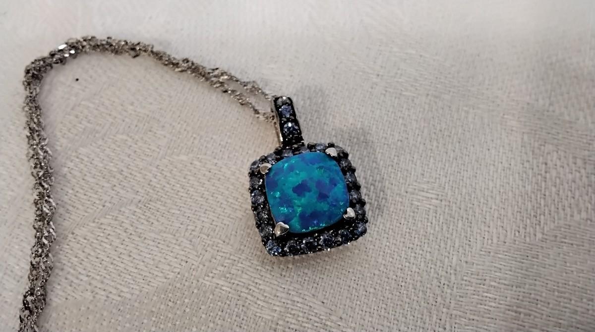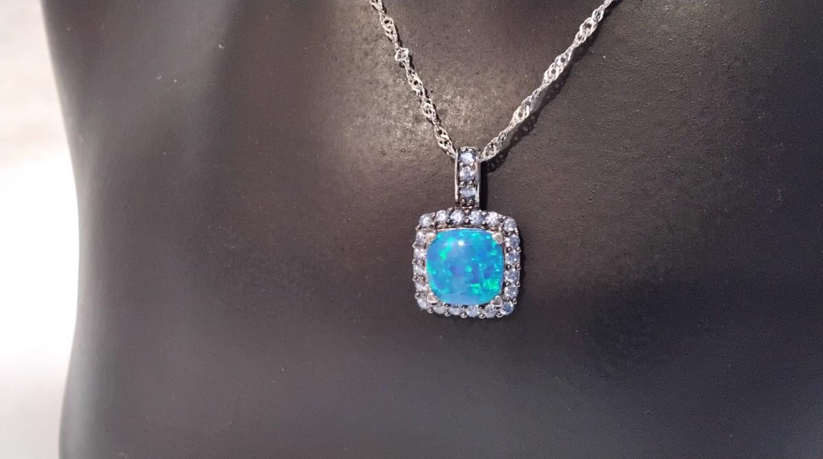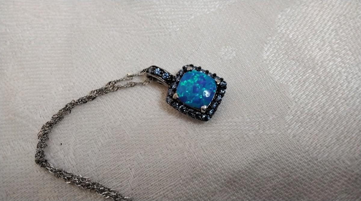Blue Fire Opal With Swarovski crystals 18" 925 Necklace