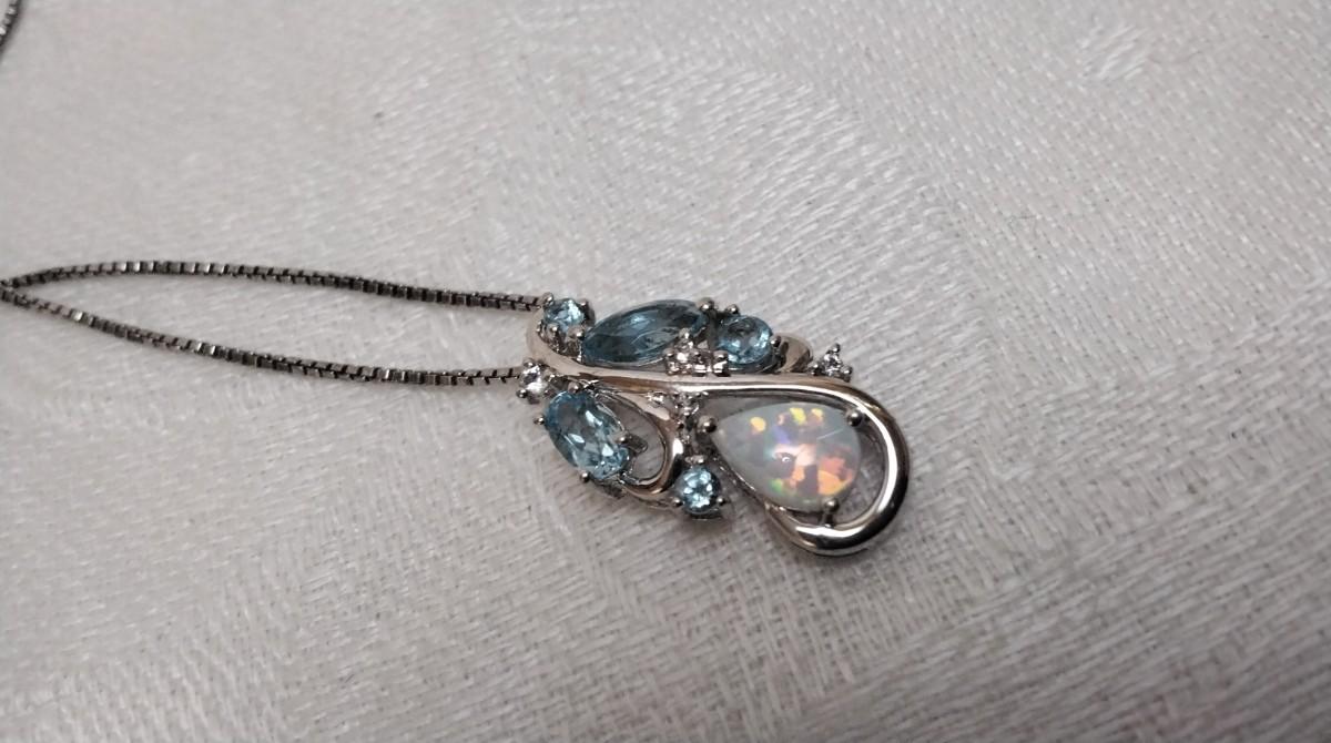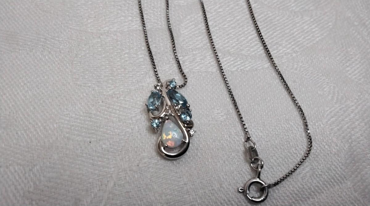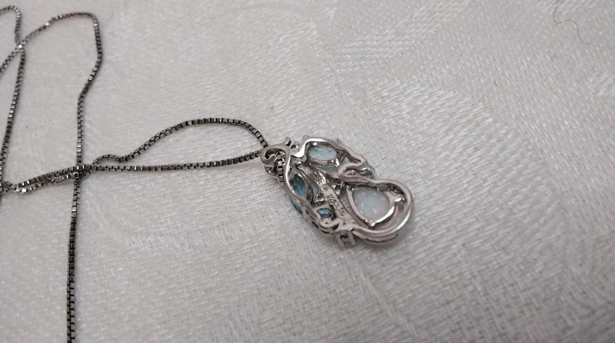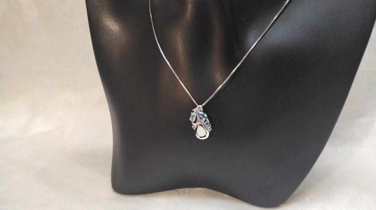 Opal and Aquamarine With Diamond Accents 18" 925 Necklace