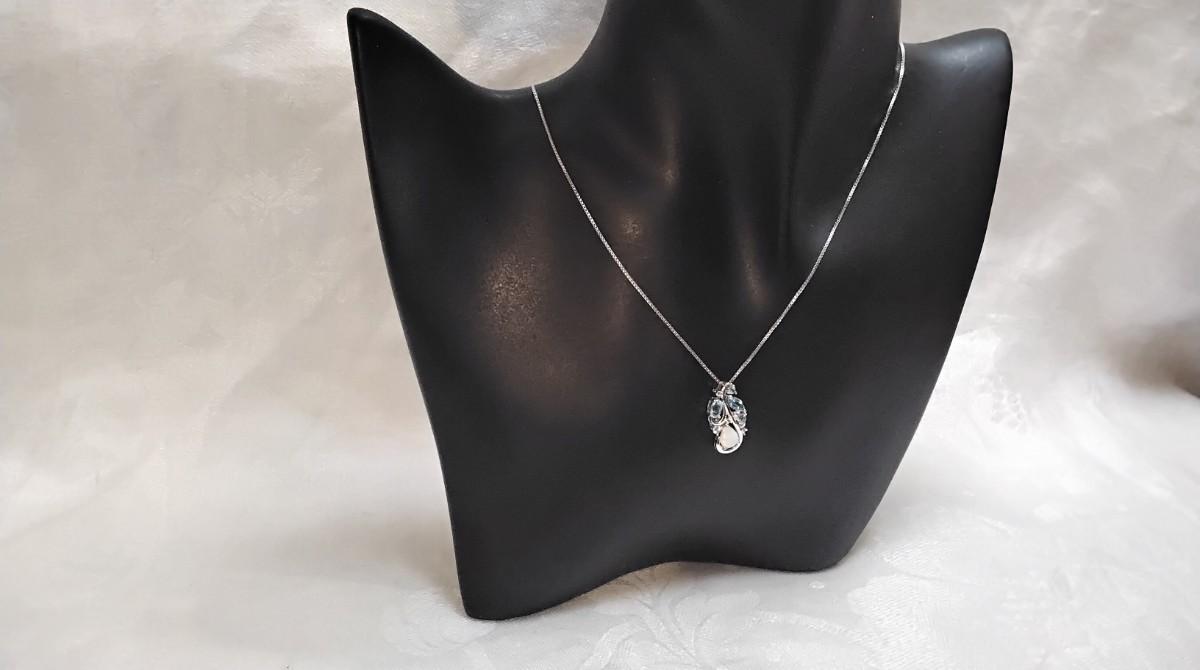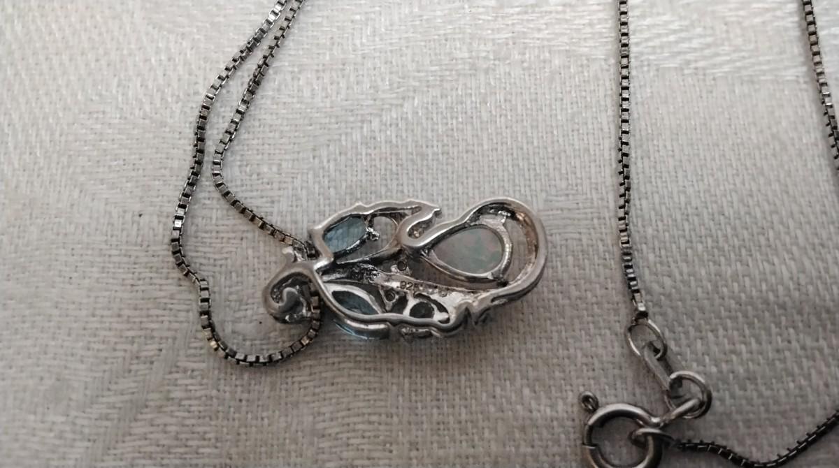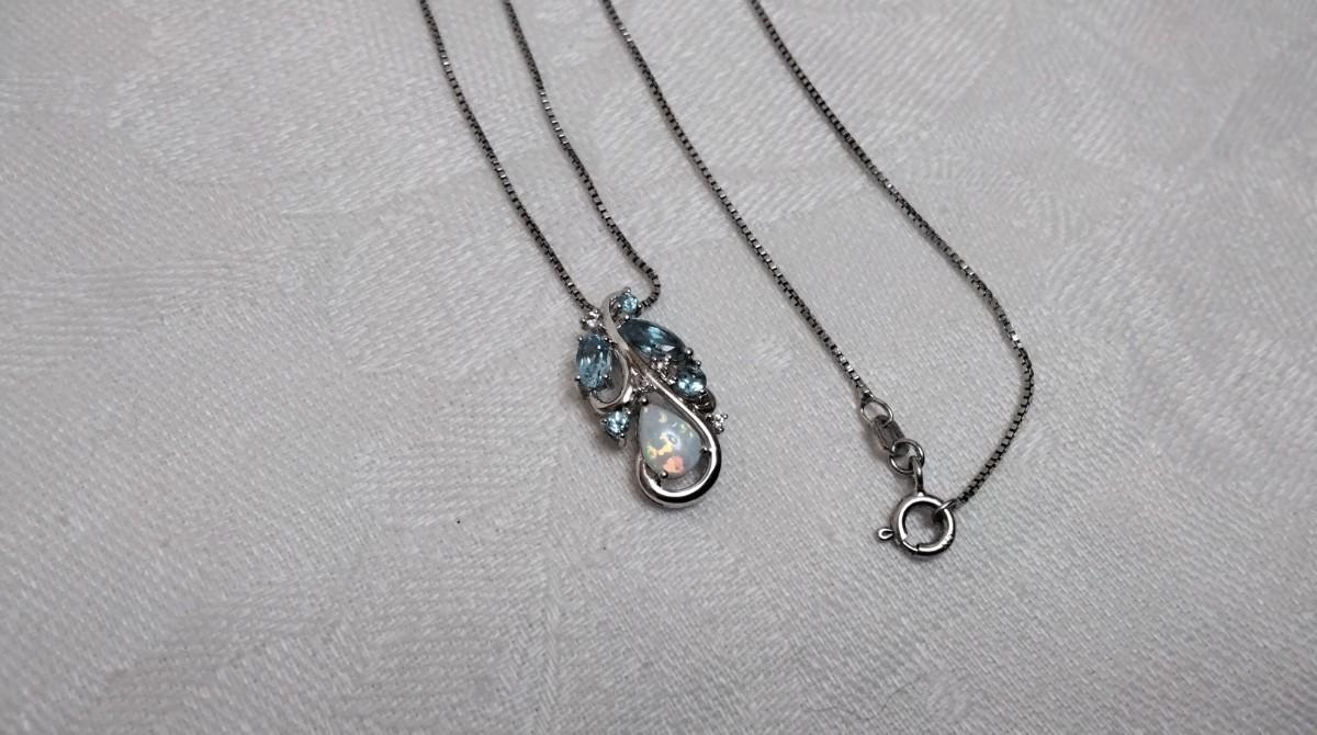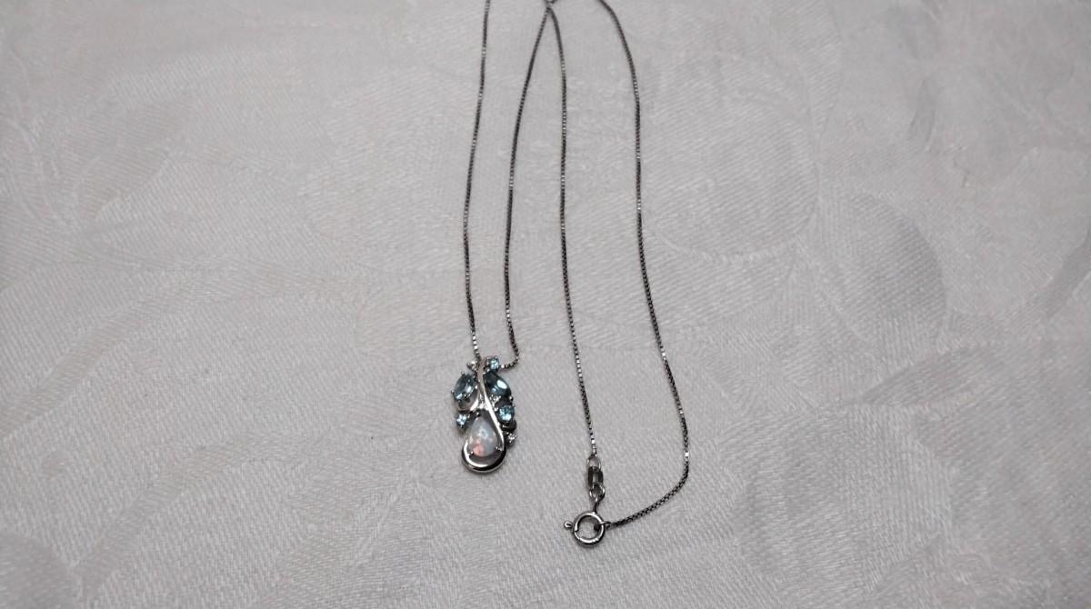 Opal and Aquamarine With Diamond Accents 18" 925 Necklace