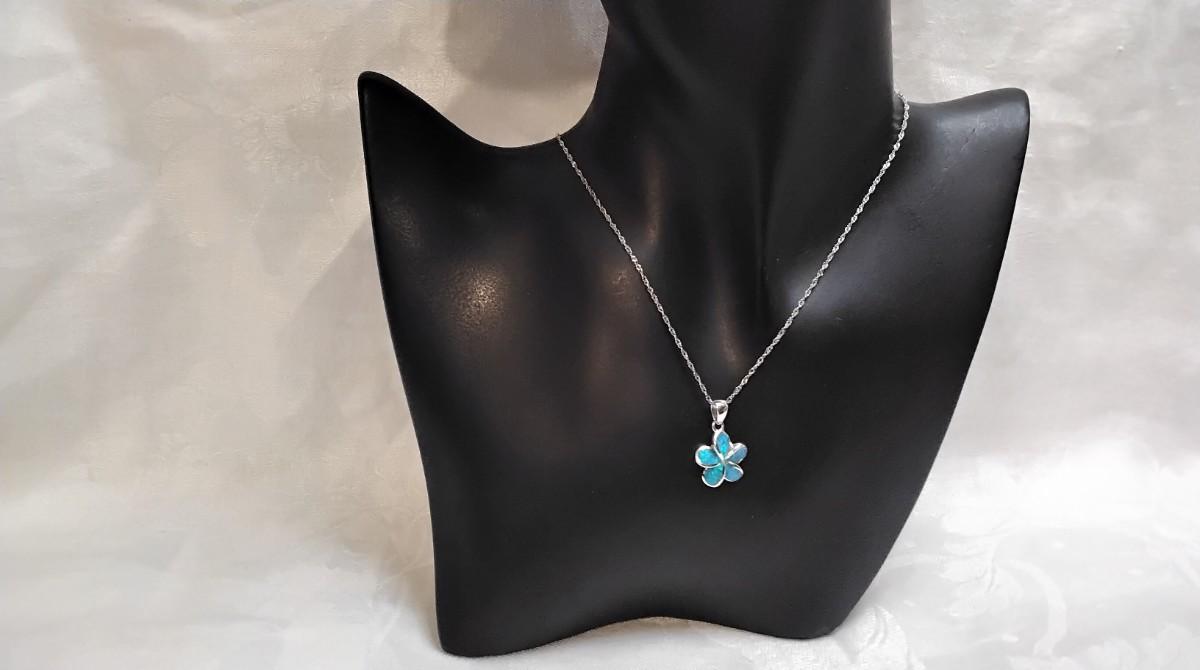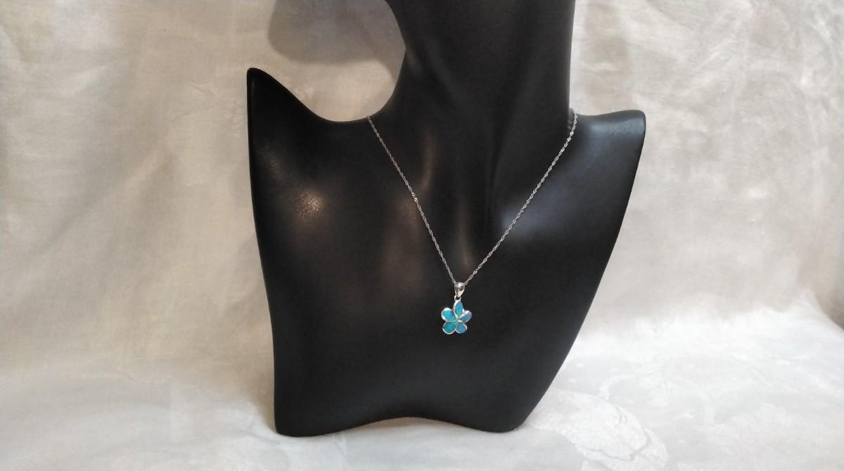 Blue Fire Opal Pinwheel 16" 925 Necklace
