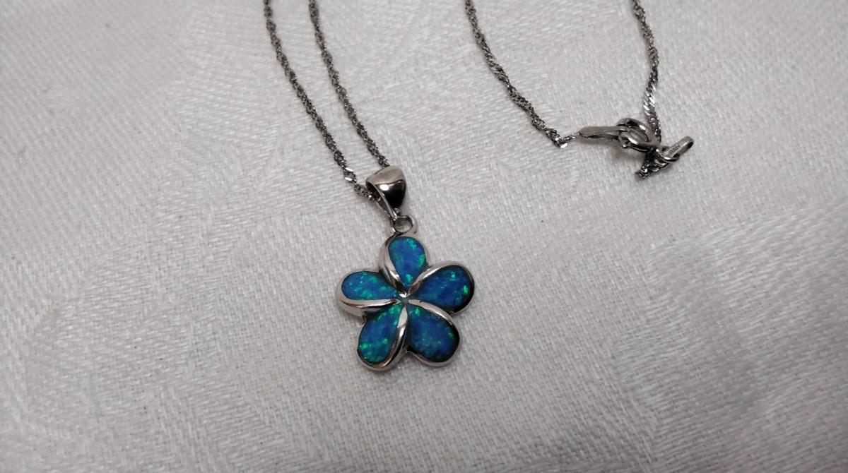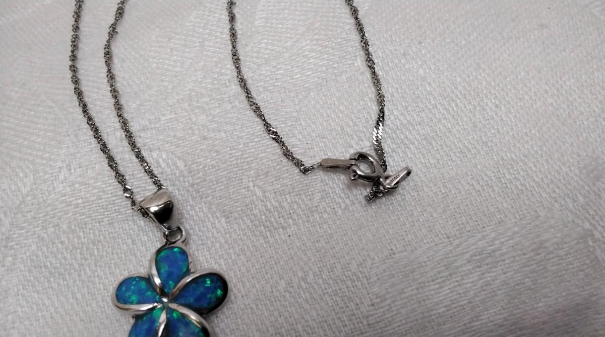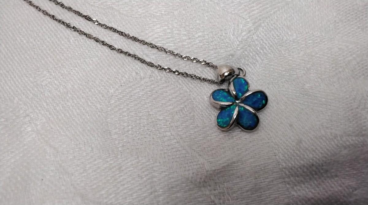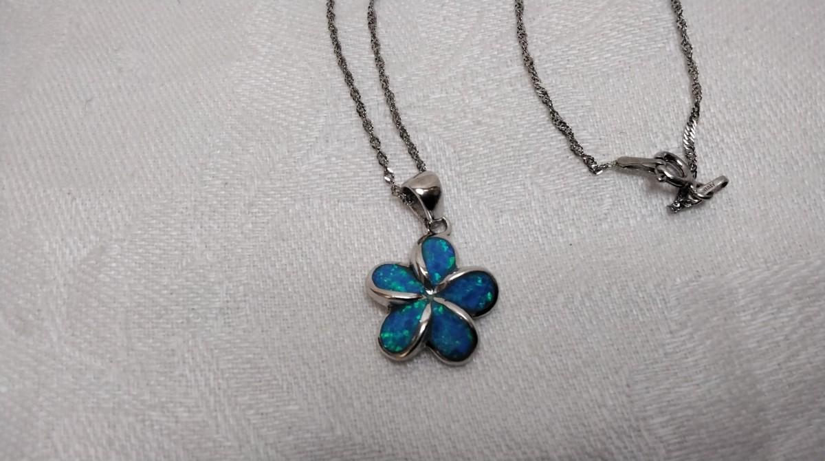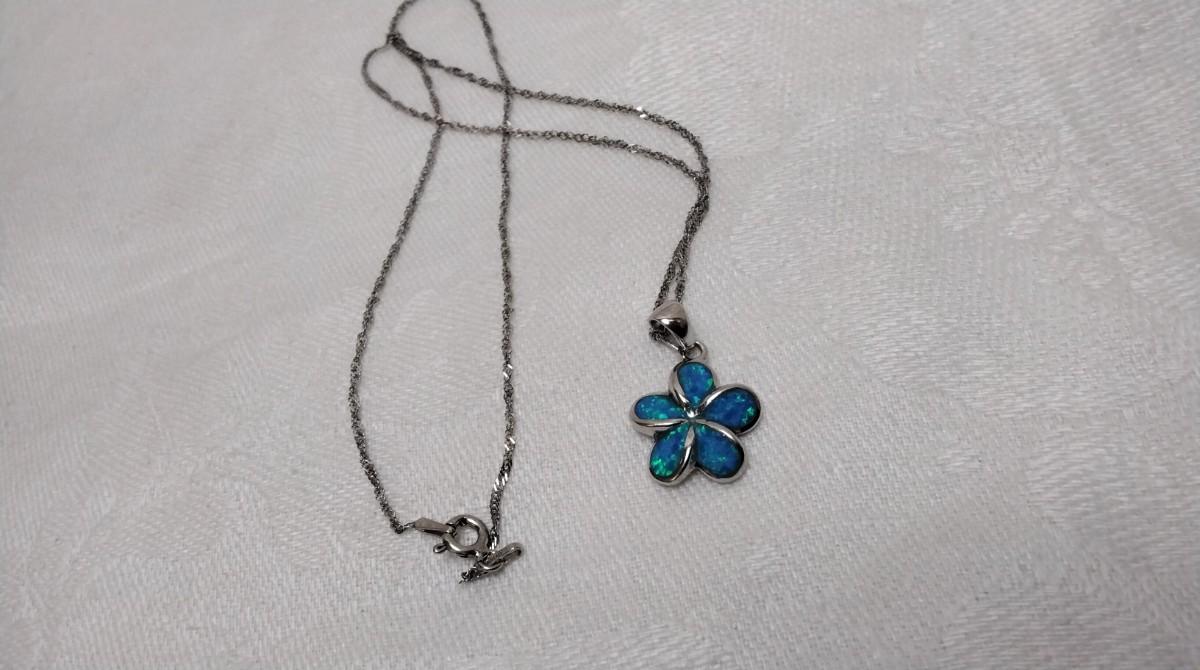Beautiful blue fire opals in this unique necklace! Hallmarked CI.