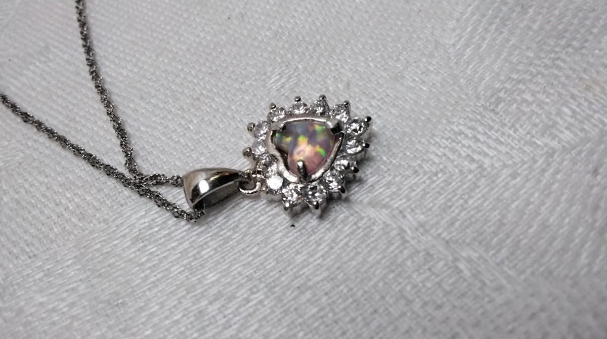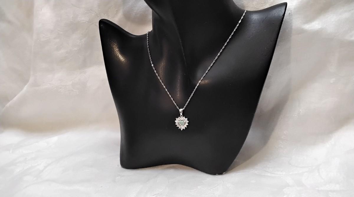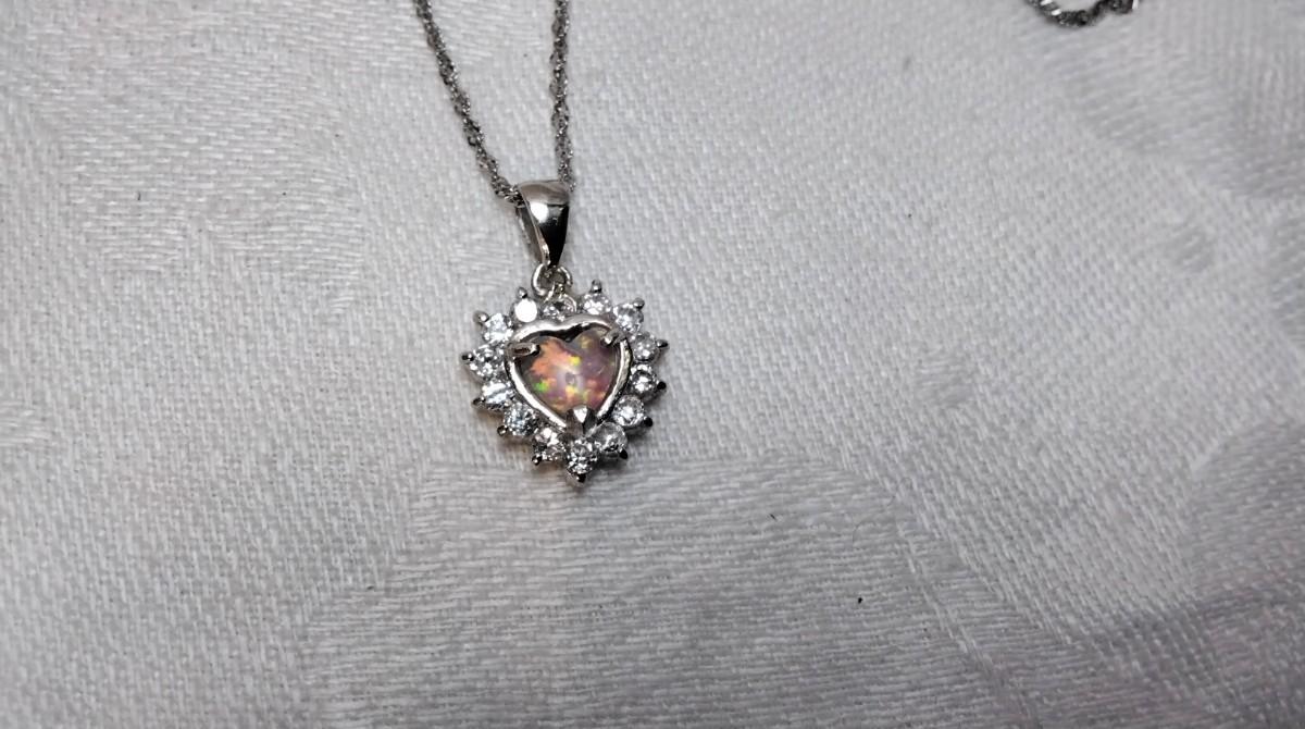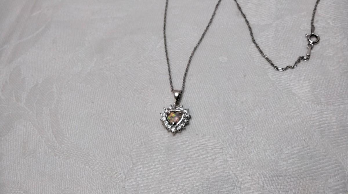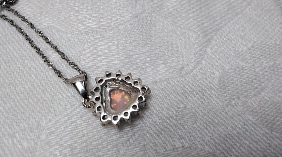 Orange Fire Opal Heart With White Sapphires 16" 925 Necklace