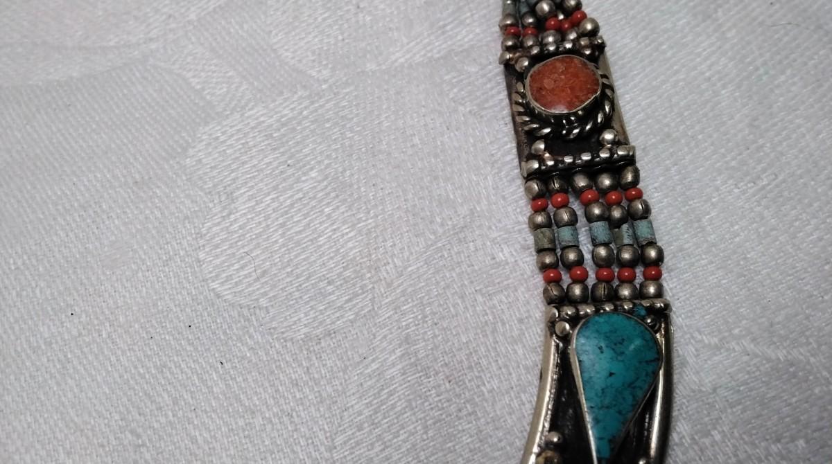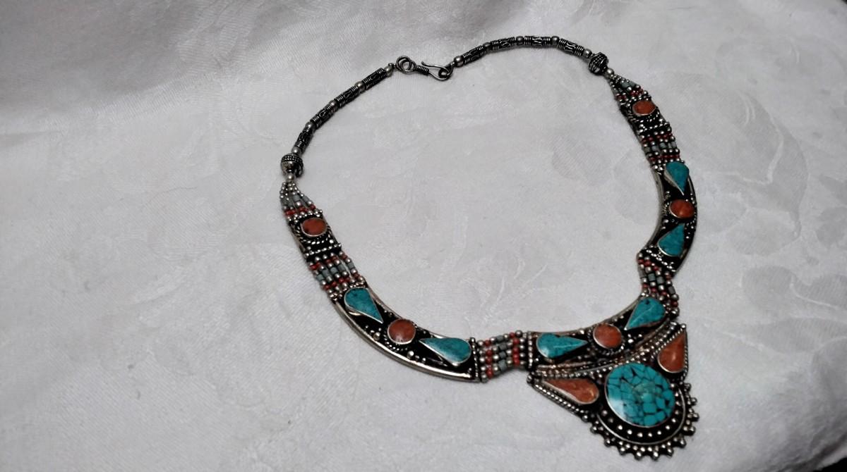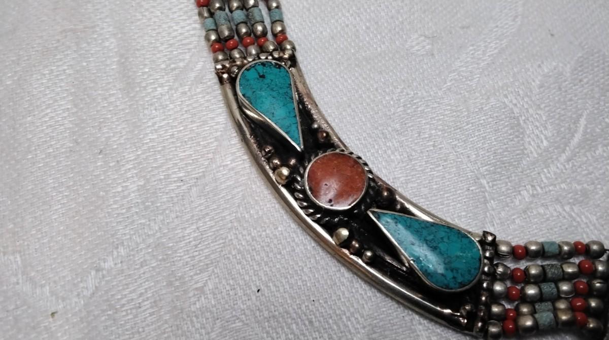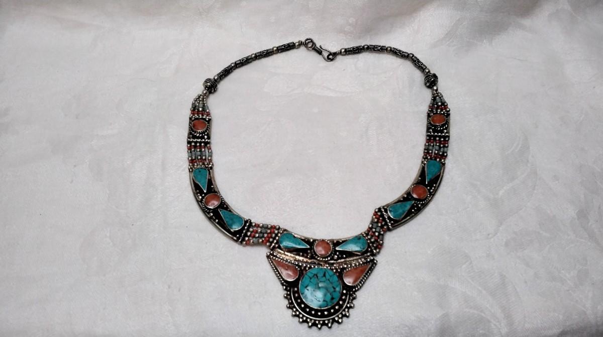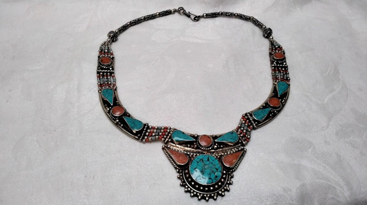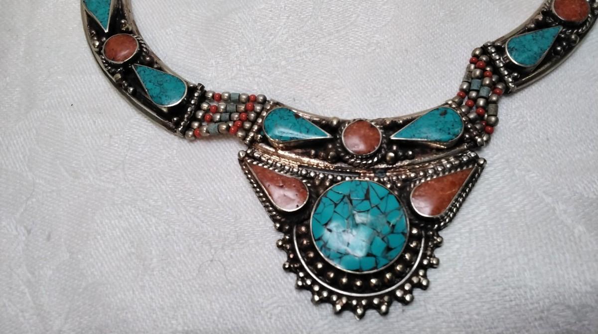 Vintage Turquoise and Coral Bib 925 Necklace