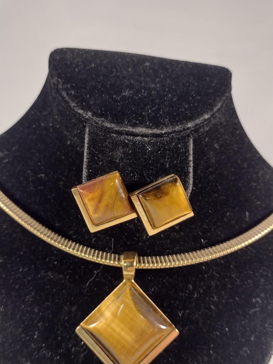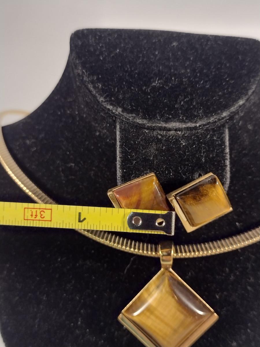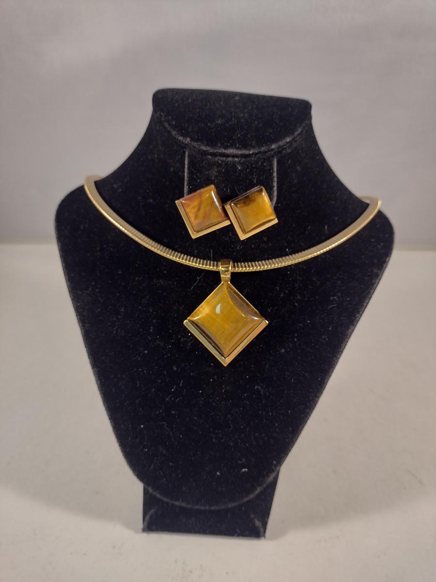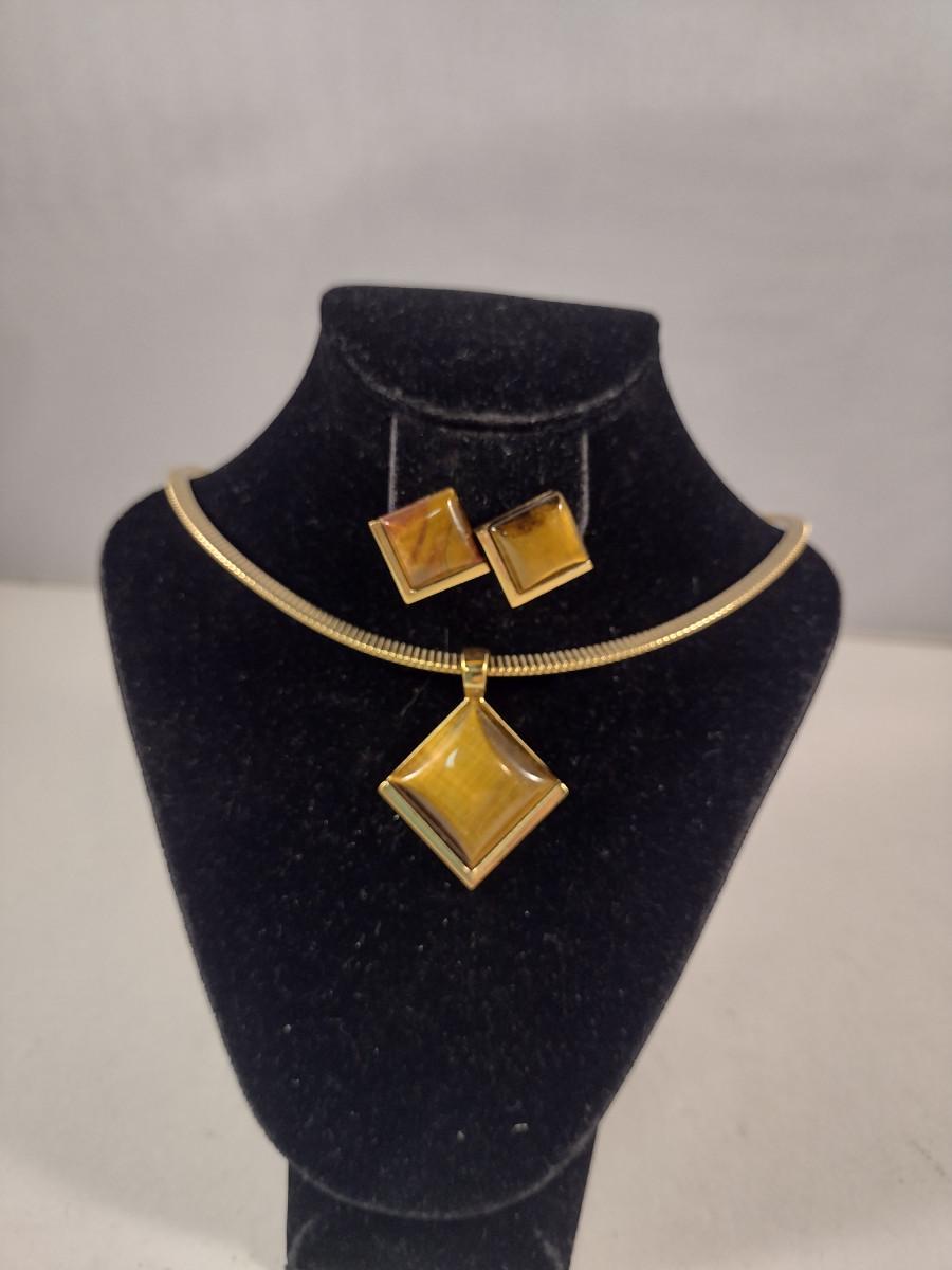 Necklace and Earring Set- Gold Tone with Tiger's Eye (#12)
