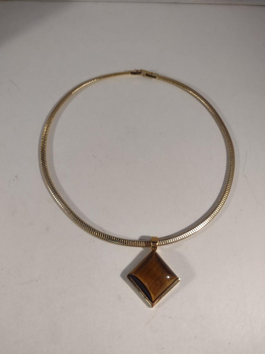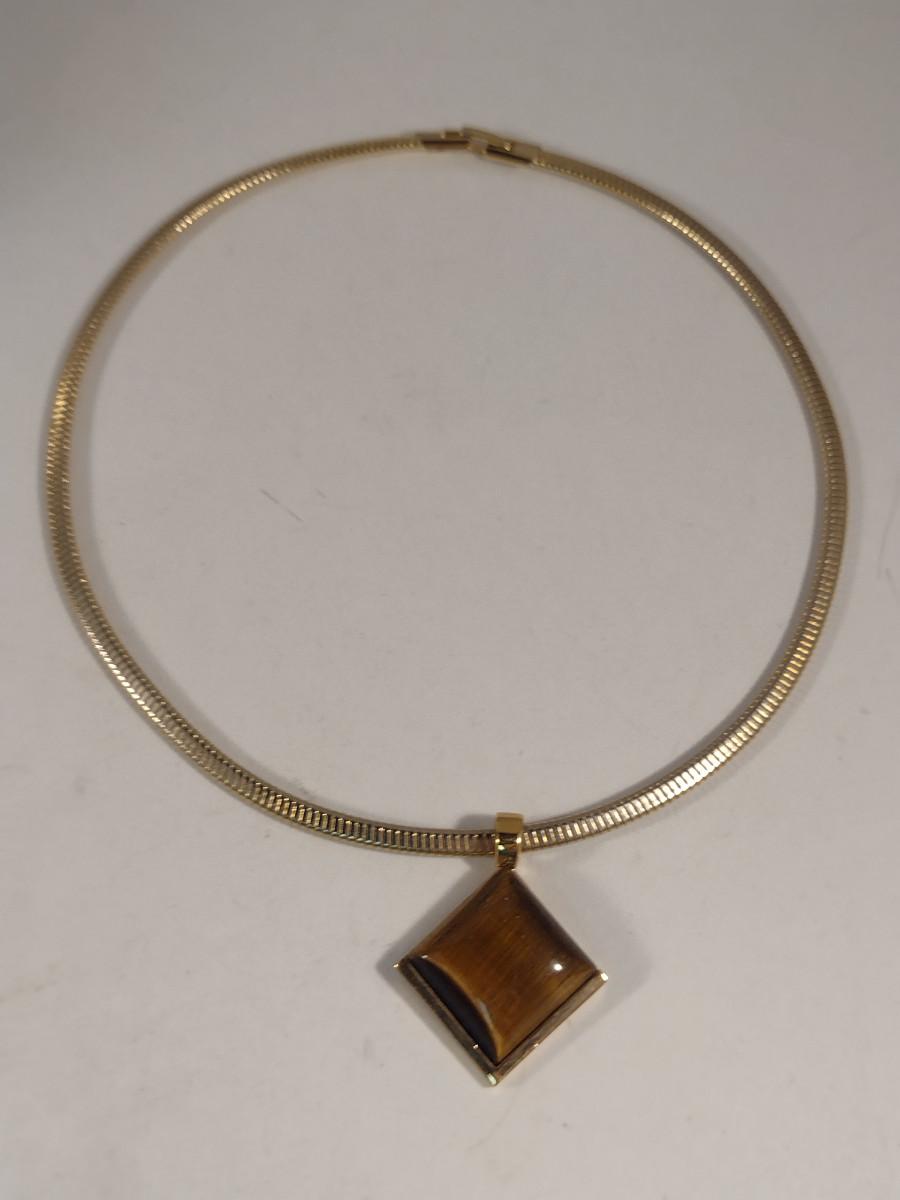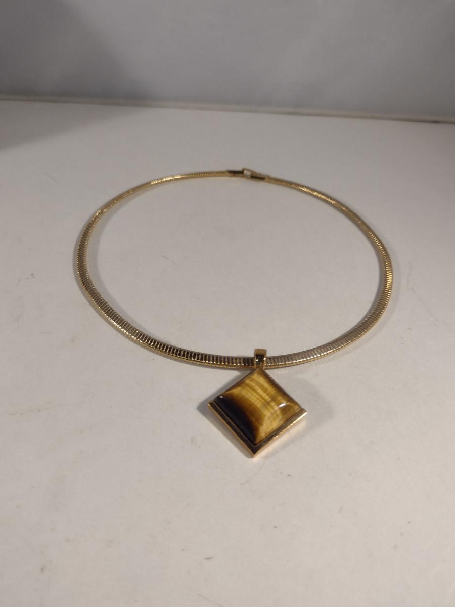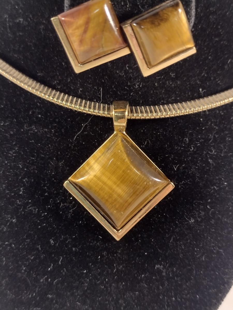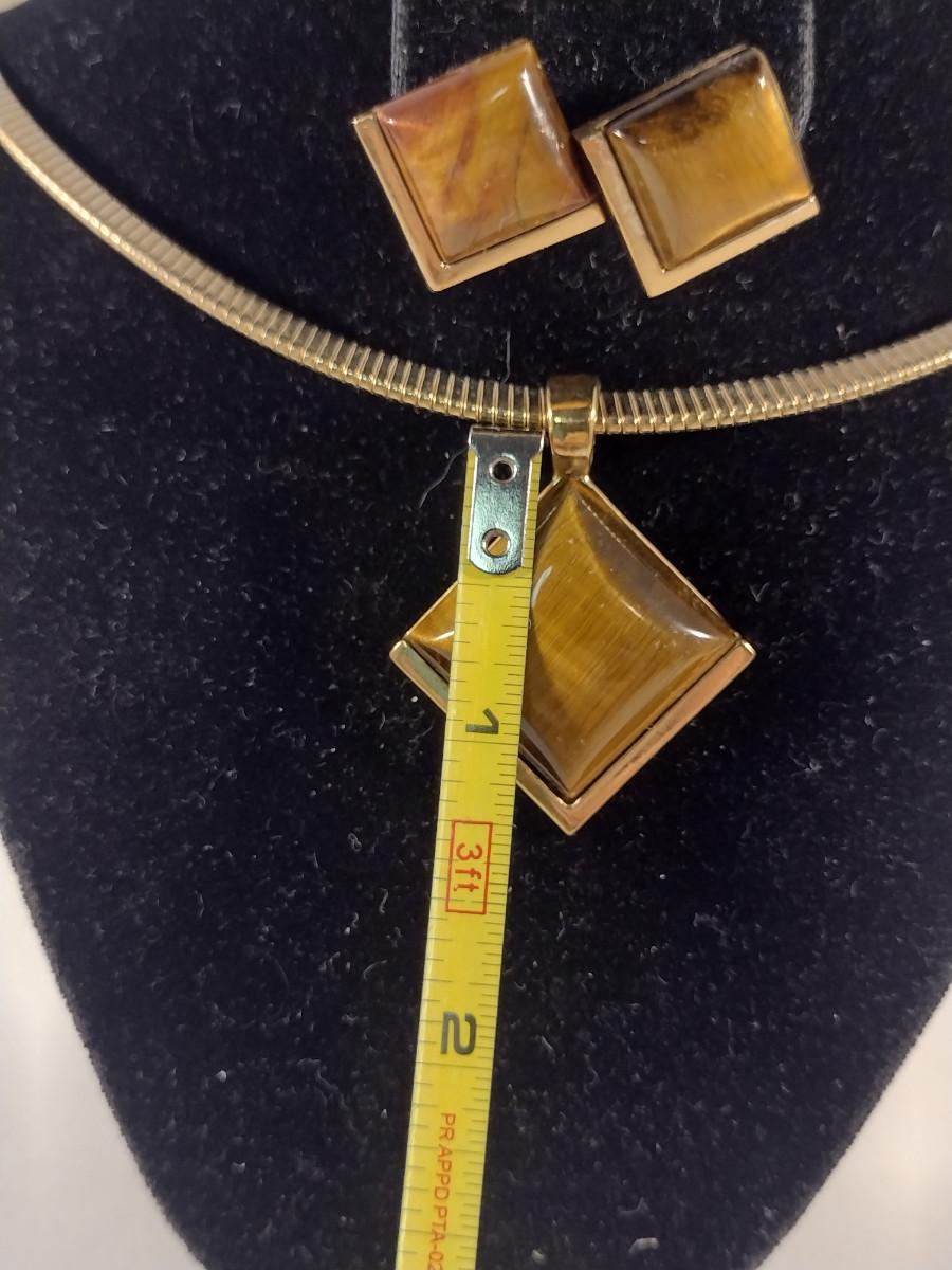 Necklace and Earring Set- Gold Tone with Tiger's Eye (#12)