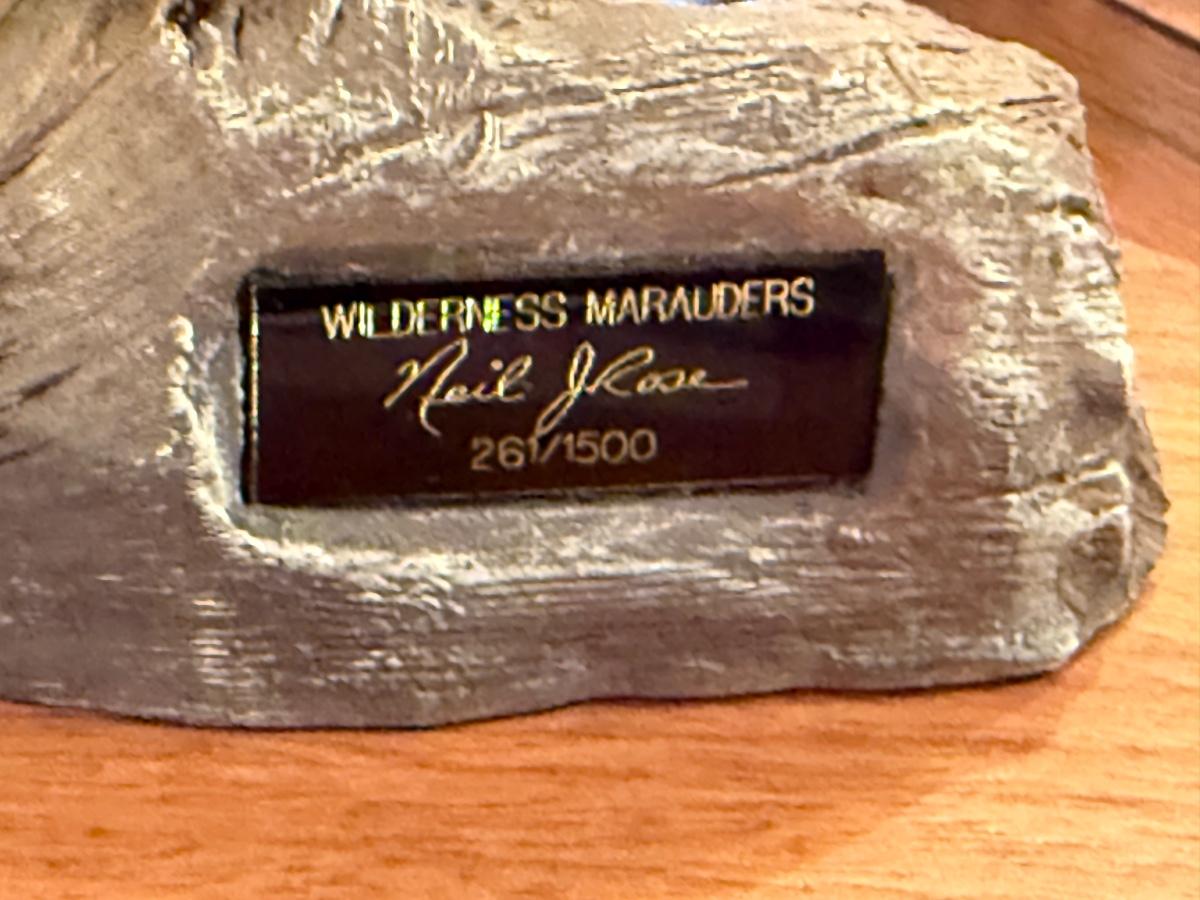 Neil J Rose signed Wolf statue on wood stand - Wilderness Marauders