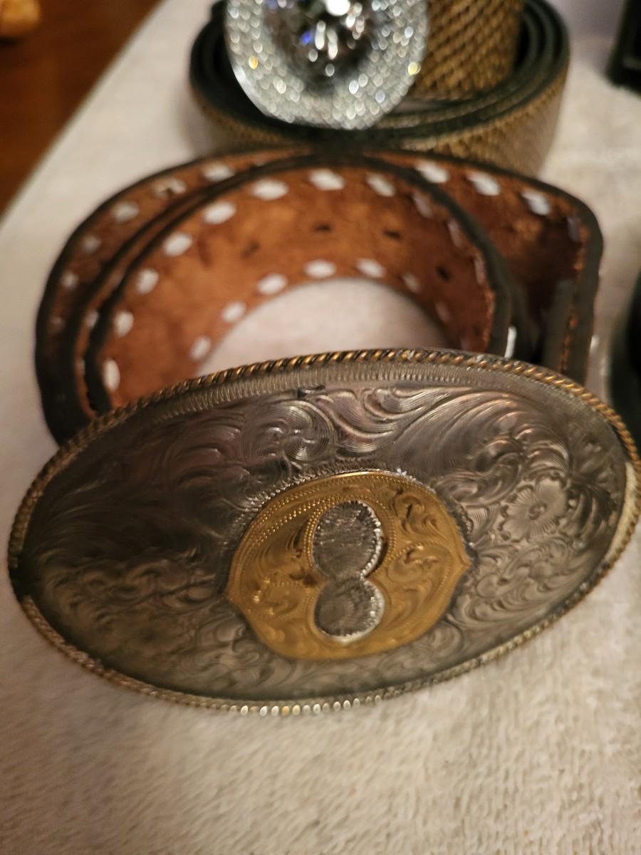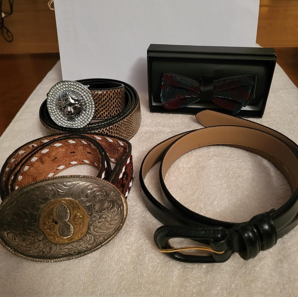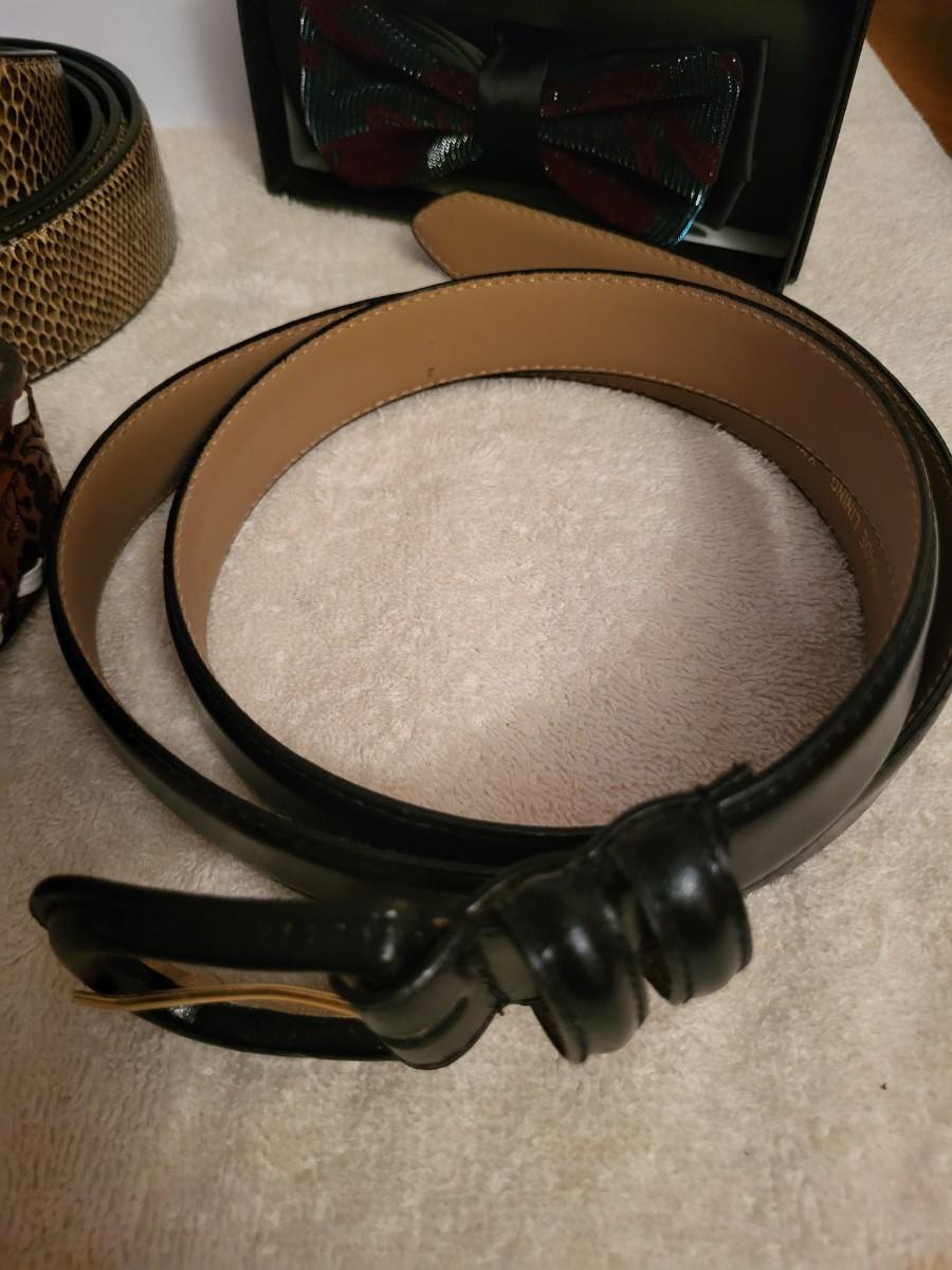 NEW BARABAS BELT AND BOW TIE, LADIES XXL BELT AND WRANGLER LEATHER BELT W/BUCKLE SIZE 32