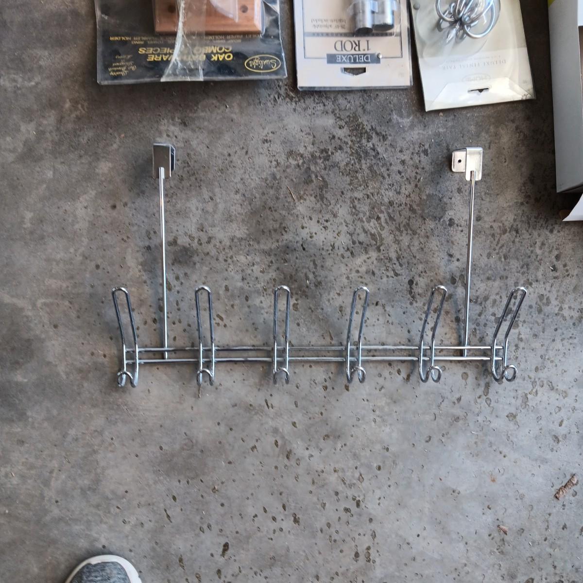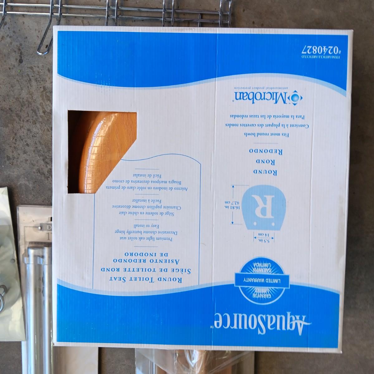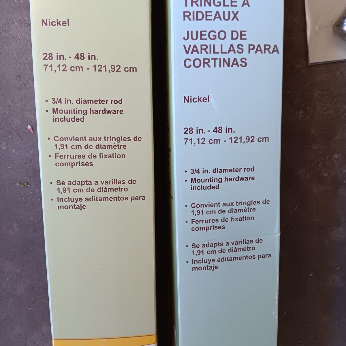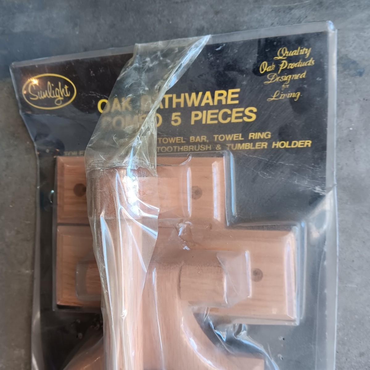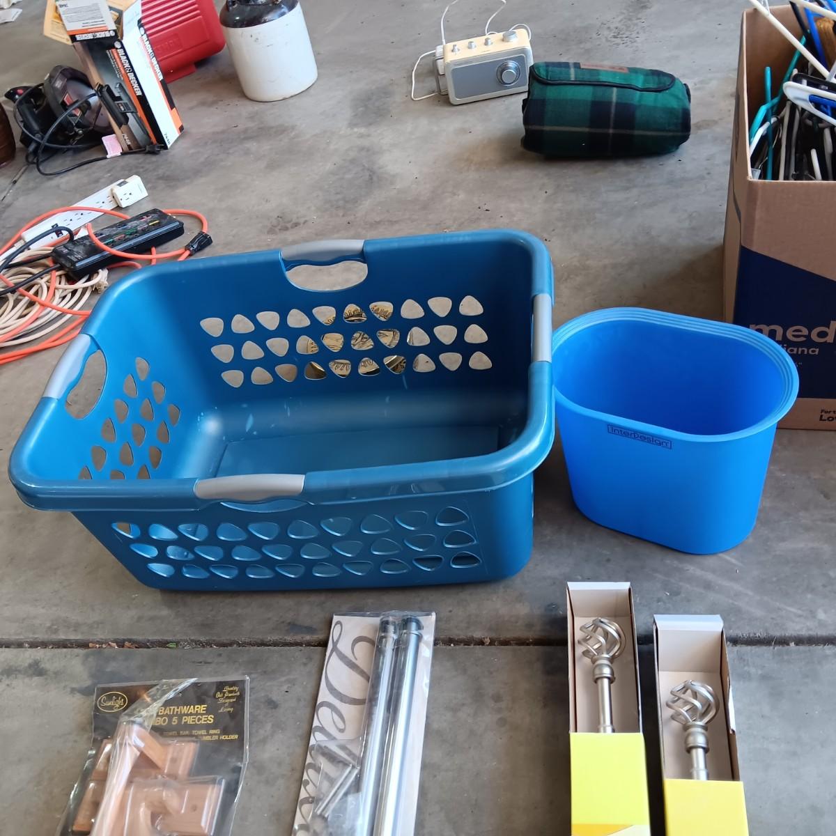 NEW CURTAIN RODS, NEW OAK BATHROOM TOWEL BARS AND TOILET SEAT & LAUNDRY BASKET