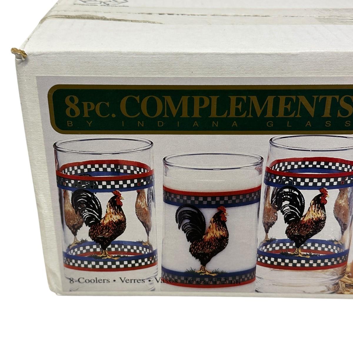 NEW in Box Set of 8 Rooster Glasses Indiana Glass