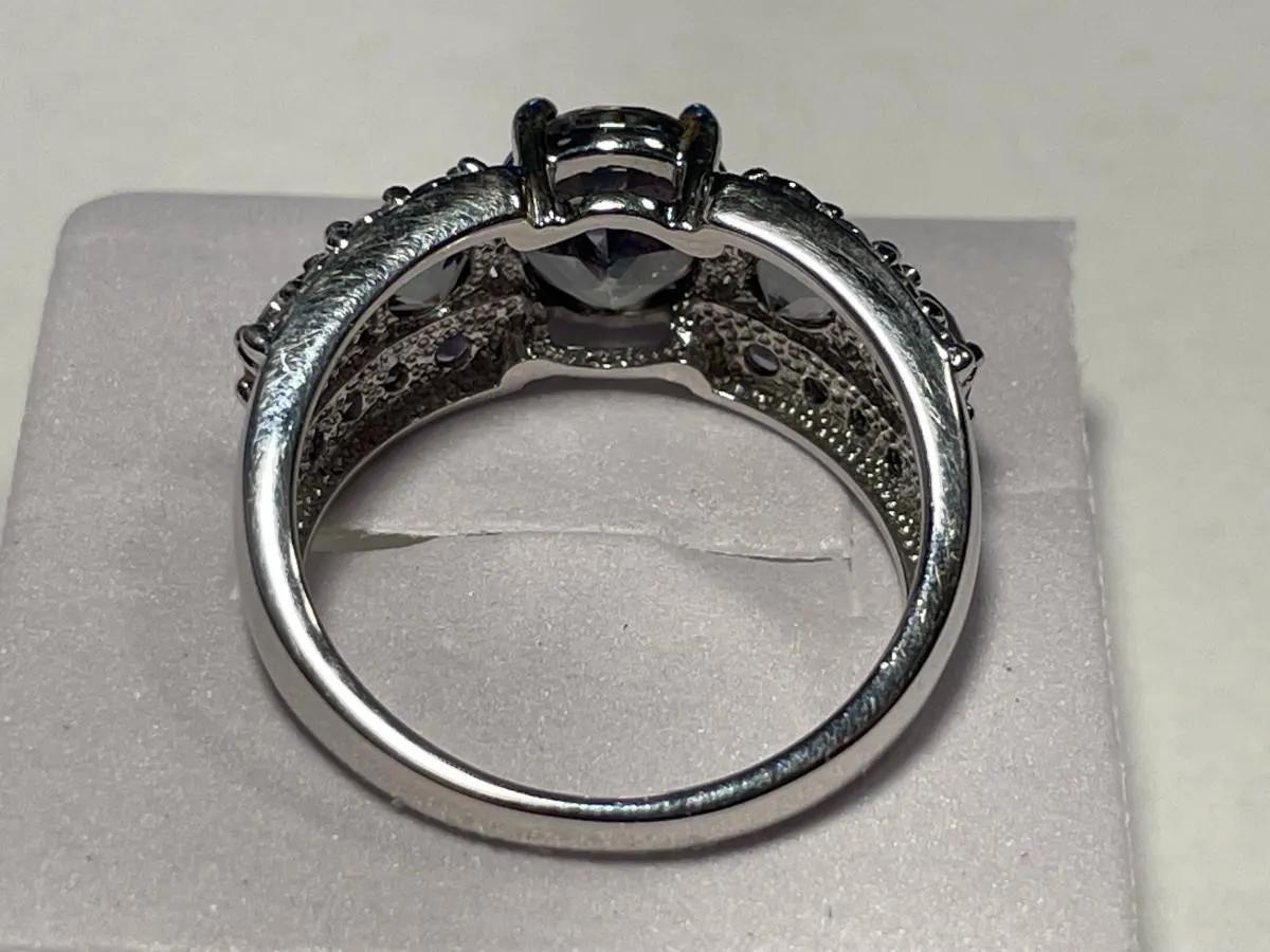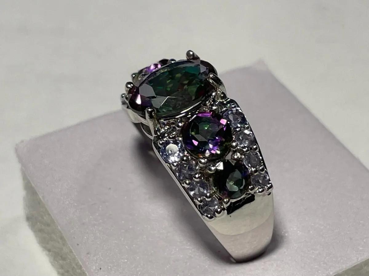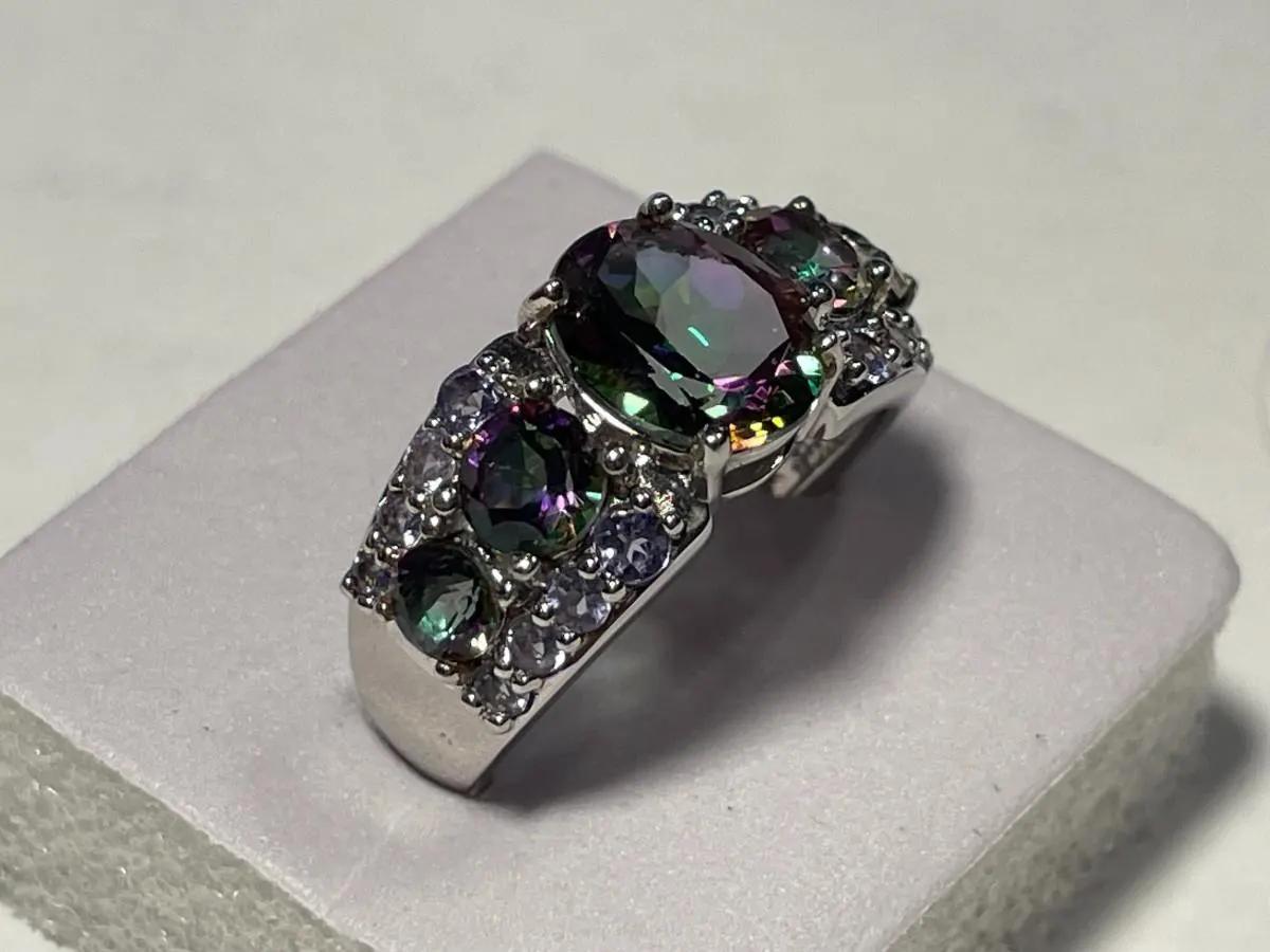 New Never Worn .925 Sterling Silver Designer Iridescent Colored Stone Band Ring Size-8.75 as Pictured. $5 DOMESTIC SHIPPING.