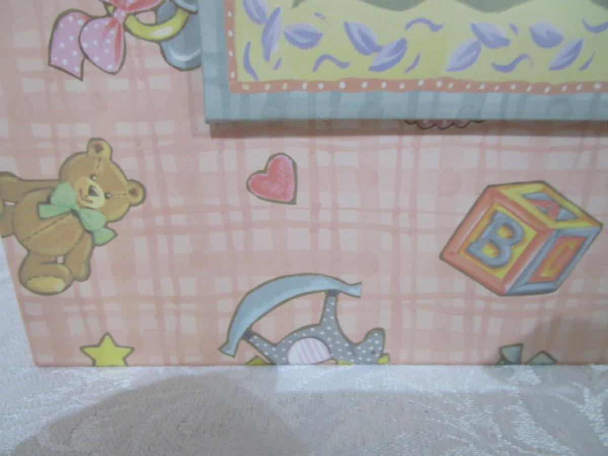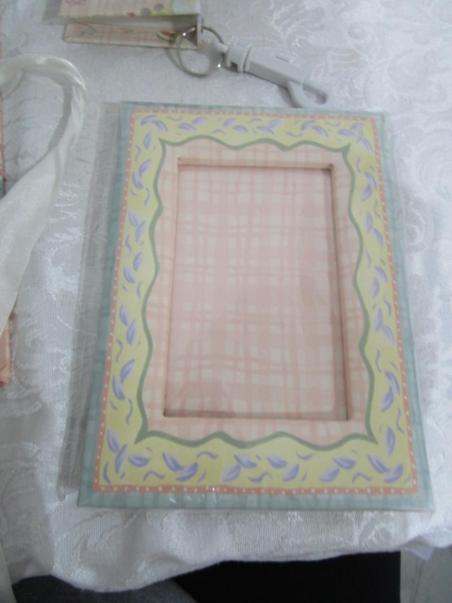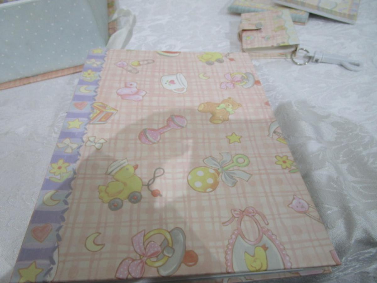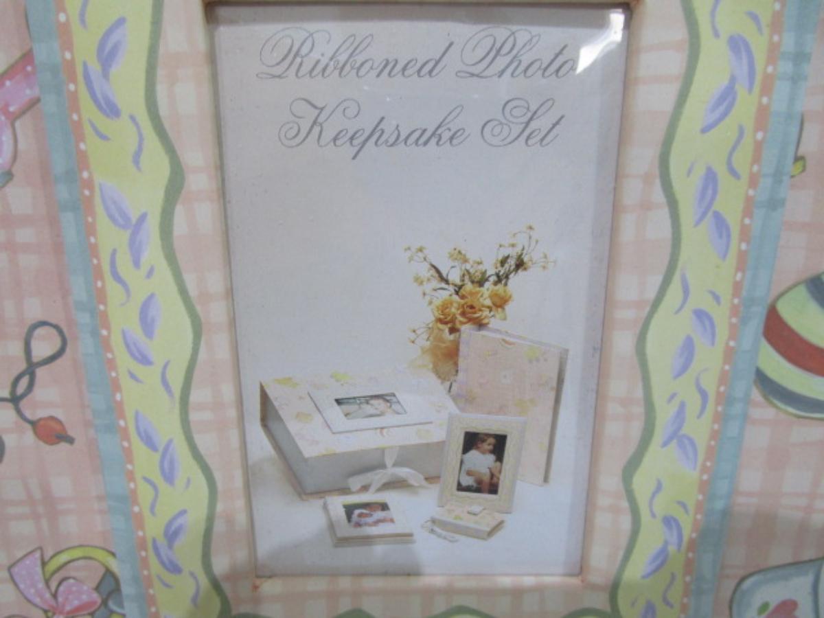 Has small photo book keychain, picture frame, picture frame cards with envelopes, and larger baby photo album