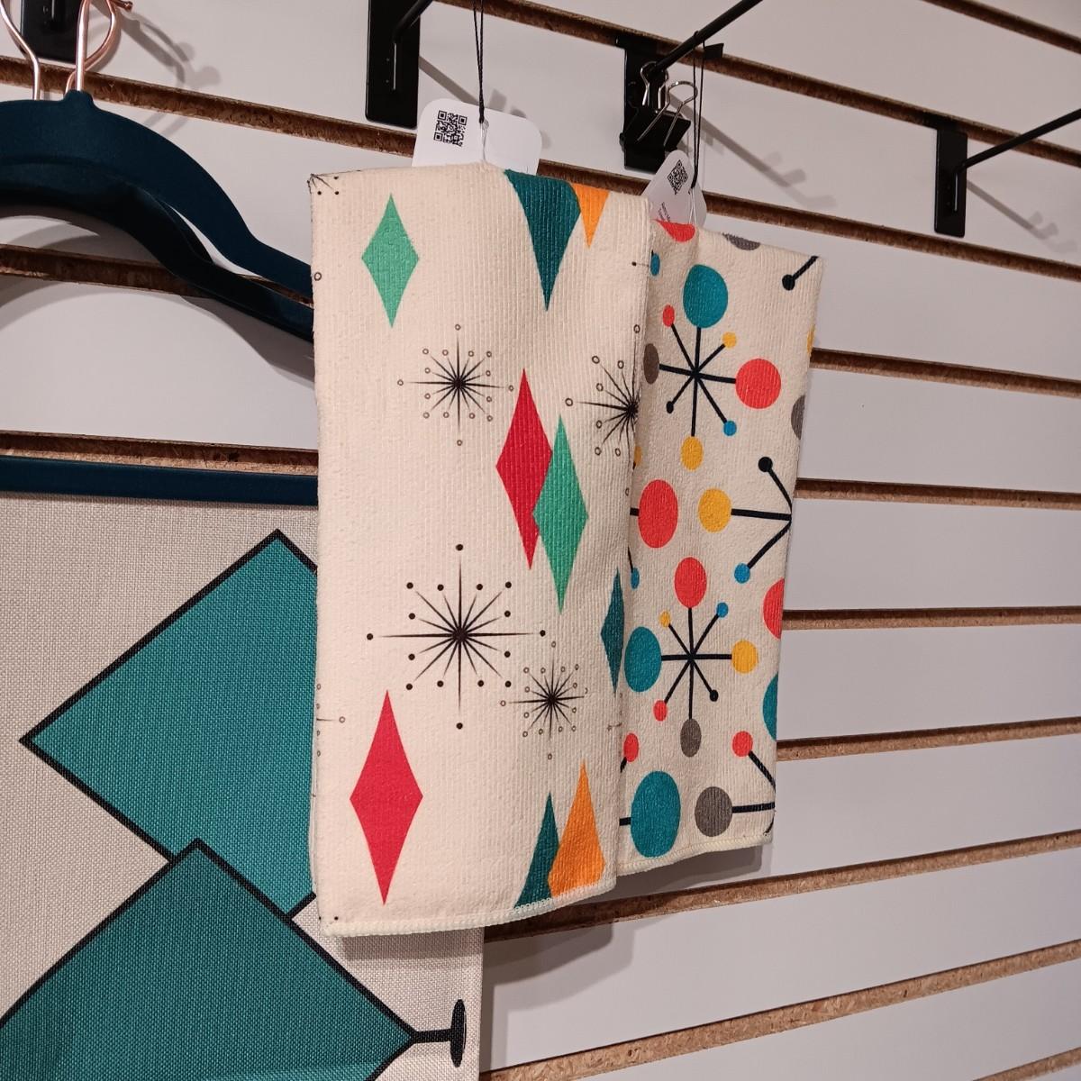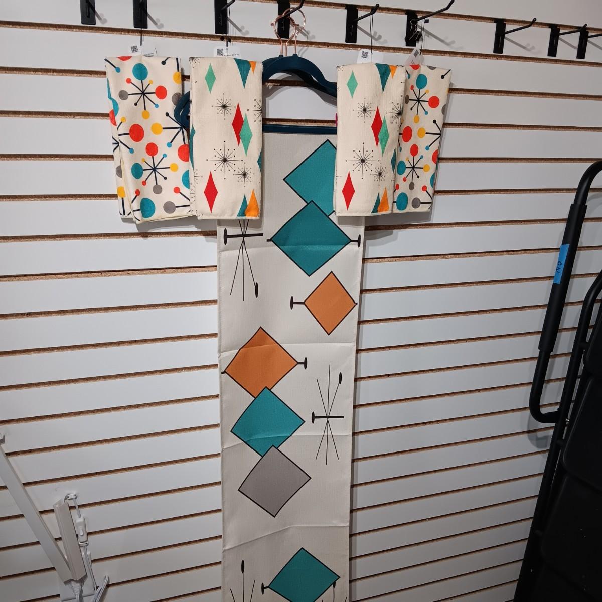 NEW RETRO MATERIAL TABLE RUNNER AND 4 DISH TOWELS