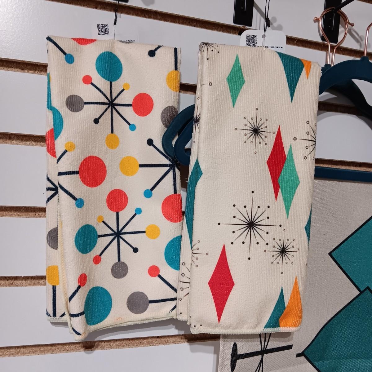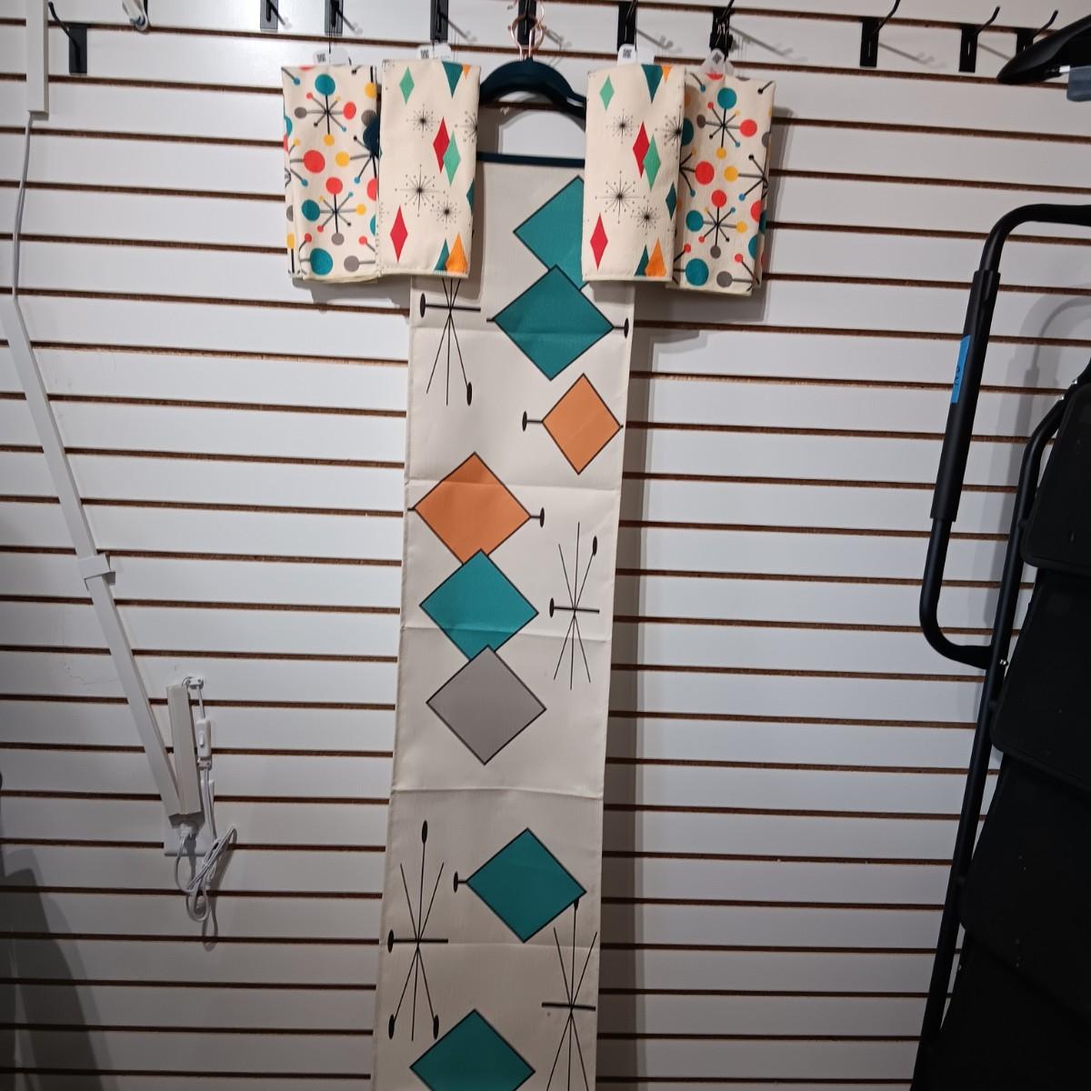 NEW RETRO MATERIAL TABLE RUNNER AND 4 DISH TOWELS
