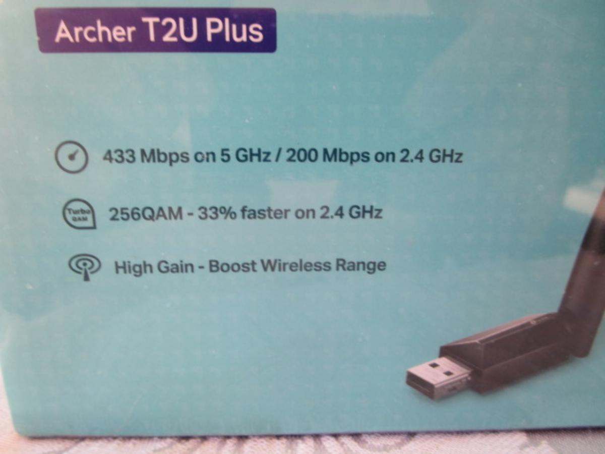 New TP-Link Archer T2U+ AC600 High Gain Wireless Dual Band USB Adapter