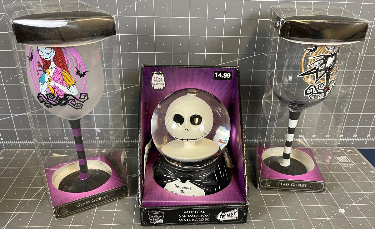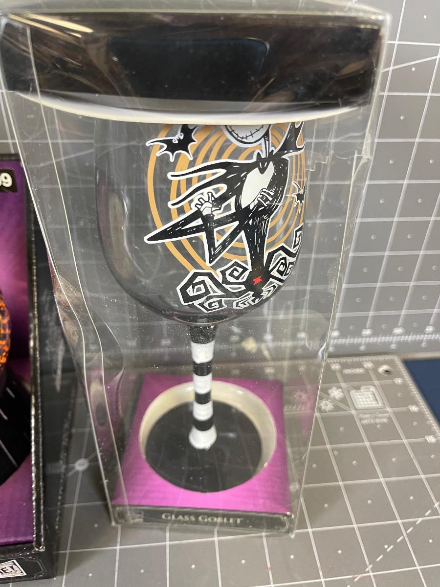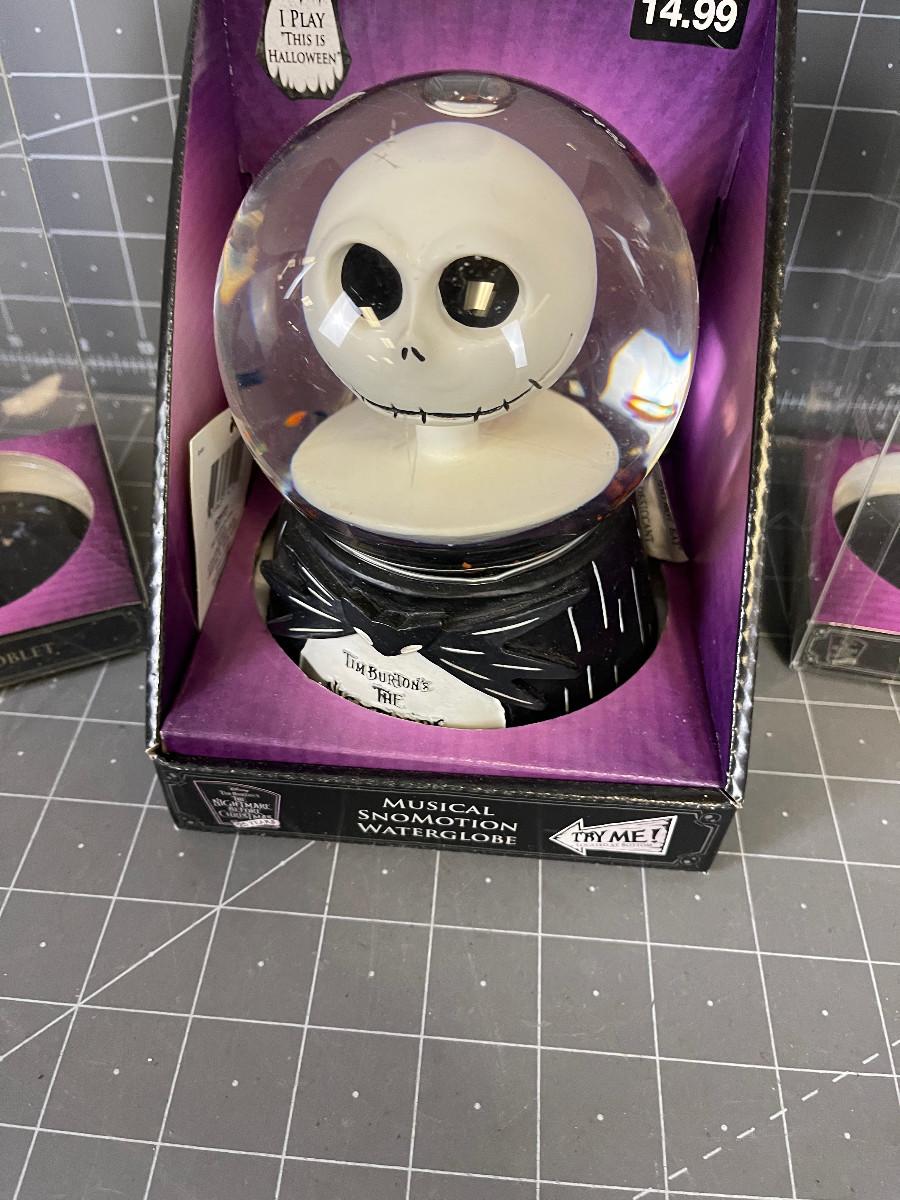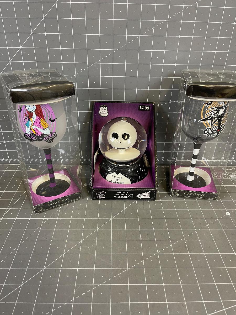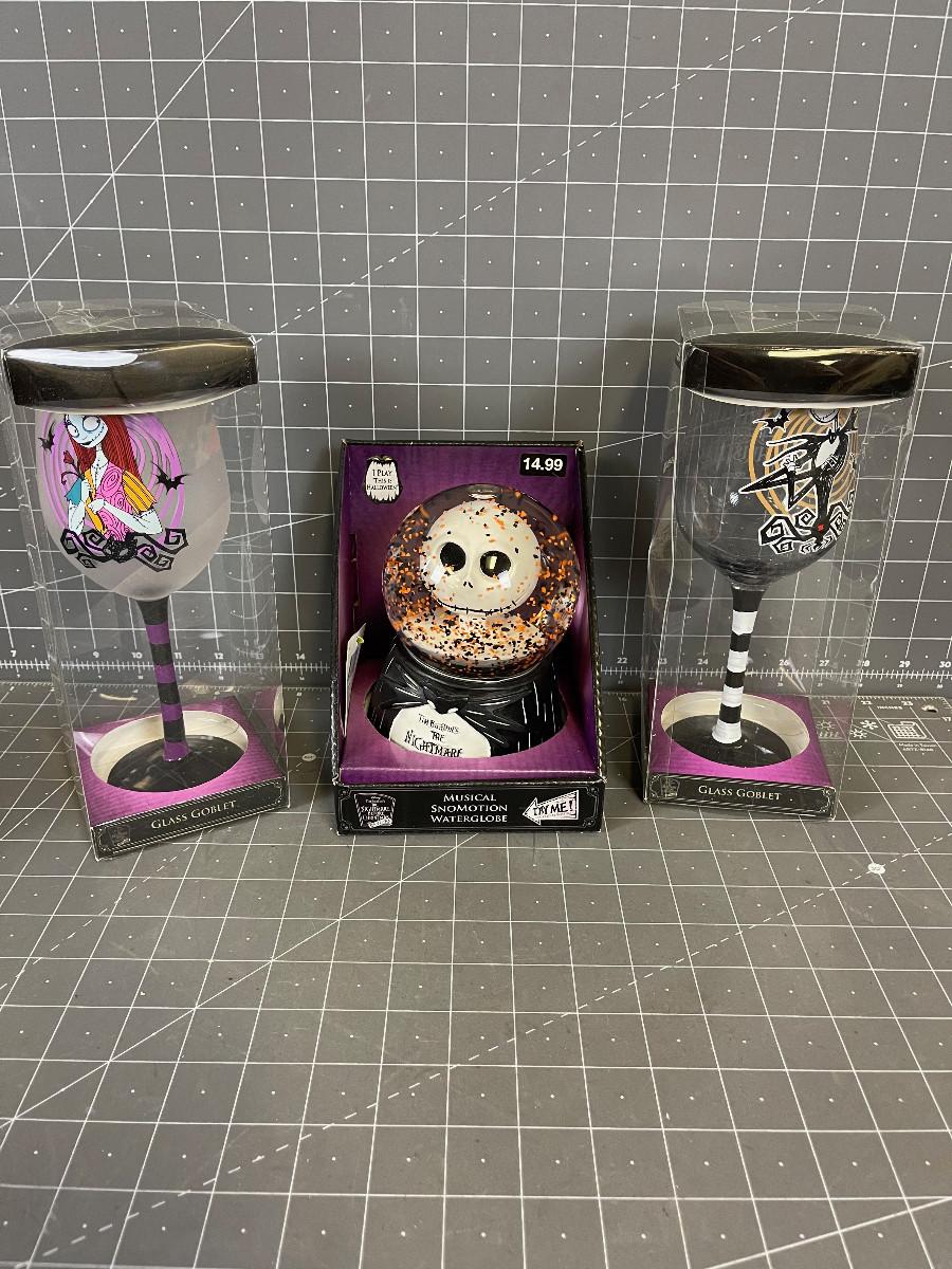 Nightmare Before Christmas SNOW GLOBE and 2 wine Glasses