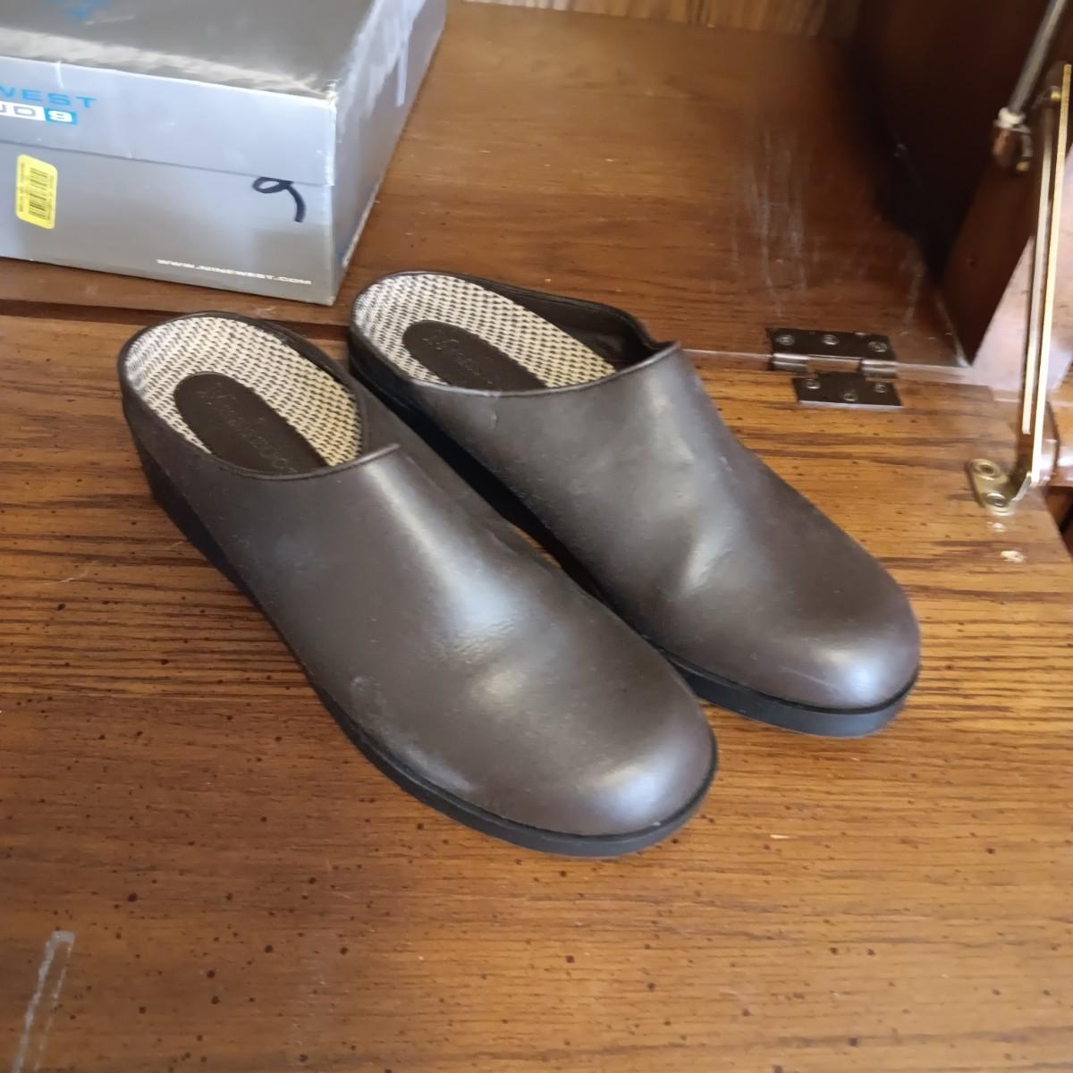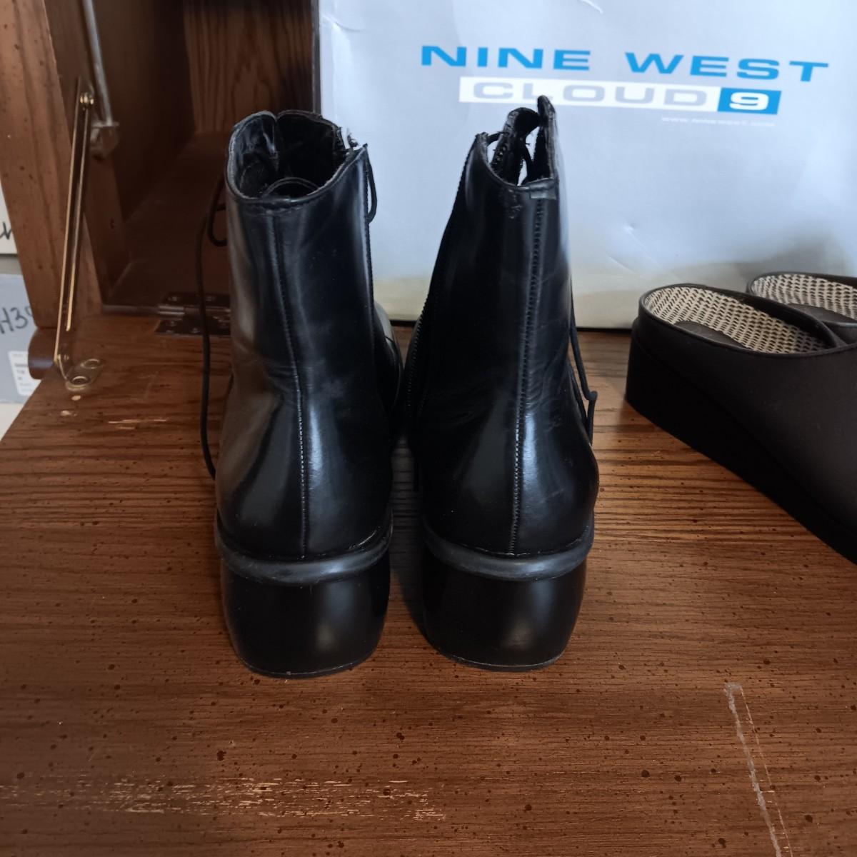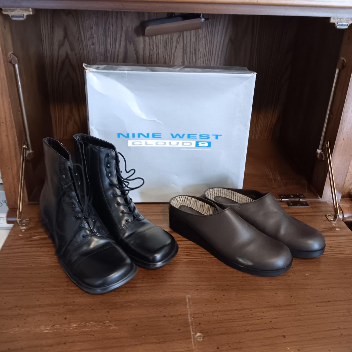 NINE WEST SHORT BOOTS (9.5) AND A PAIR OF MUSHROOM CLOGS (9.5)