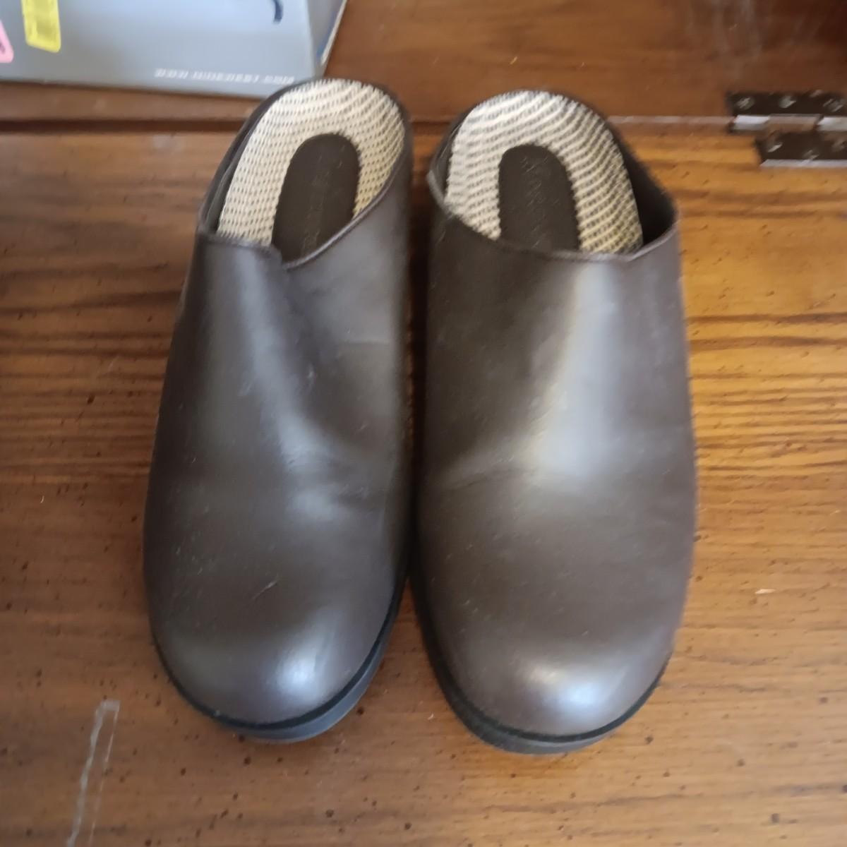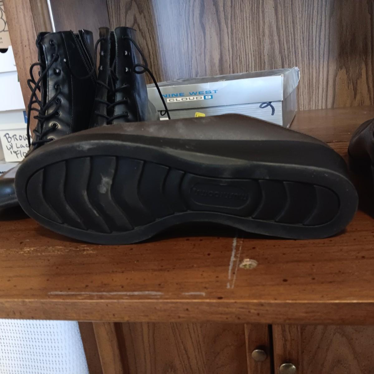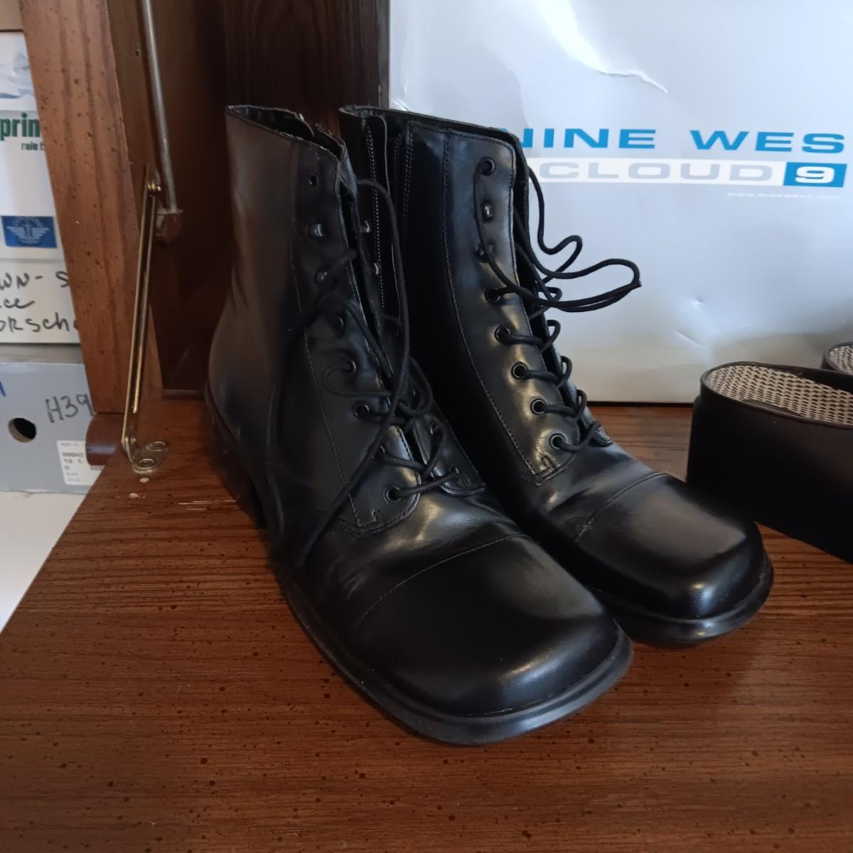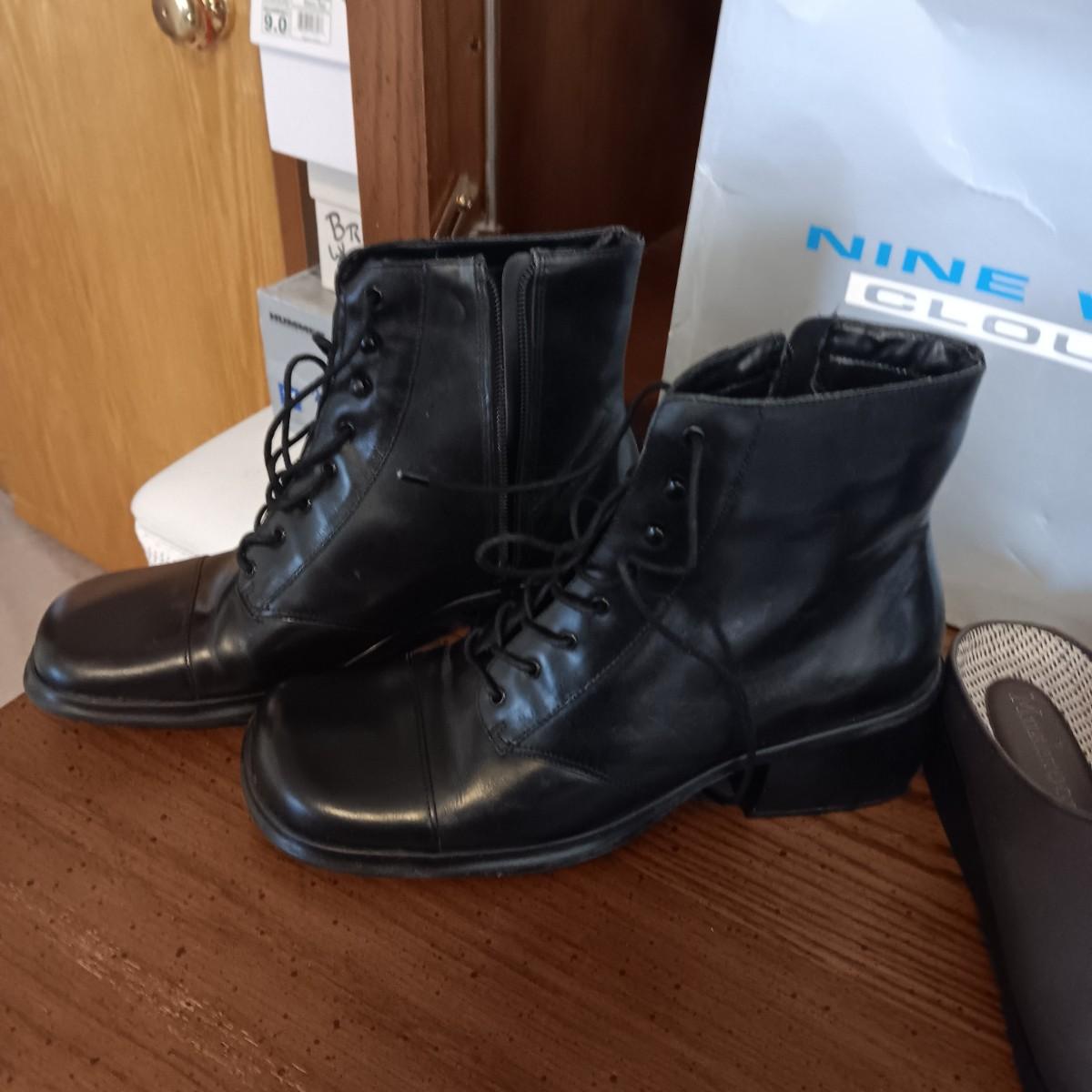 NINE WEST SHORT BOOTS (9.5) AND A PAIR OF MUSHROOM CLOGS (9.5)