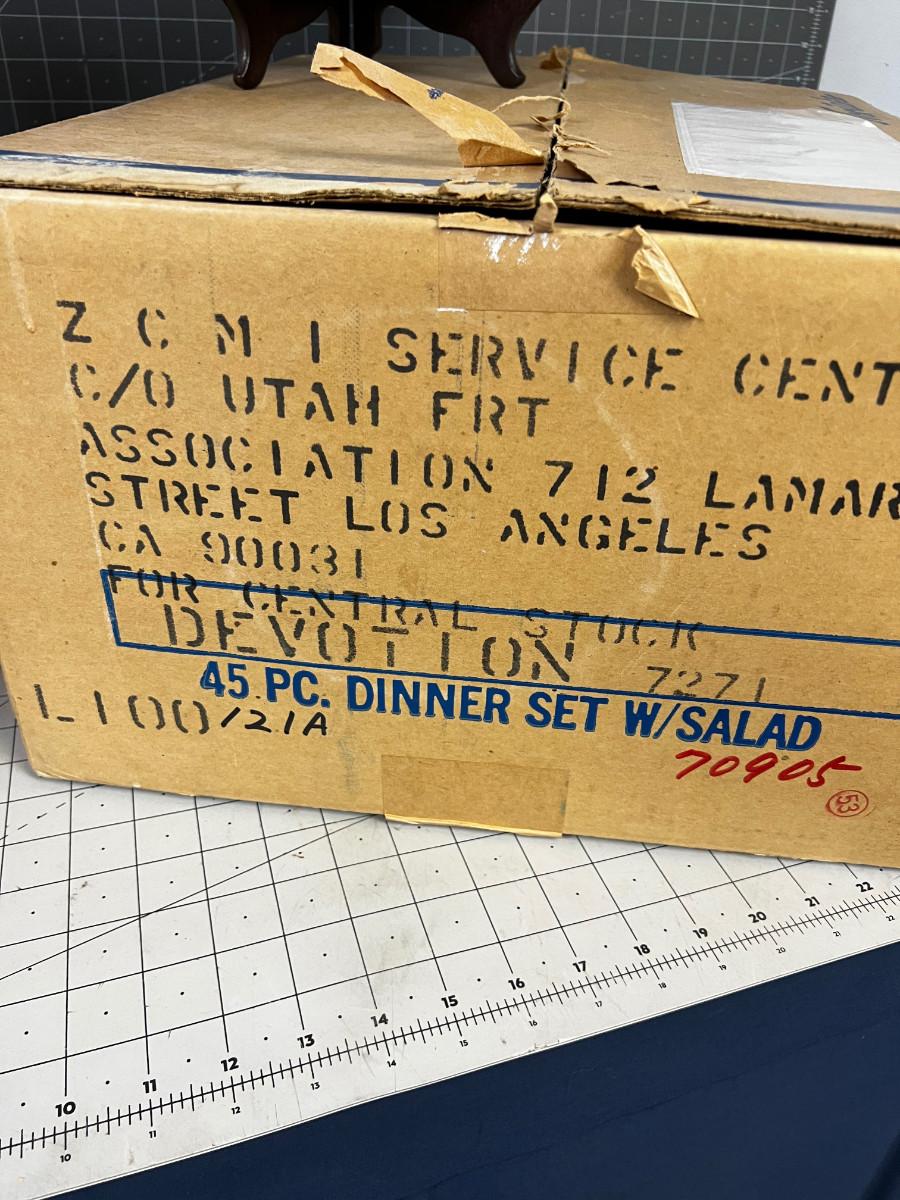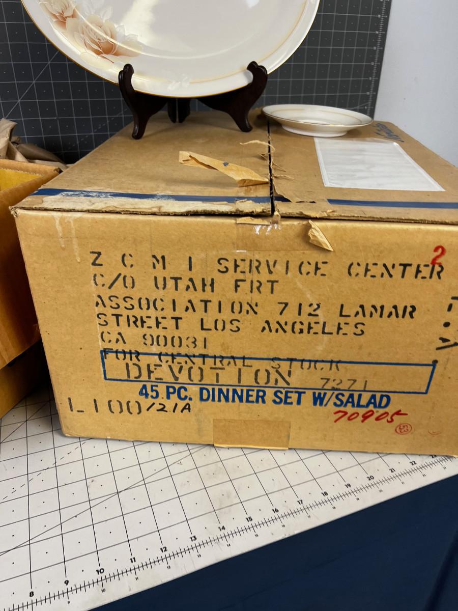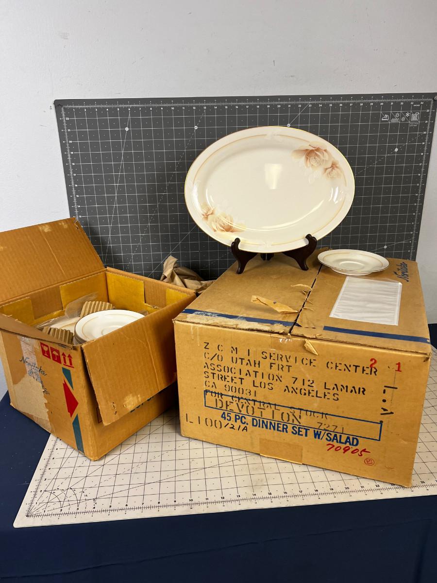 Appears to have maybe been taken out of the box but not ever used. Pattern is Devotion. Set of 45 pieces and one is 20 pieces.