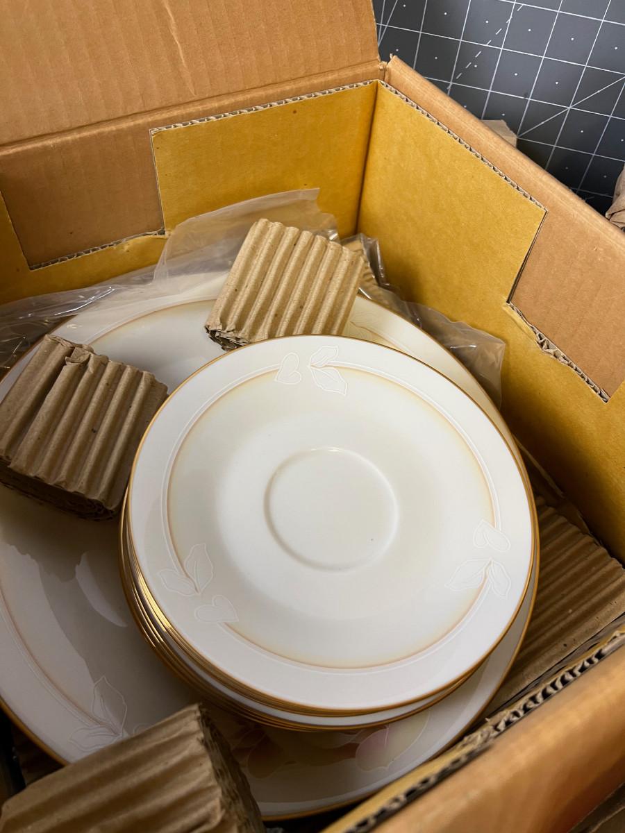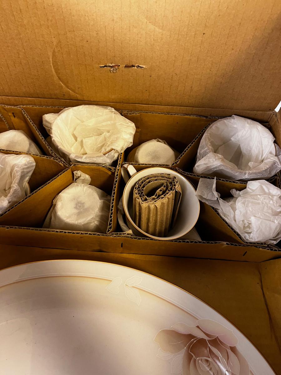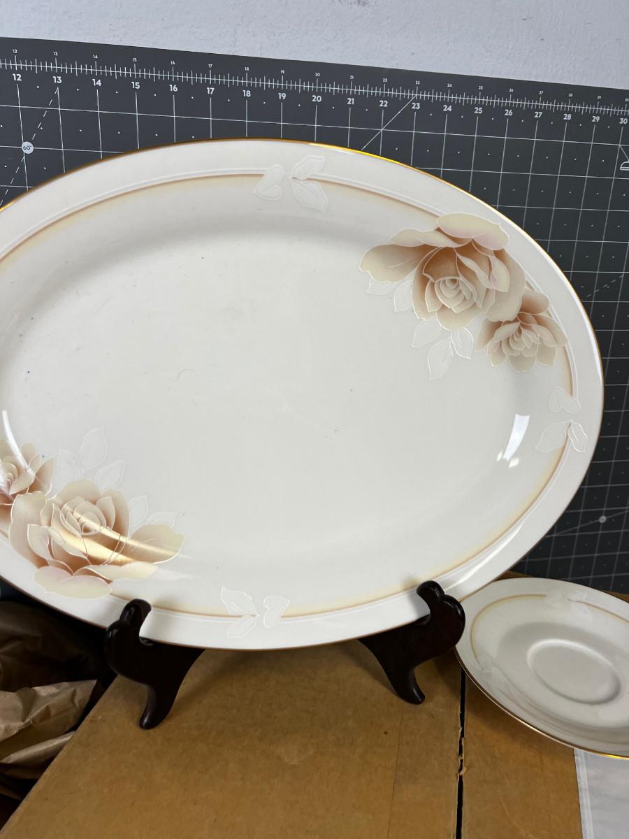 Appears to have maybe been taken out of the box but not ever used. Pattern is Devotion. Set of 45 pieces and one is 20 pieces.