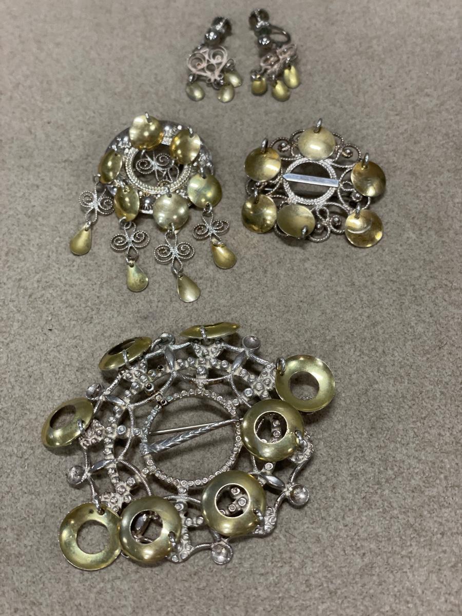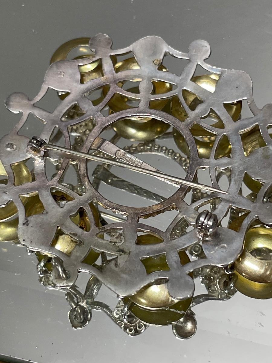 Large brooch is stamped 830 small brooches are stamped. Sterling earrings are not stamped.