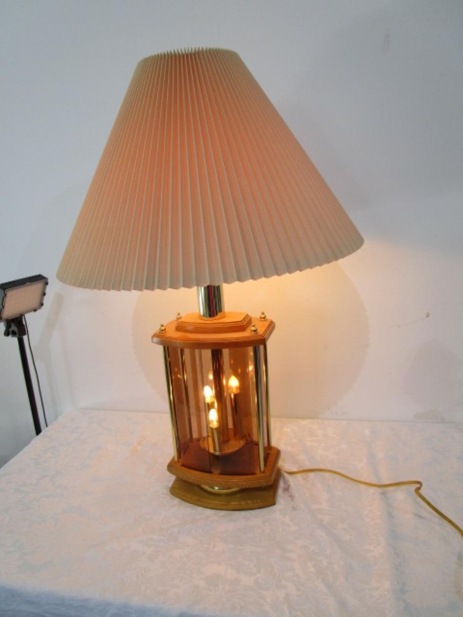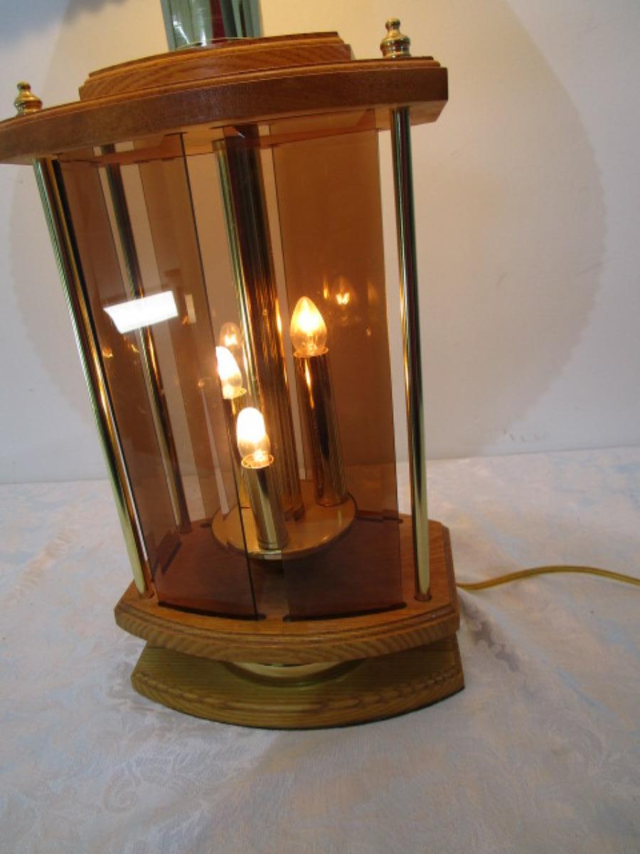 Oak & glass lamp with shade