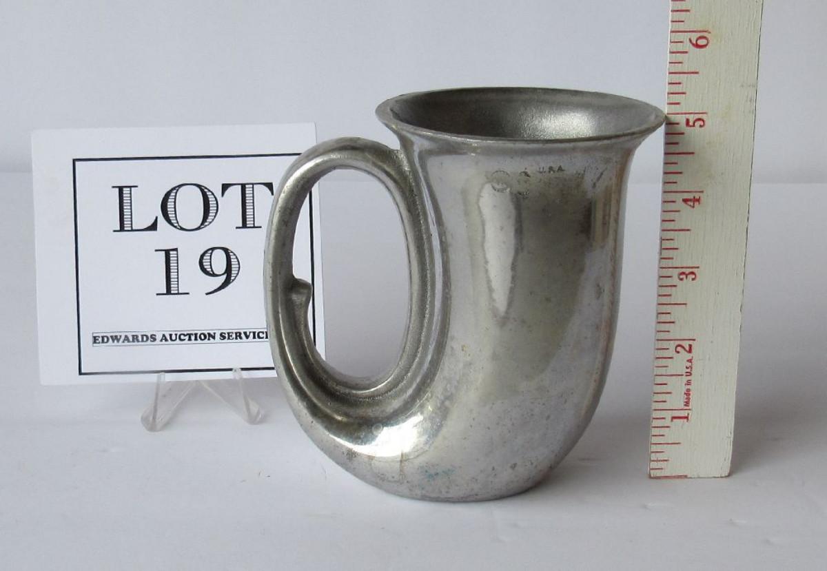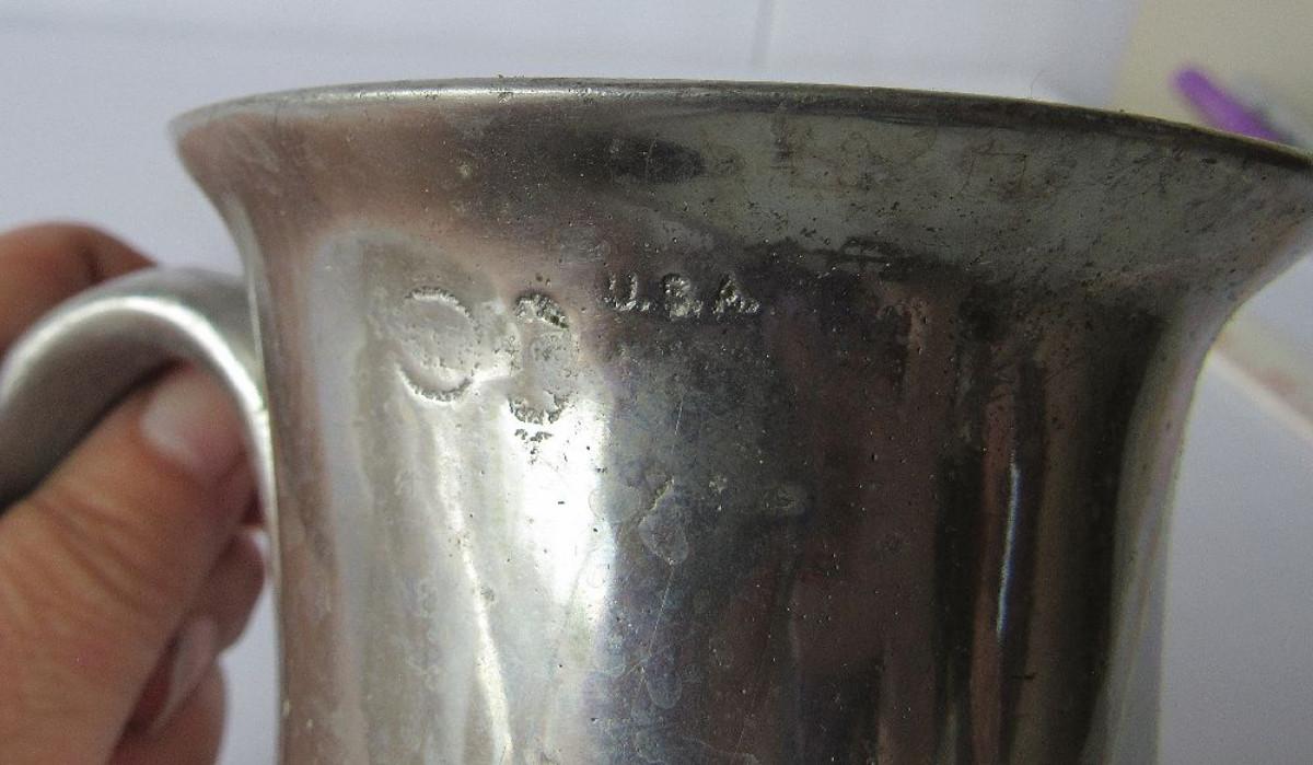 It is marked on side but I can't make out the name. Think it is pewter, not sure. Shipping is available at shipping cost plus $5.00 handling fee on one box, $10.00 handling fee on two boxes, $15.00 handling fee on 3 boxes. Helps cover shipping materials and labor cost.