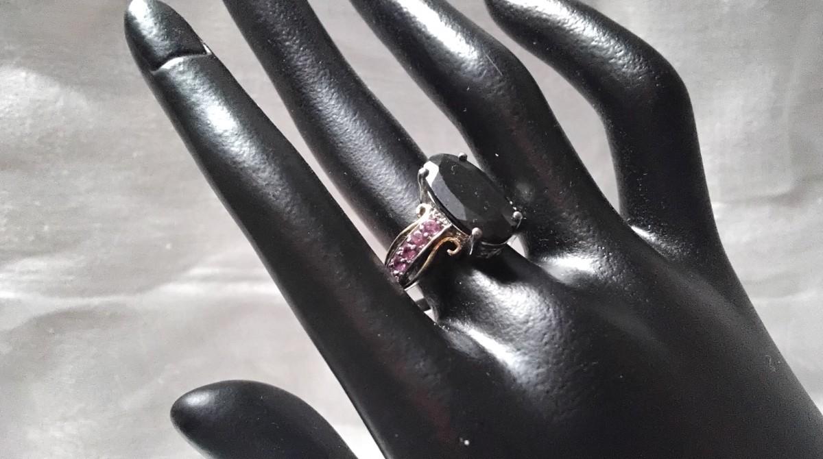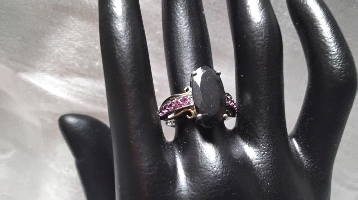 Eyecatching STS Onyx And Rhodolite Garnets 925 Ring Size 7