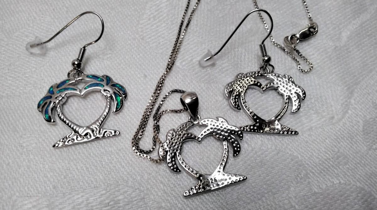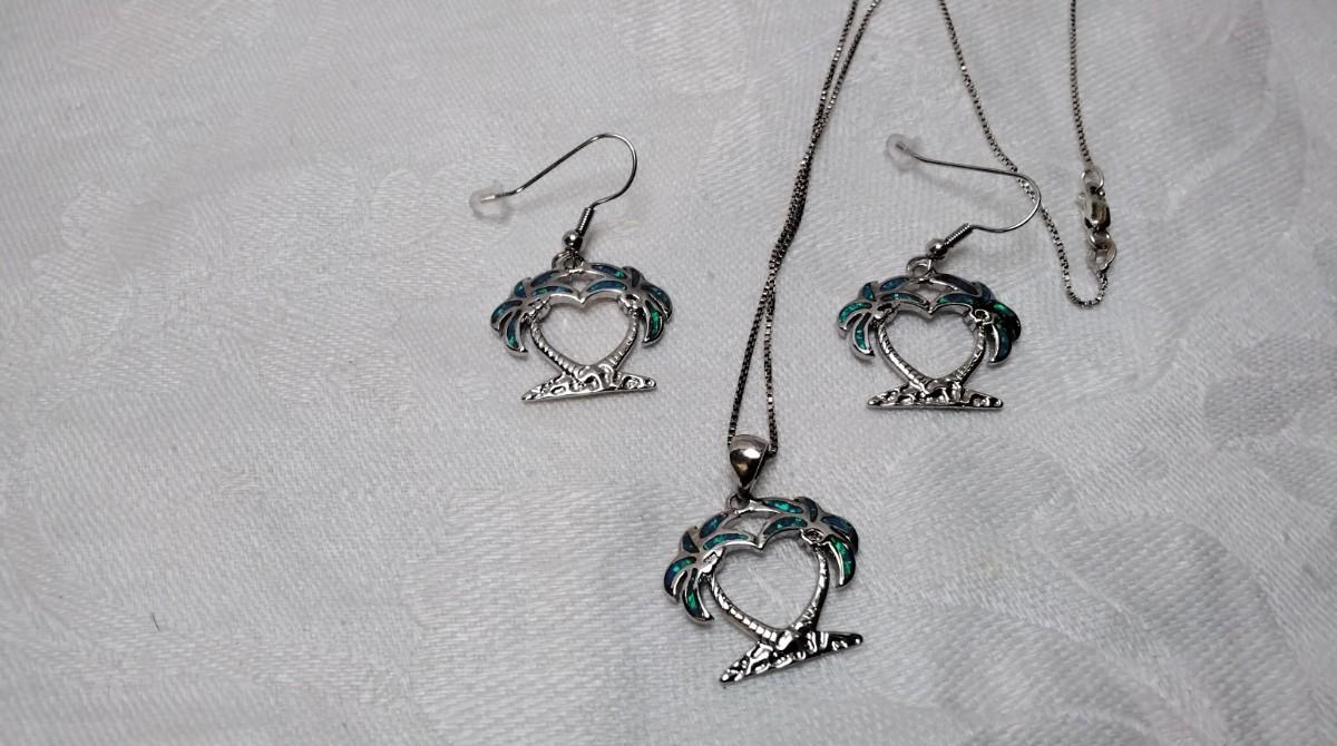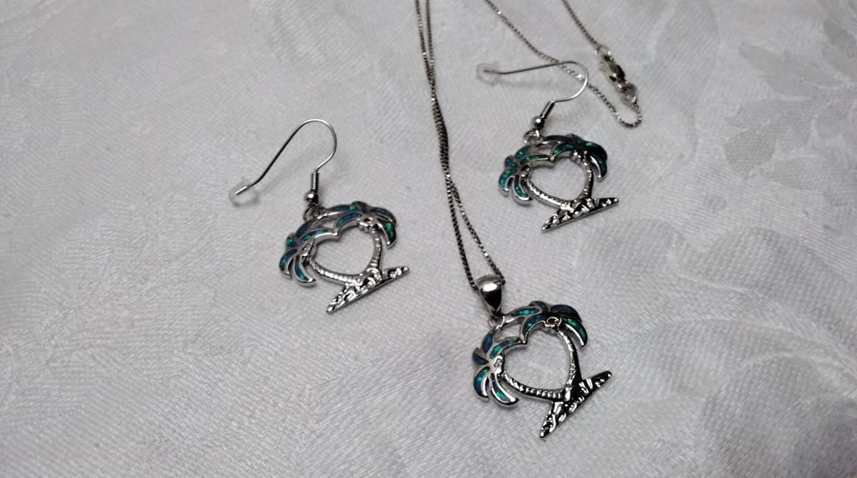 Blue Fire Opal Necklace And Earring 18" 925 Necklace/Earrings Set