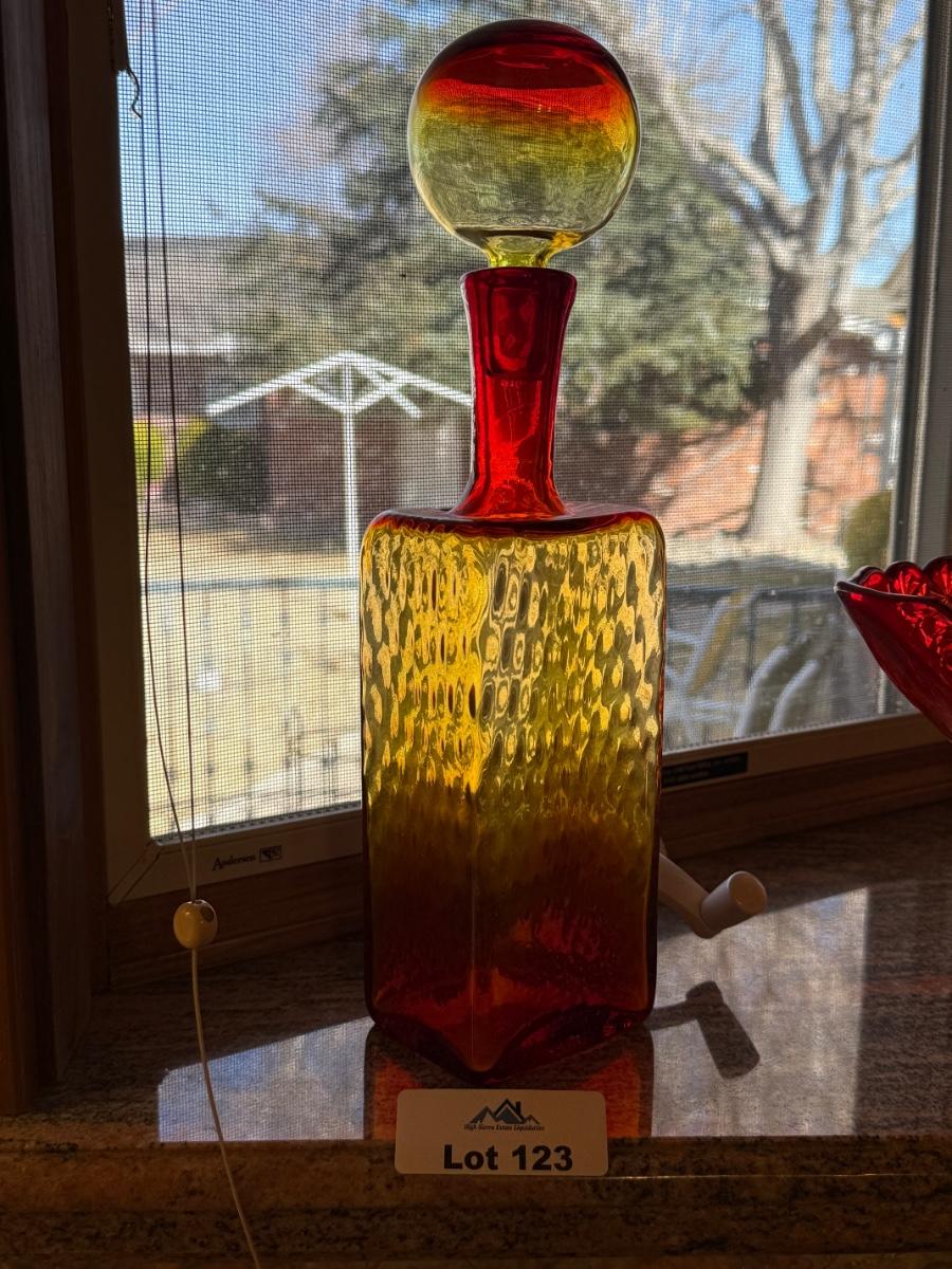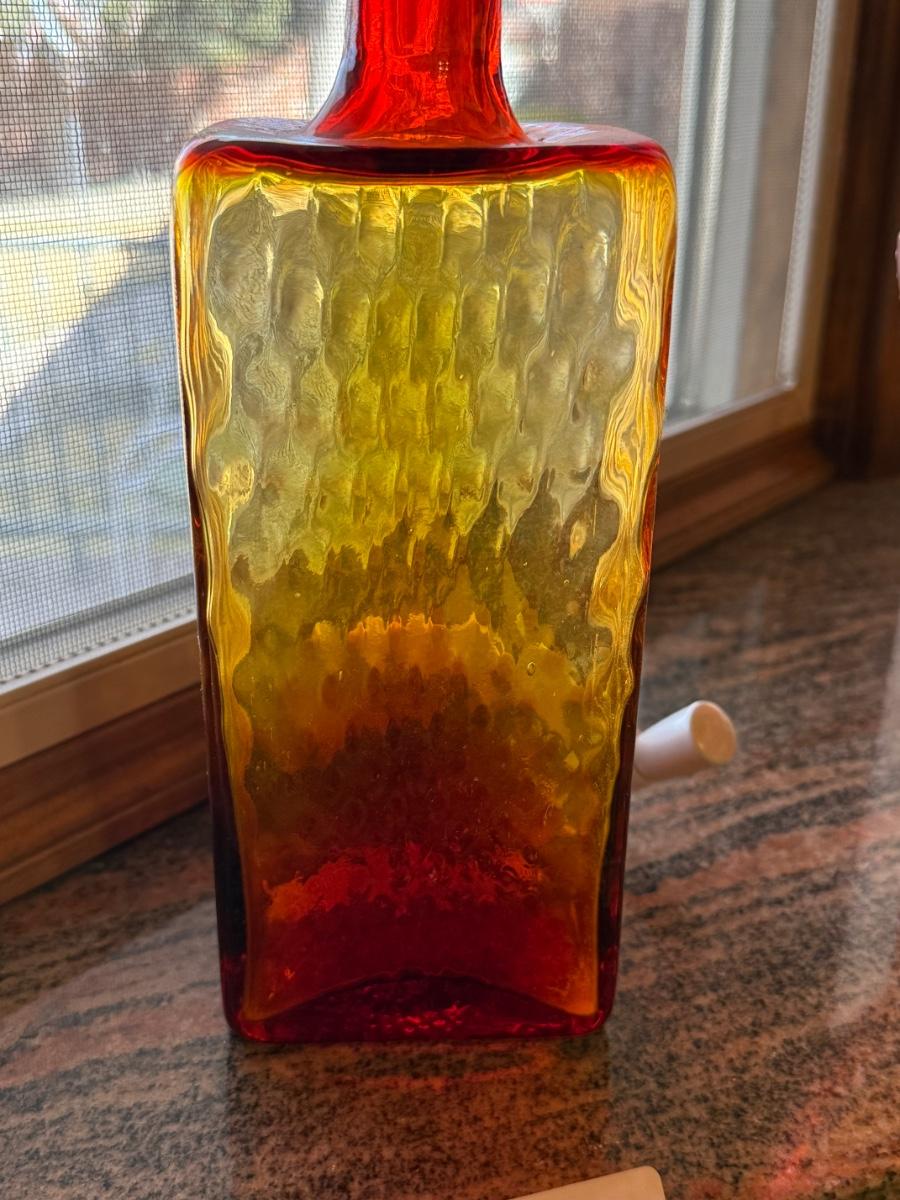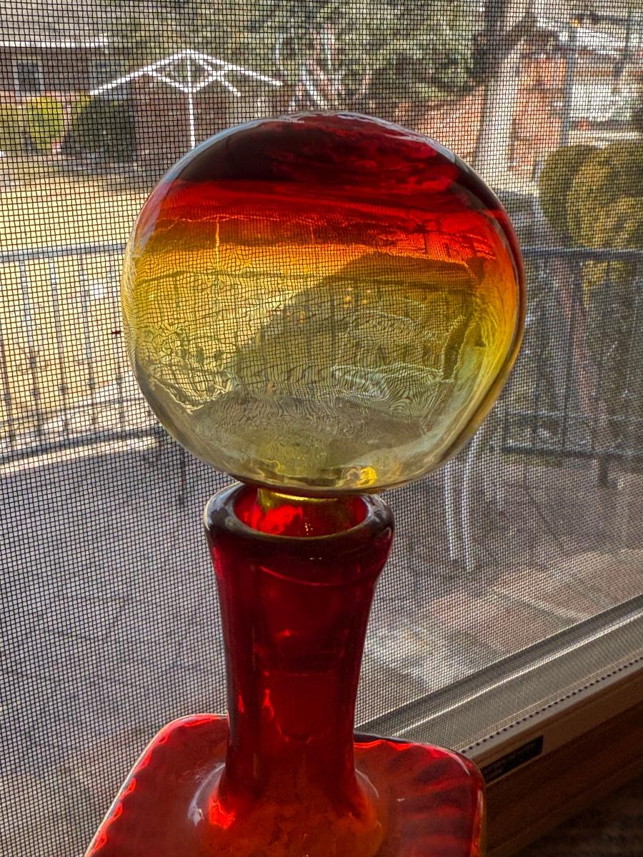 Orange/Red/Yellow glass vintage decanter w/ball top stopper