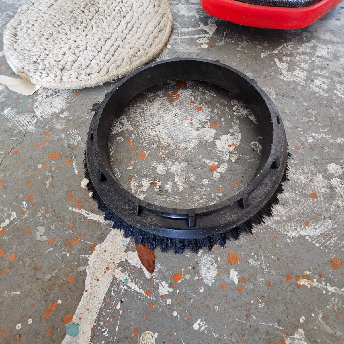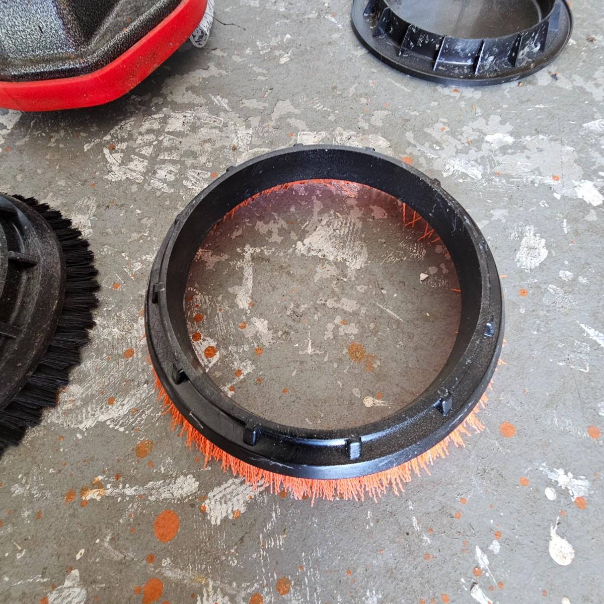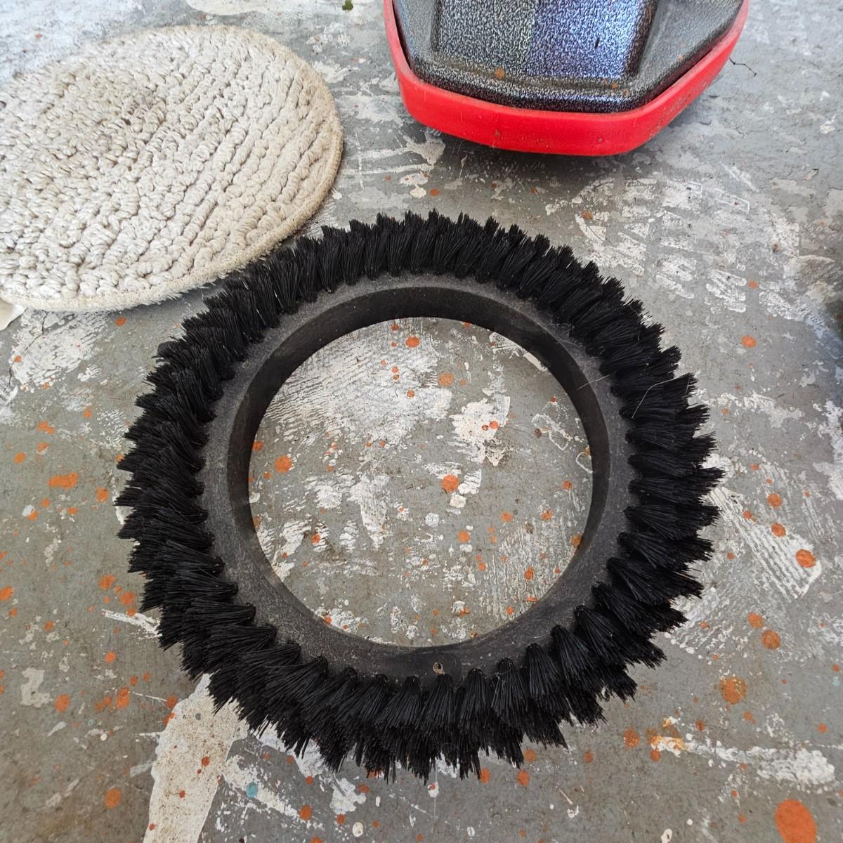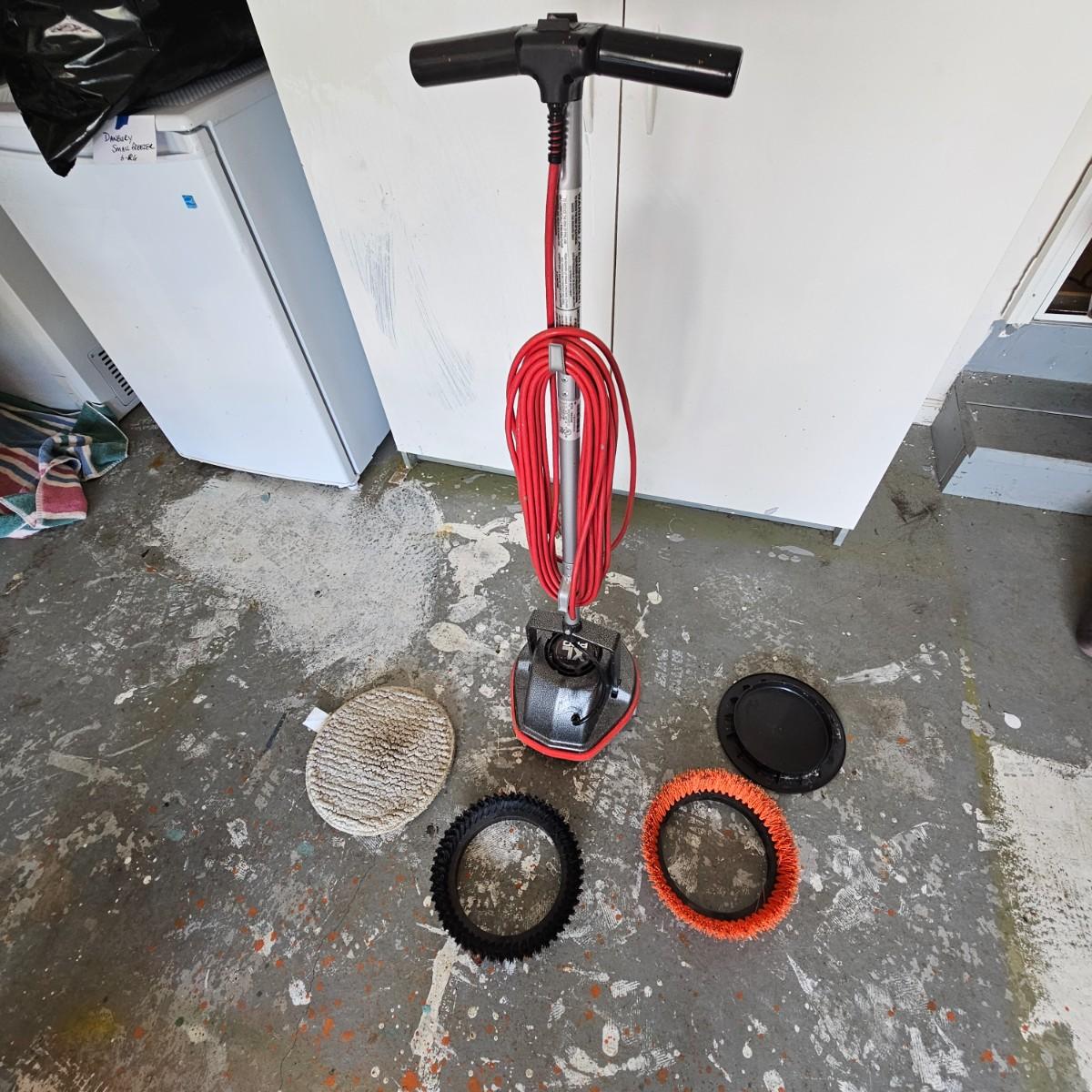 Orbiter model of Oreck XL Pro floor unit. Used for cleaning and polishing floors, unit has tilt handle and on/off switch at top. Measures 10" x 11" x 43"H, comes with two brushes and a soft rag disc. Unit powered on when plugged in. See photos for details. Local pickup only.
