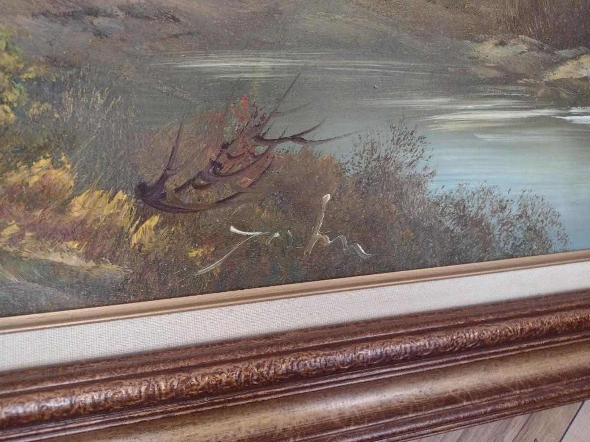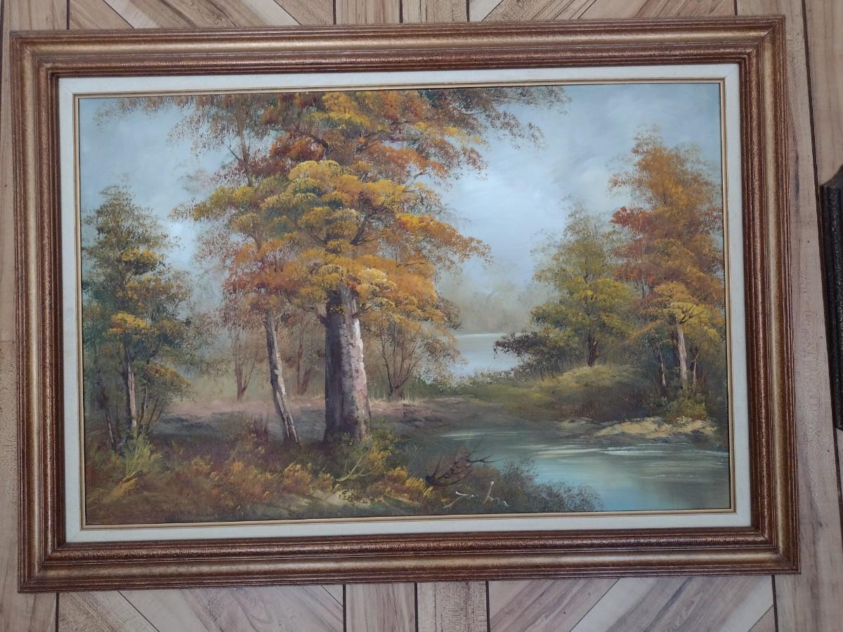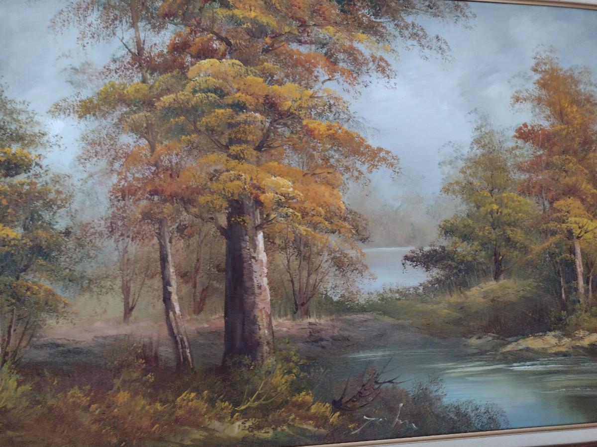 Original Framed Art on Canvas Riverbank Scene Signed John