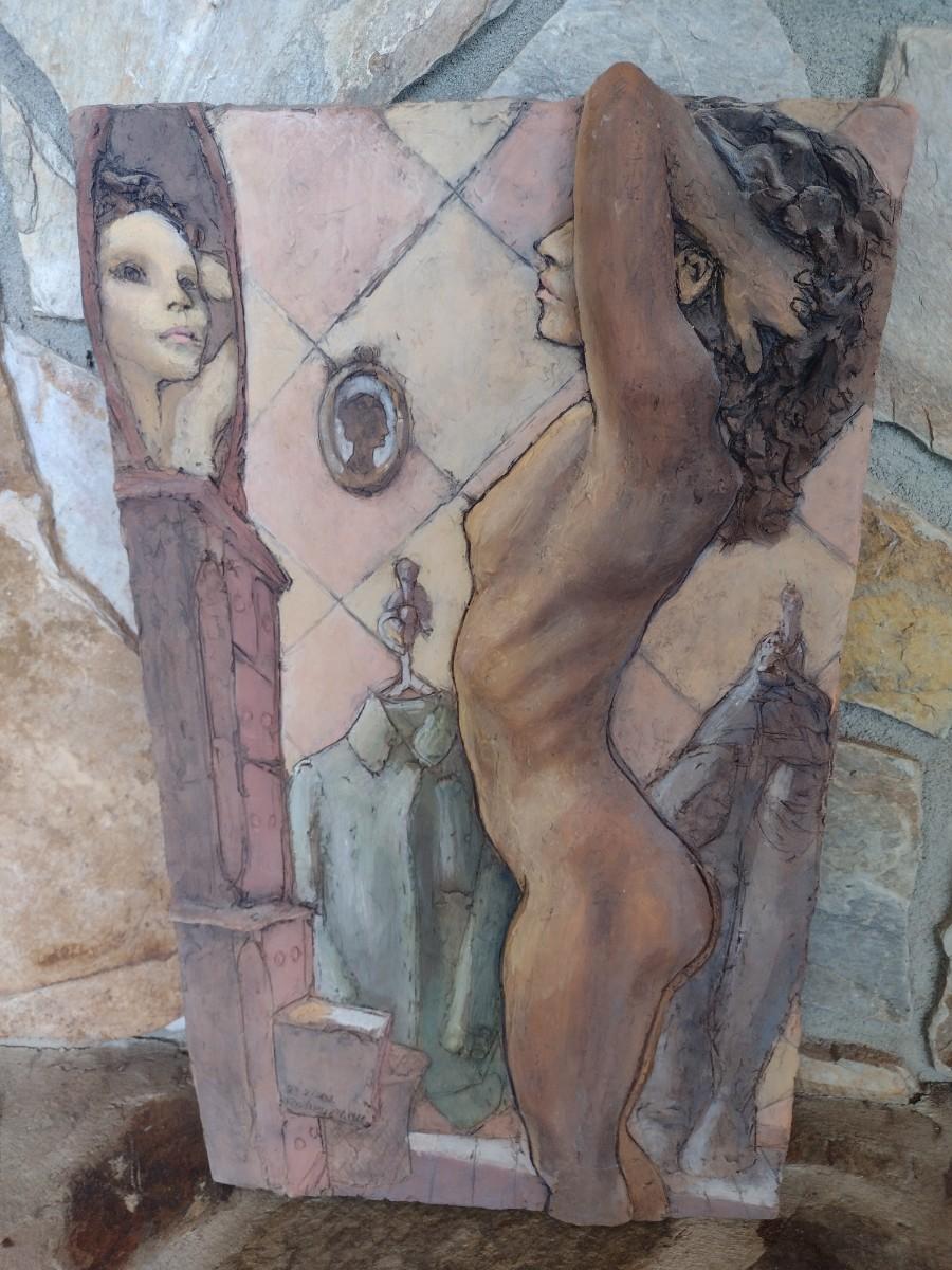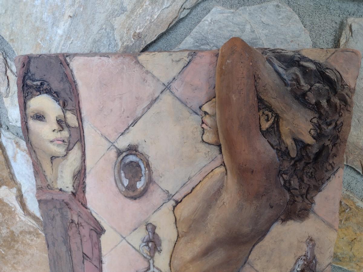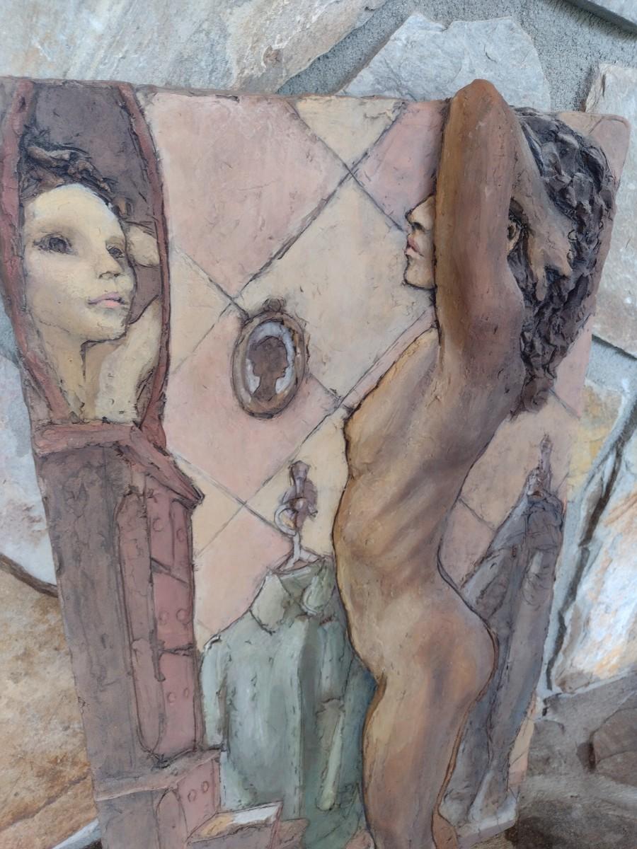 Original Terra Cotta 'Mirror Image' Sculpture Panel Signed by Rodney Shaw
