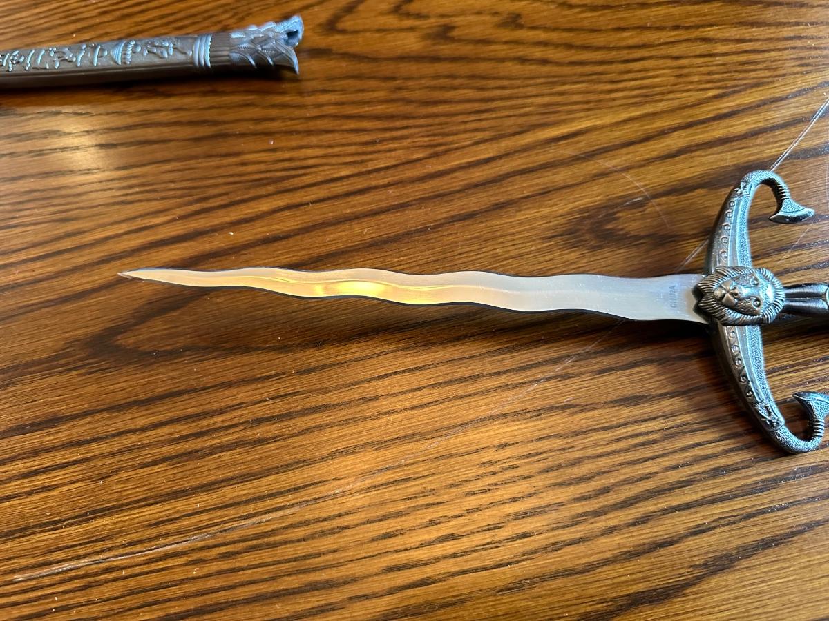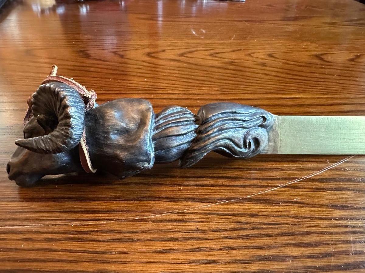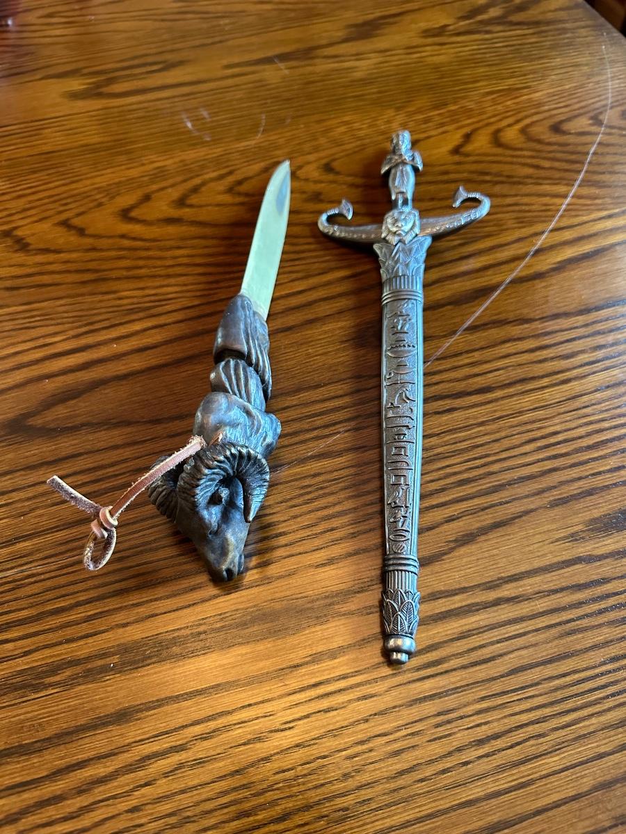 ORNATE DAGGER AND A RAM HEAD HANDLE FIXED BLADE KNIFE