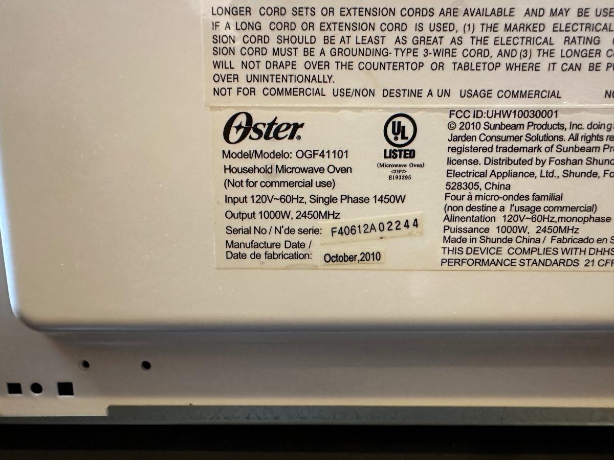 OSTER 1000W MICROWAVE AND PAPER TOWEL HOLDER