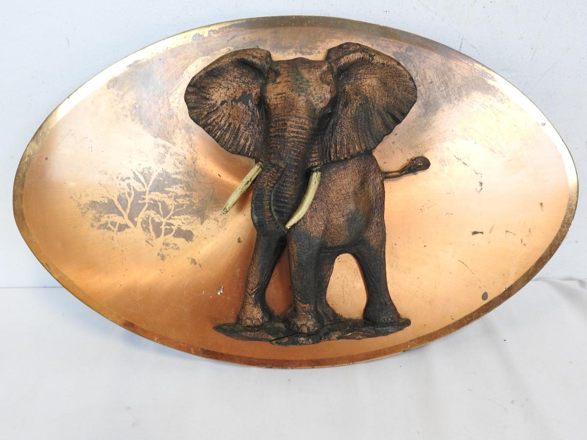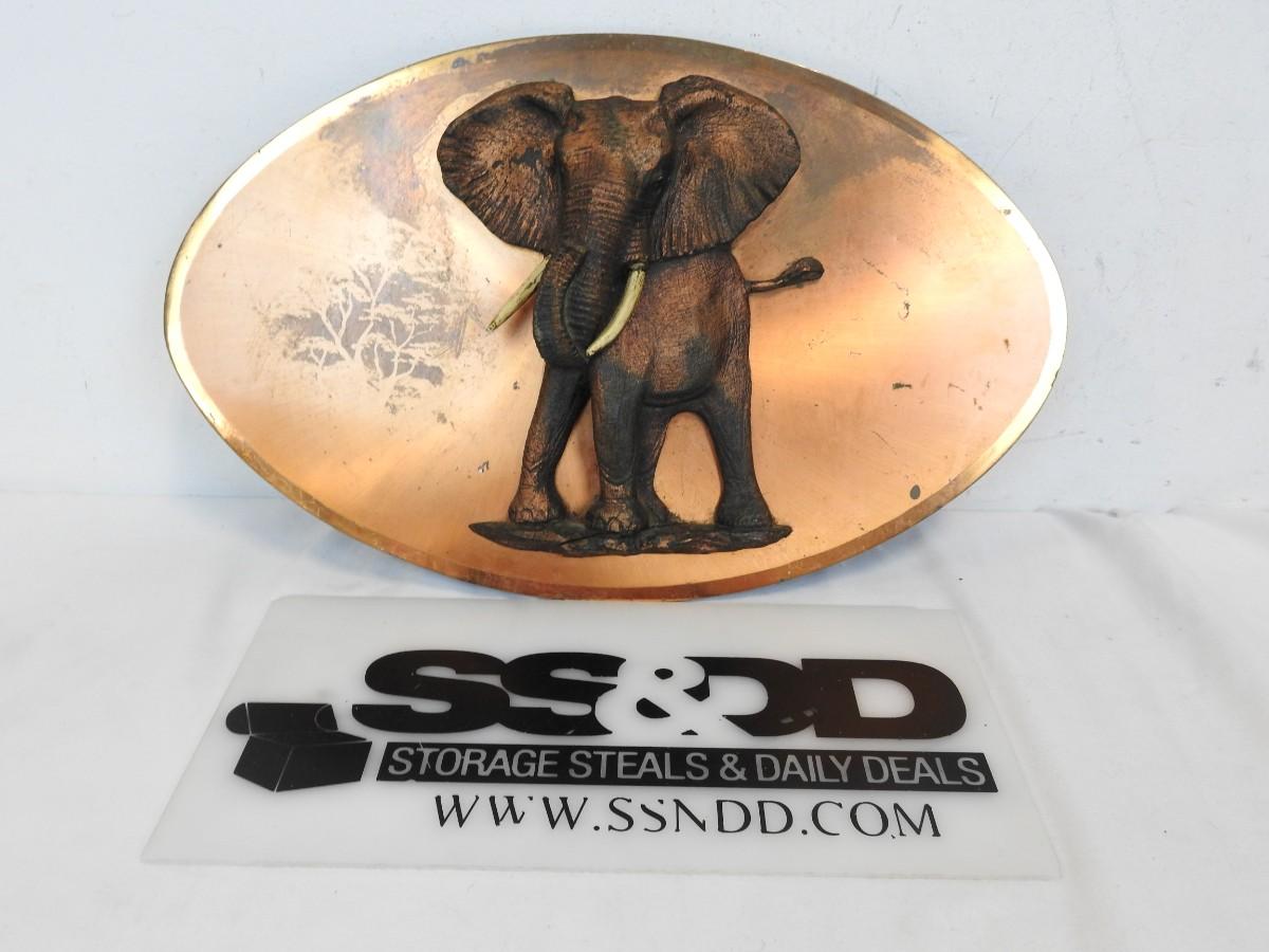 Oval Copper Colored Wall Decor w/3D Elephant, 2lbs, Vintage?