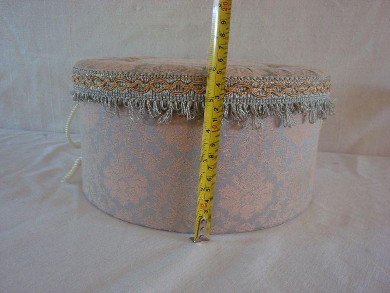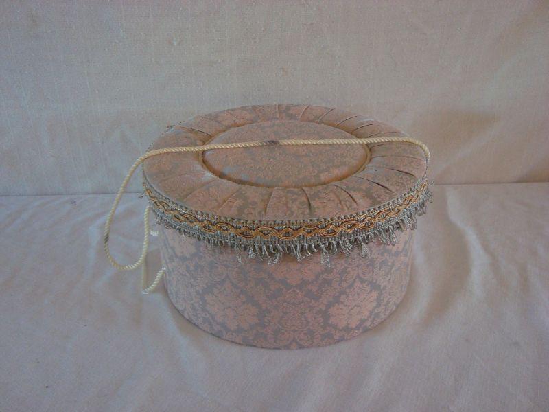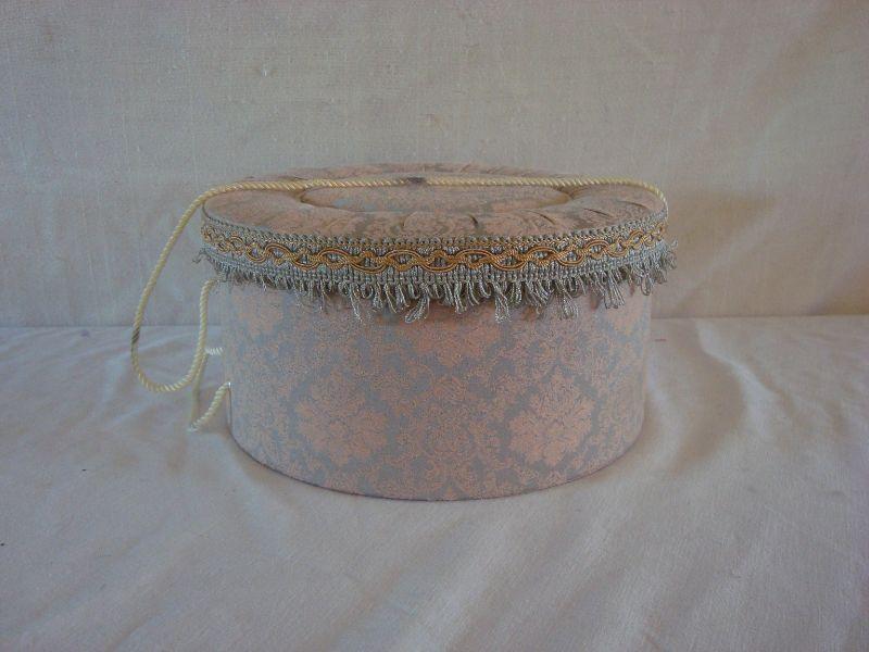 Classy, Champagne and Seafoam Green Padded Hat Storage Box in Great Condition
