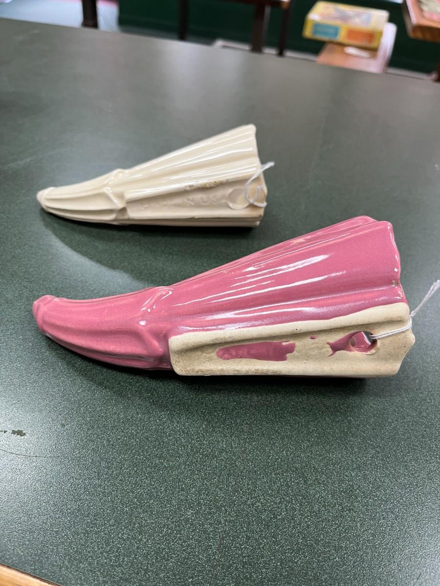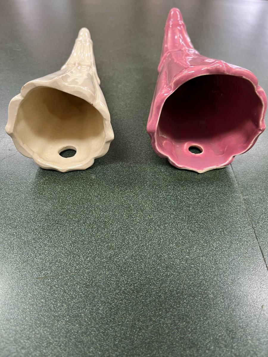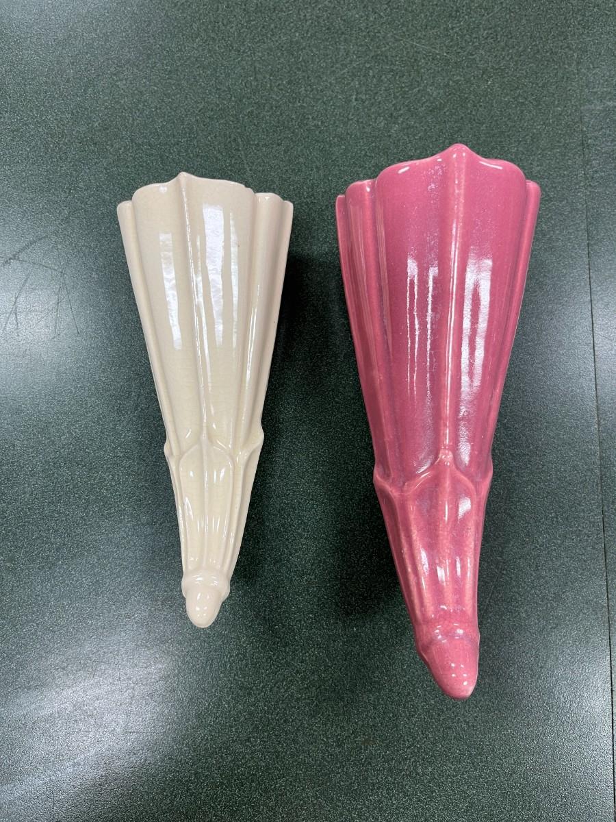 Pair McCoy Cornucopia Horn Wall Pockets. One Pink and one white.